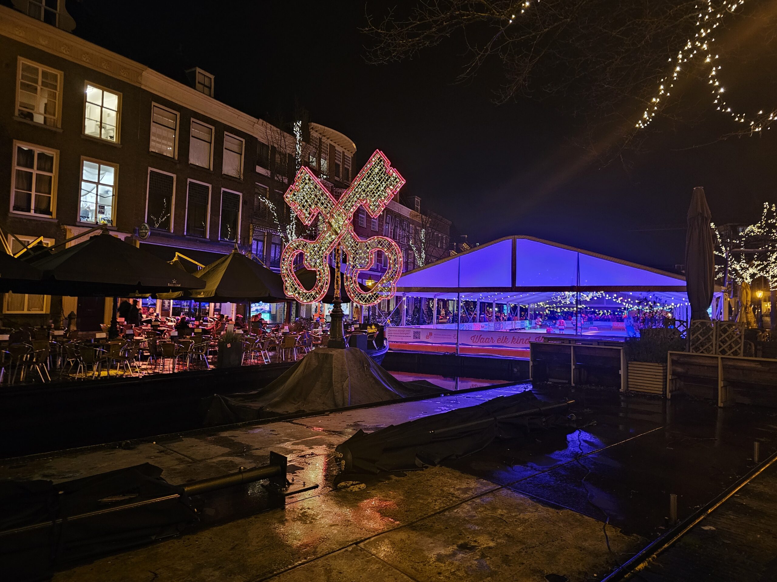 Vorig jaar klaagden buurtbewoners over geluidsoverlast van de koelinstallatie. “De machines staan ook ’s nachts te ‘snorren’. Omdat men daar last van had hebben we ze dit jaar een stuk verder van de huizen geplaatst”, vertelt Weijermars. De koelmachines staan dit jaar niet naast de ijsbaan op het water, maar aan de overkant van de straat op het Stadhuisplein.