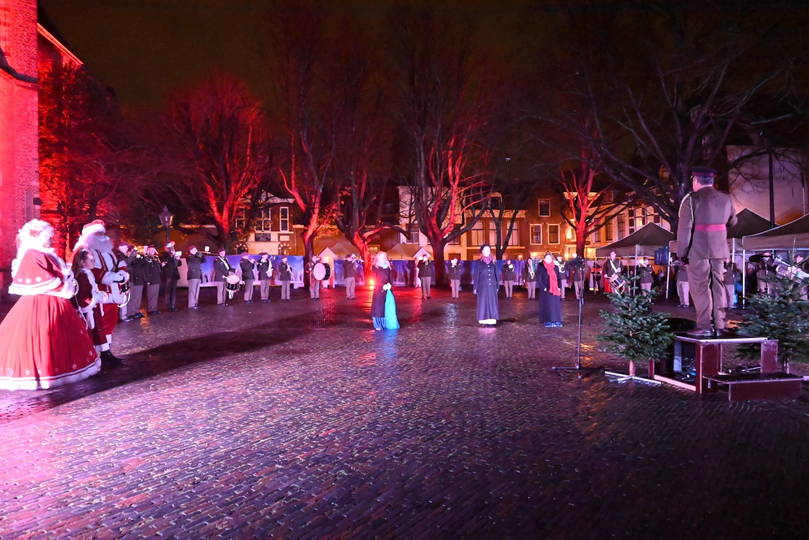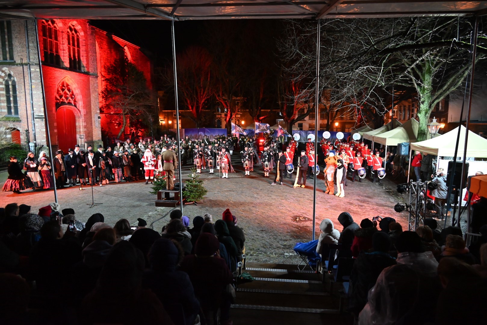 De achtste editie van de Familie Kerst Taptoe Show trok zaterdag ondanks de regen weer volle tribunes. Het publiek genoot van de muzikale optredens en het uitgelichte Pieterskerkhof dat daarmee in kerstsfeer werd gebracht.