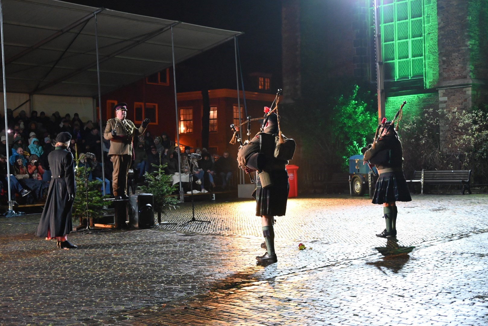De middagshow, speciaal voor mensen met een beperking en minder validen, was kleddernat. Maar ’s avonds stopte het na een half uurtje met regenen. Tijdens de avondvoorstelling werd ook stilgestaan bij het overlijden van doedelzakspeler Hans Dubbelaar. Voor hem werd een roos gelegd op het plein.