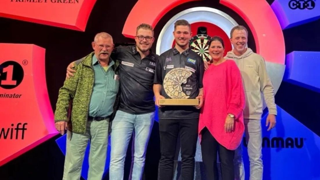 In Frimley Green werd Bradley gesteund door z’n broer, vader, moeder en opa Leo. “We zijn een echte dartsfamilie”, vervolgt Peter. “Het is heel leuk om alles met z’n vieren te doen.” Peter kijkt nu al uit naar 2024. “Dan gaan Bradley en Justin namelijk meedoen aan de PDC Development Tour voor spelers van 16 tot en met 23 jaar.” Maar nu is het tijd om na te genieten van de wereldtitel. Peter: “Bradley stond vóór Lakeside al heel goed te gooien. We wilden het allemaal een beetje stap voor stap doen, want alles kost een heleboel geld, met al het reizen. Gelukkig hadden we voor het WK sponsoren. Dit is een kroon op al het harde werk.”