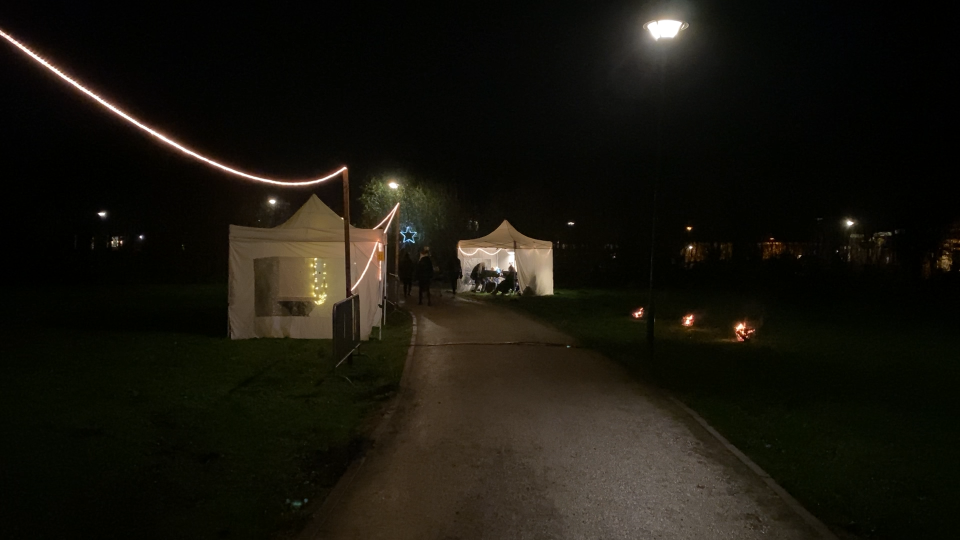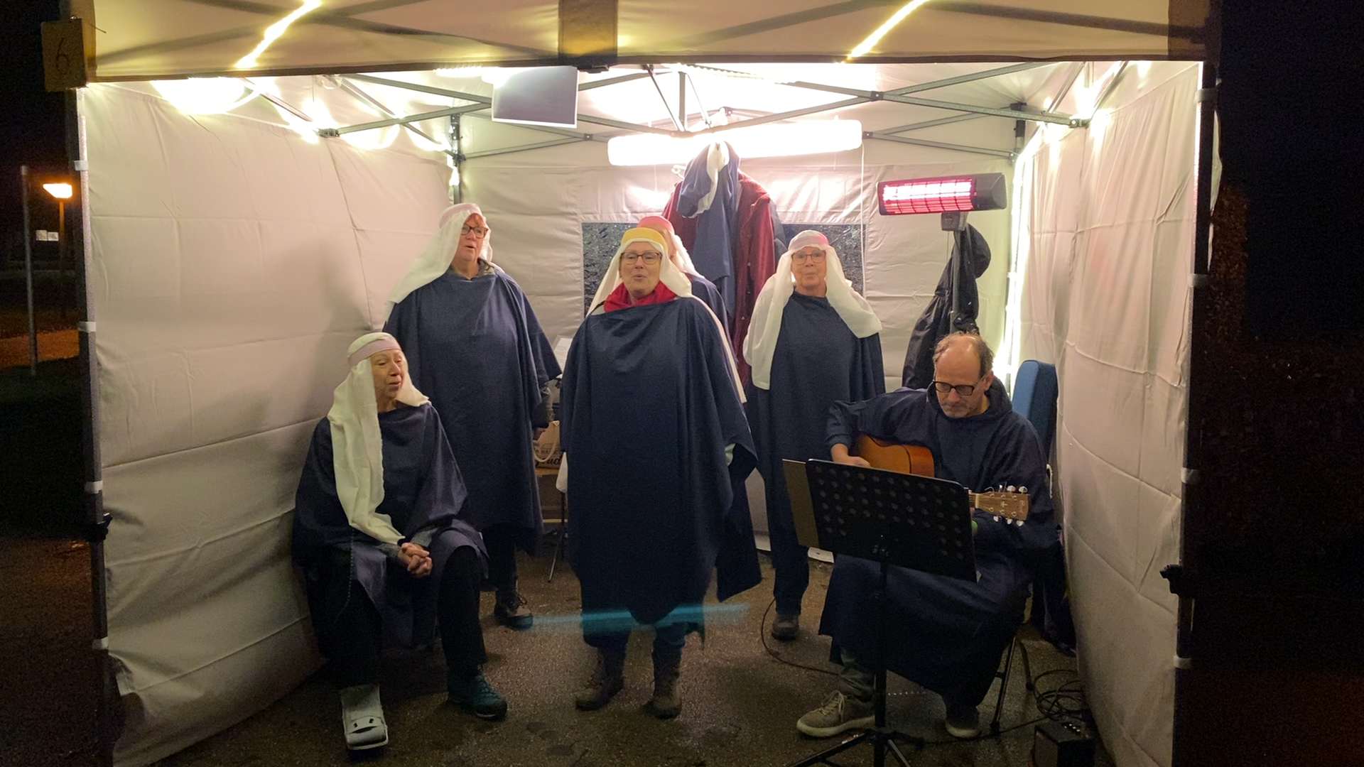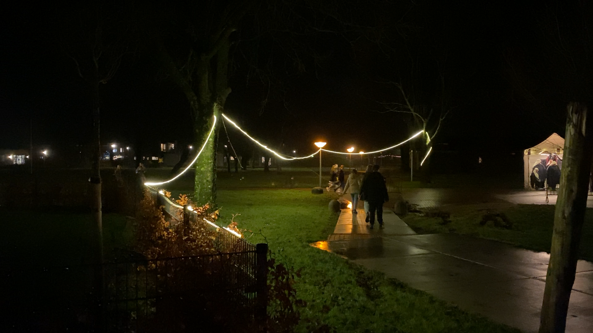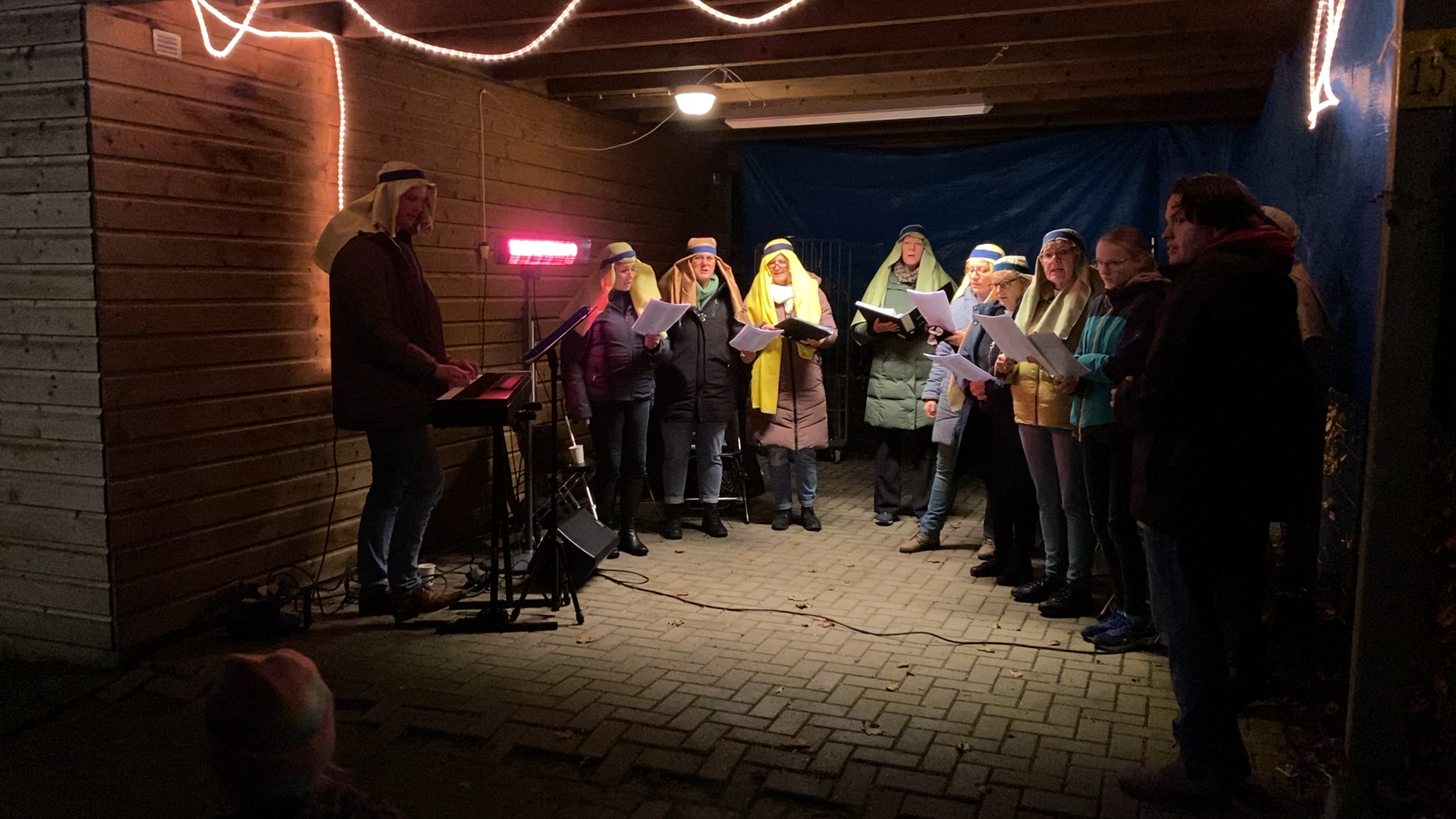 Op het terrein van Swetterhage in Zoeterwoude werd woensdagavond de jaarlijkse kerstreis georganiseerd. Iedereen is welkom langs het lint van licht dat langs de verschillende gebouwen loopt waar 340 mensen met een verstandelijke beperking wonen en werken. Onderweg werd het kerstverhaal verteld, maar natuurlijk was er ook ruimte om te zingen, te eten en te drinken. Net als vorig jaar is de opbrengst van de versnaperingen voor de achtergebleven gezinnen van de Oekraïners die op Swetterhage wonen.