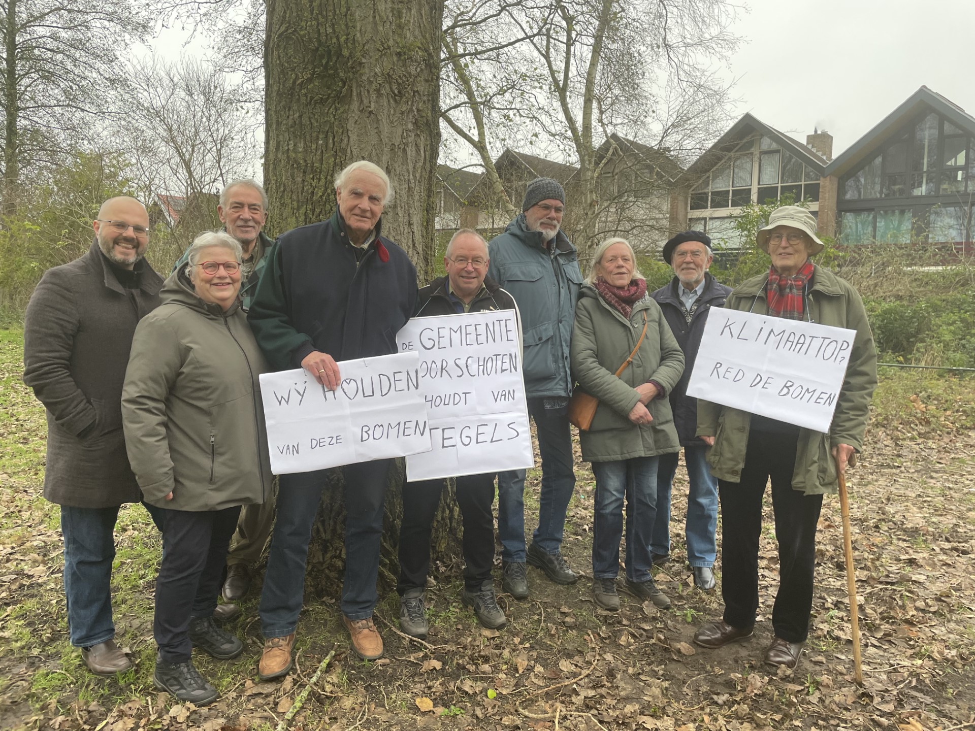Tegenhouden kunnen ze het niet meer, het protest is al eerder afgewezen, maar een aantal bewoners wilde afgelopen zaterdag toch laten weten het niet eens te zijn met de kap van drie platanen aan de Van Hogendorpweg in het Voorschotense Noord-Hofland. Een ludieke actie, dat weten ze zelf ook.
