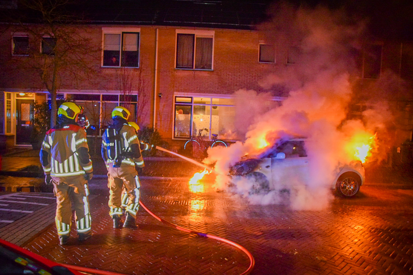 De brandweer heeft de metershoge lammen geblust, maar kon niet voorkomen dat de auto als verloren moet worden beschouwd. Buren die hun auto’s voor en achter het brandende voertuig hadden geparkeerd, konden hun auto’s op tijd verplaatsen.