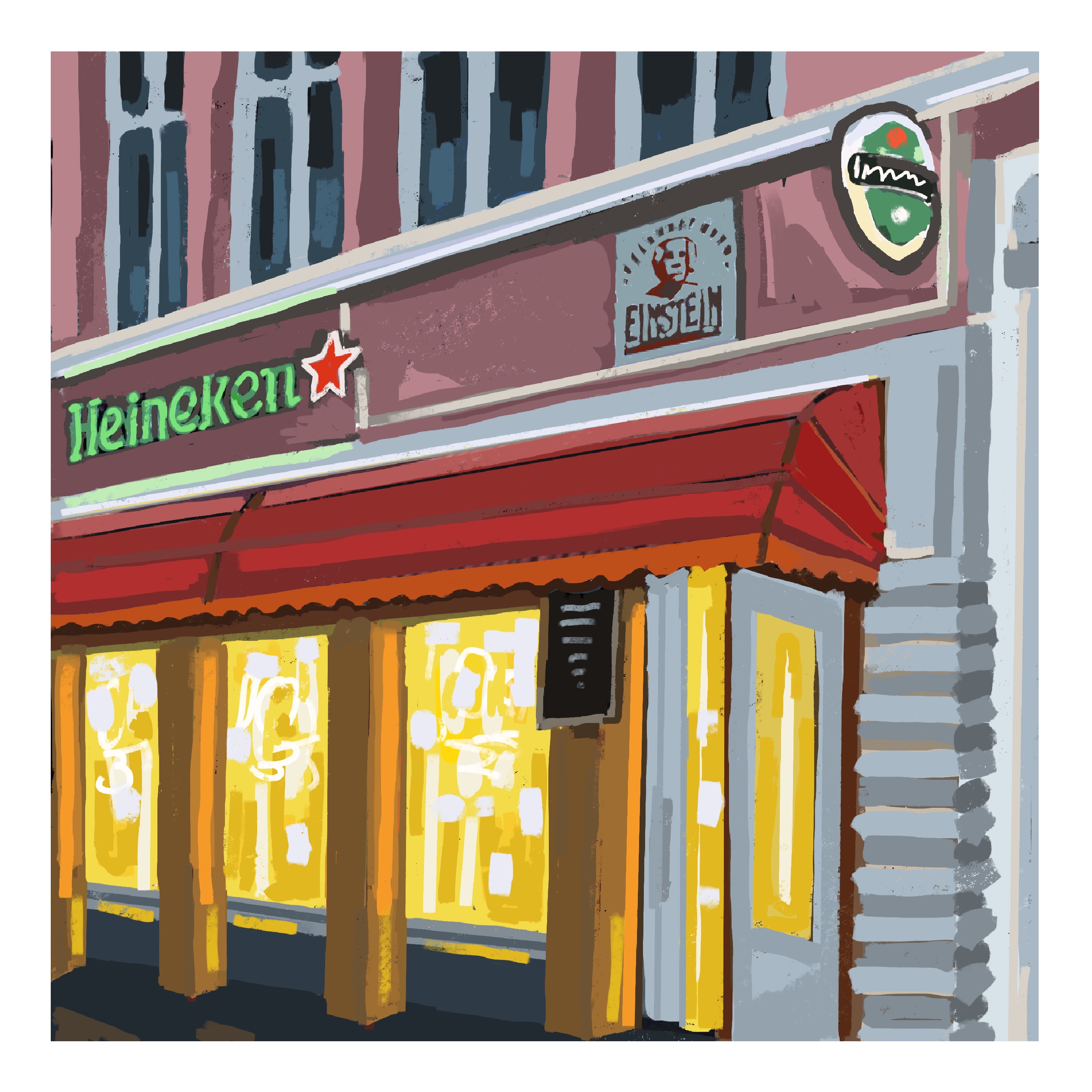 Illustrator en beeldmaker Caroline Ellerbeck illustreerde ruim twintig iconische Leidse cafés onder de titel Ode aan de kroeg. Deze zijn sinds kort te zien in Coffee Star, het bibliotheekcafé aan de Nieuwstraat 4 in Leiden. Met haar illustraties geeft Caroline een ode aan het Leidse café. “Het is de hoeksteen van de buurt, waar ontmoeting en gezelligheid altijd voorop staan. Want van de kroeg krijgen we nooit genoeg.”