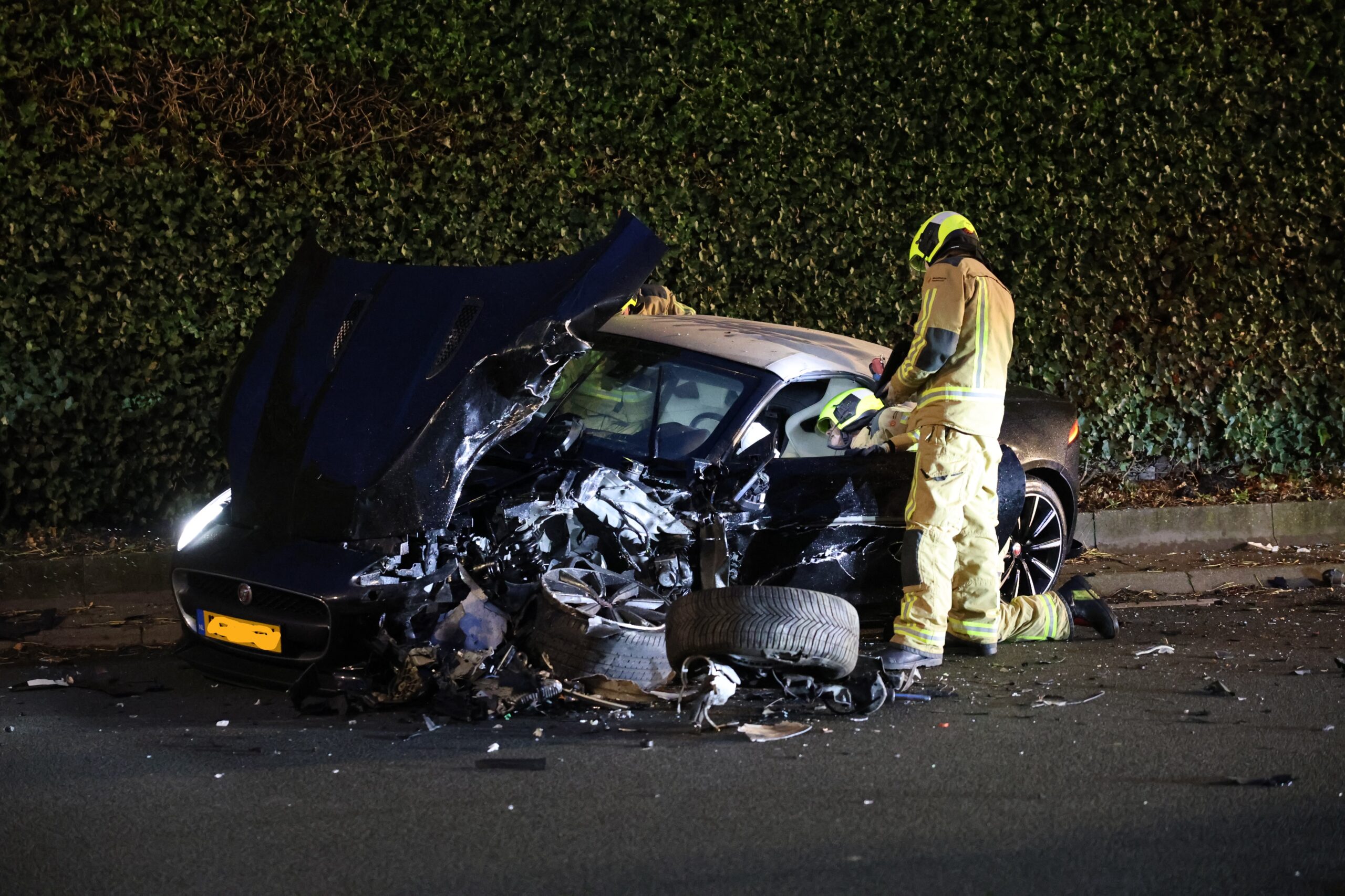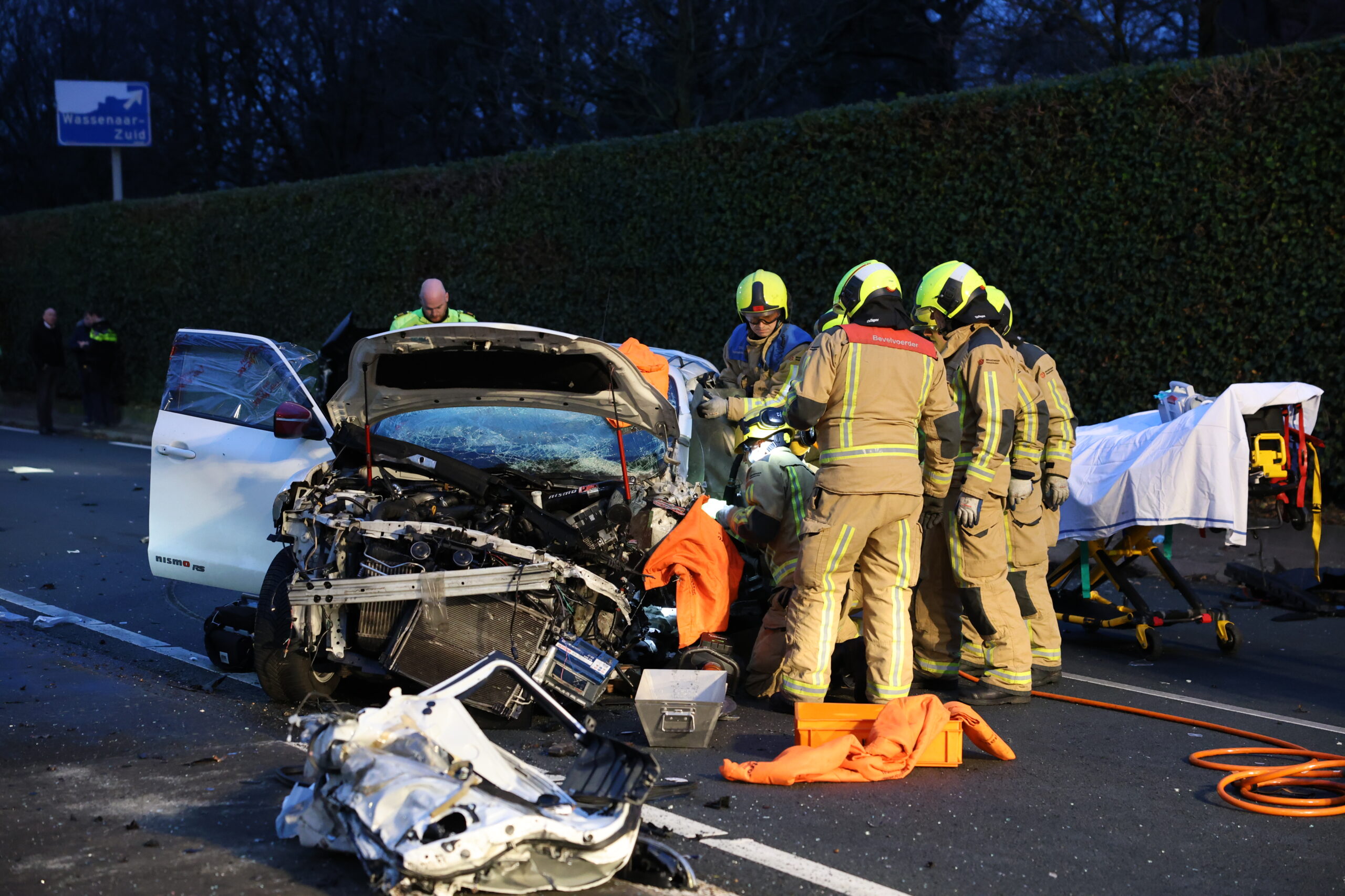 In één van de twee auto’s zat de bestuurder bekneld. Deze werd door de brandweer bevrijd en daarna met spoed naar het ziekenhuis gebracht. De weg lag bezaaid met brokstukken en was in beide richtingen afgesloten.