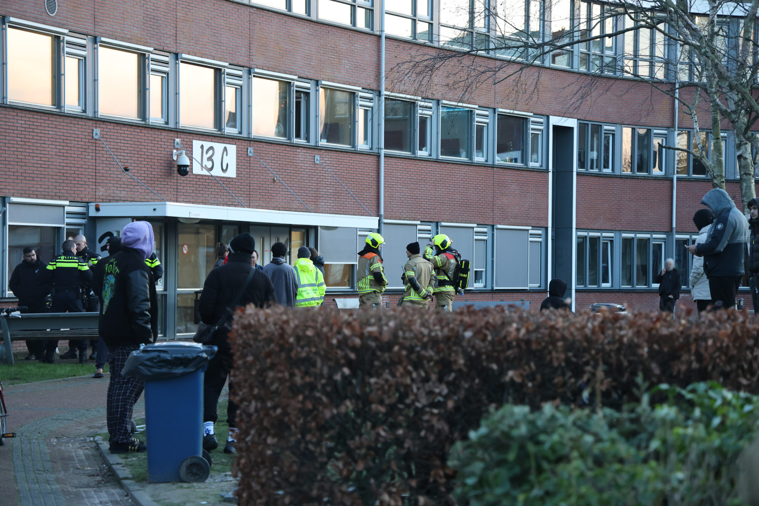 De bewoner die de brand heeft gesticht, is per ambulance naar het ziekenhuis gebracht. De politie reed achter de ambulance aan om de man na behandeling in het ziekenhuis aan te kunnen houden.