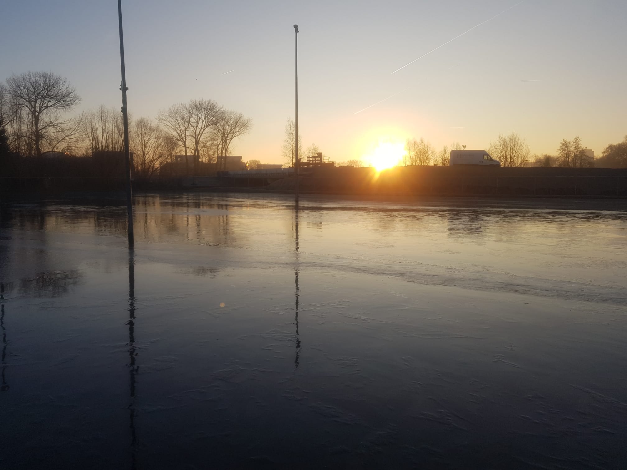“In de 25 jaar dat ik ijsmeester ben, is dit het mooiste ijs”, zegt ijsmeester Adri Hendriks tevreden nadat hij een rondje heeft geschaatst. En hij heeft gelijk, het ijs is net een spiegel. Vandaag kan Voorschoten genieten van schaatsen op de natuurijsbaan.