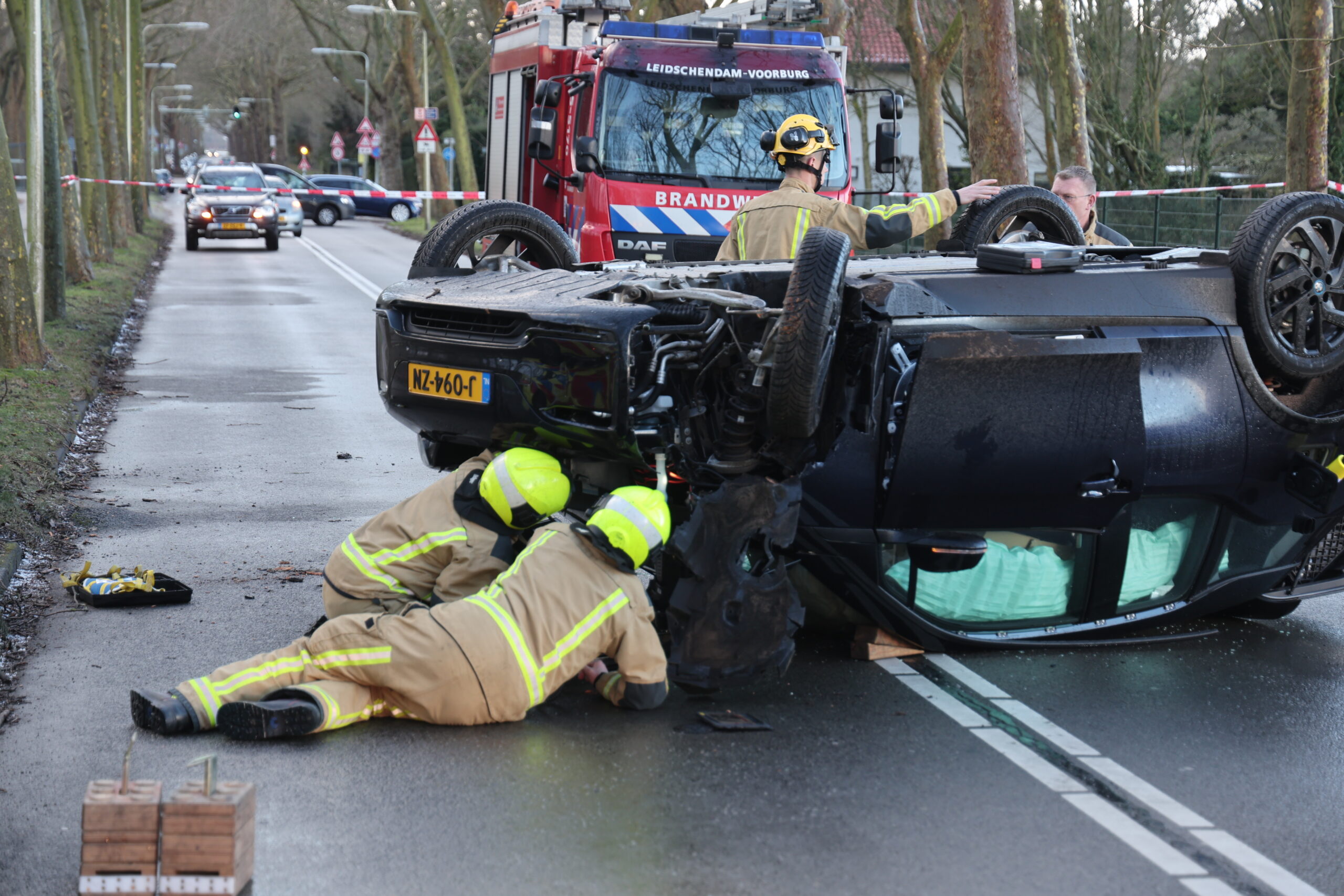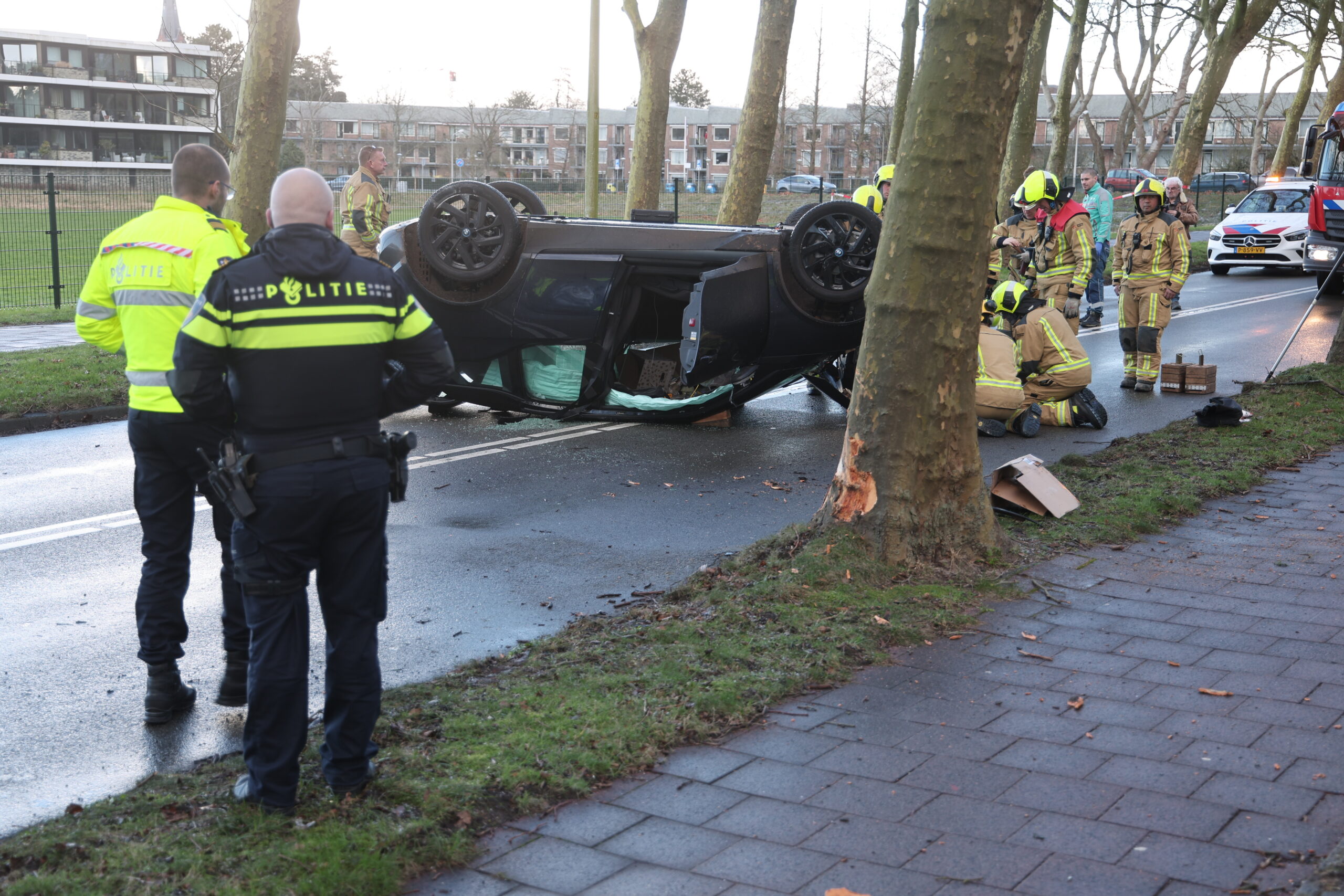 Een automobilist is op de Prinsenweg in Wassenaar met zijn voertuig over de kop geslagen, nadat hij tegen een boom was gebotst. Een inzittende is in de ambulance verzorgd en stapte na enige tijd zelf weer naar buiten. Een nadere behandeling in het ziekenhuis bleek dan ook niet nodig.