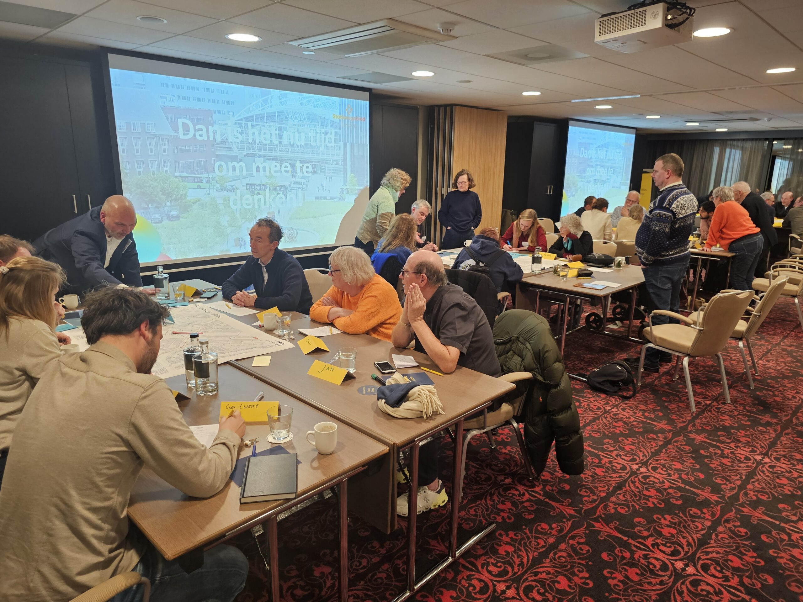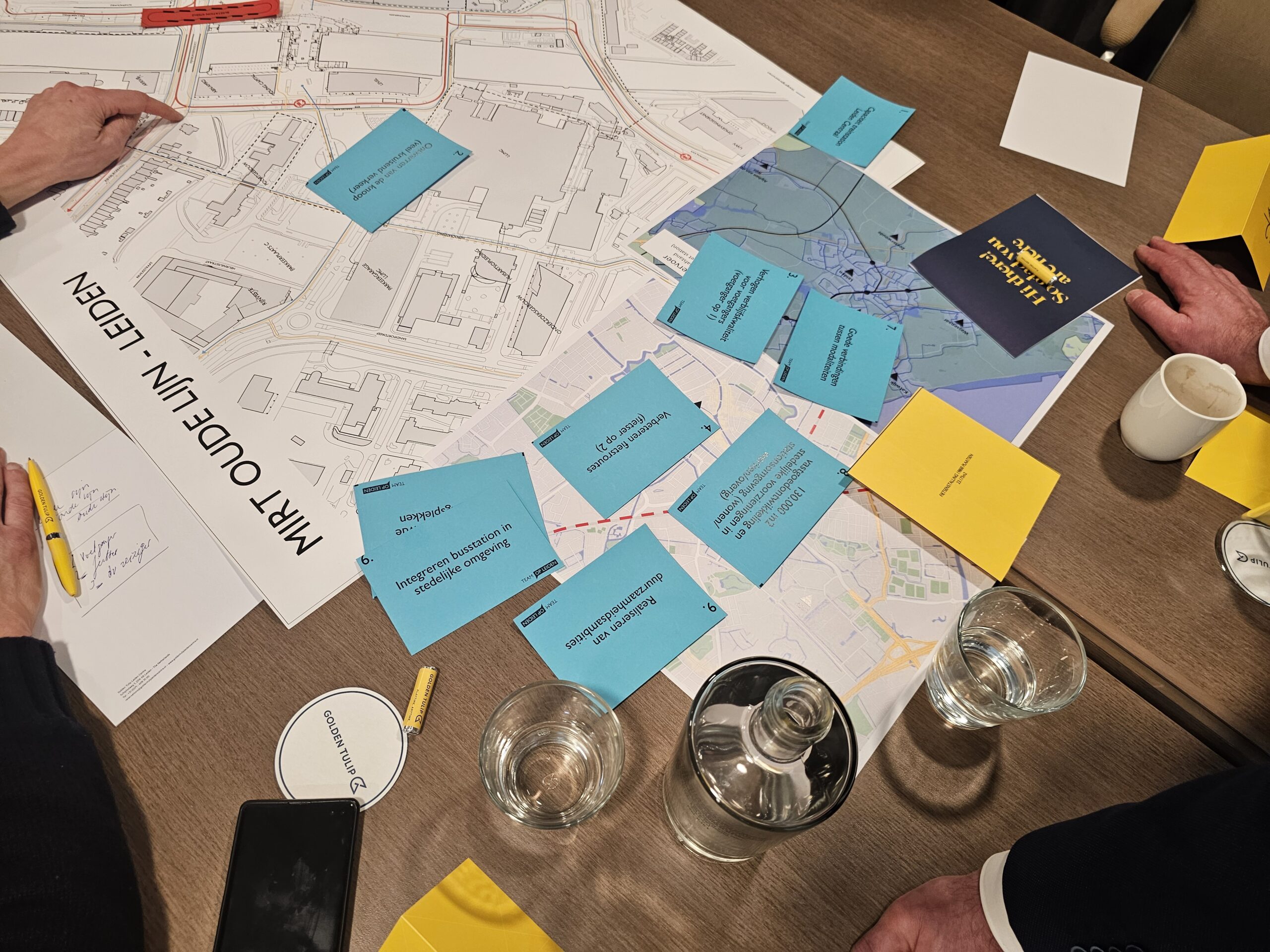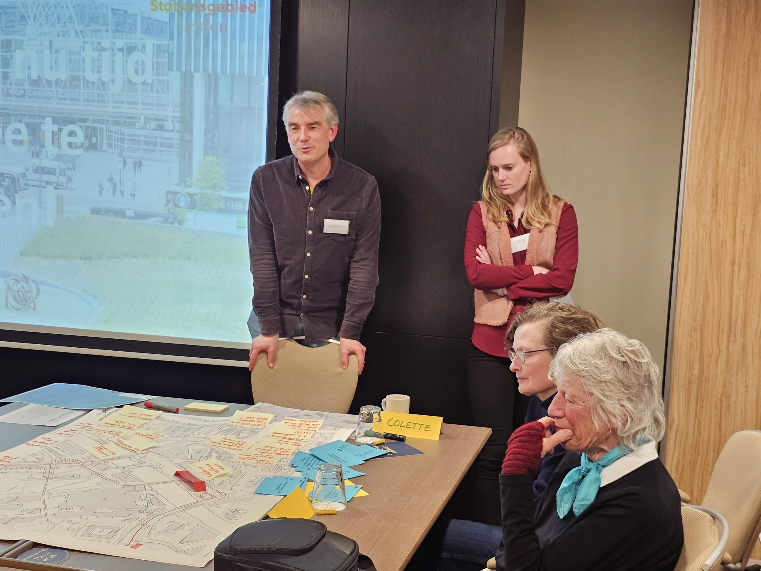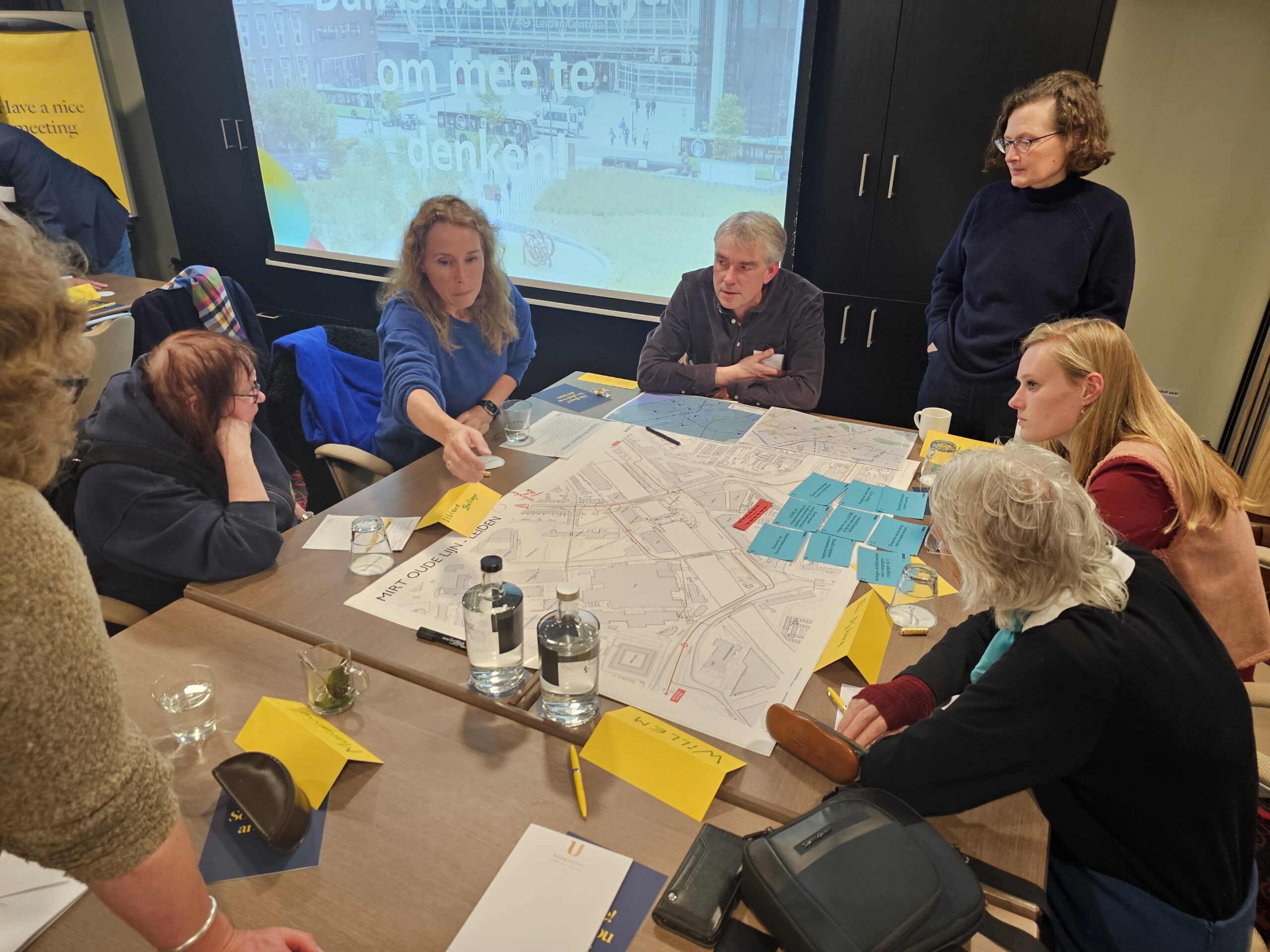 Dinsdagavond was bij het Golden Tulip Hotel in datzelfde stationsgebied de eerste van een serie bijeenkomsten waar iedereen welkom is om mee te praten en input te leveren voor de plannen. Daarvan werd flink gebruik gemaakt. Circa vijftig belangstellenden waren op komen dagen en namen na een korte inleiding plaats aan een van de acht ‘meedenktafels’. Elke tafel stond onder leiding van enkele leden van ‘Team op Leiden’. Dat is het consortium van architecten, stedenbouwkundigen en ingenieurs dat is samengesteld om de plannen vorm te geven.
