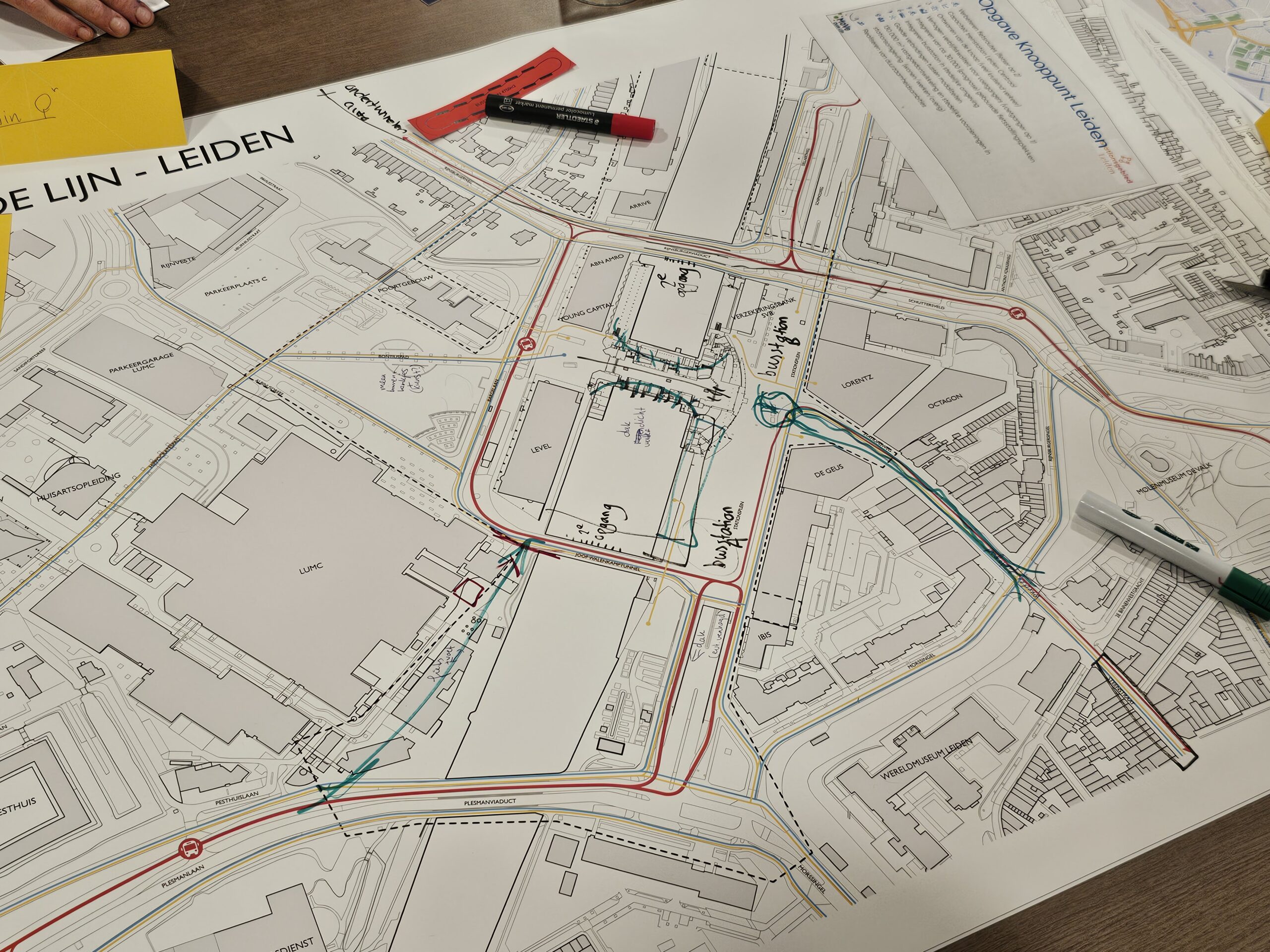 Op elke tafel een groot vel met de huidige situatie, een lijst met de opgaven waar Leiden voor staat en vooralsnog een budget van tweehonderd miljoen euro. In november 2022 werd bekend dat het Rijk een bedrag van 190 miljoen voor de doorontwikkeling van het Leidse stationsgebied beschikbaar stelde, maar door de inflatie is dat inmiddels opgelopen tot tweehonderd miljoen. “En misschien wordt dat nog wel meer als we een goed ontwerp maken. We moeten lef tonen en een mooie integrale puzzel leggen”, zegt Hazeleger.