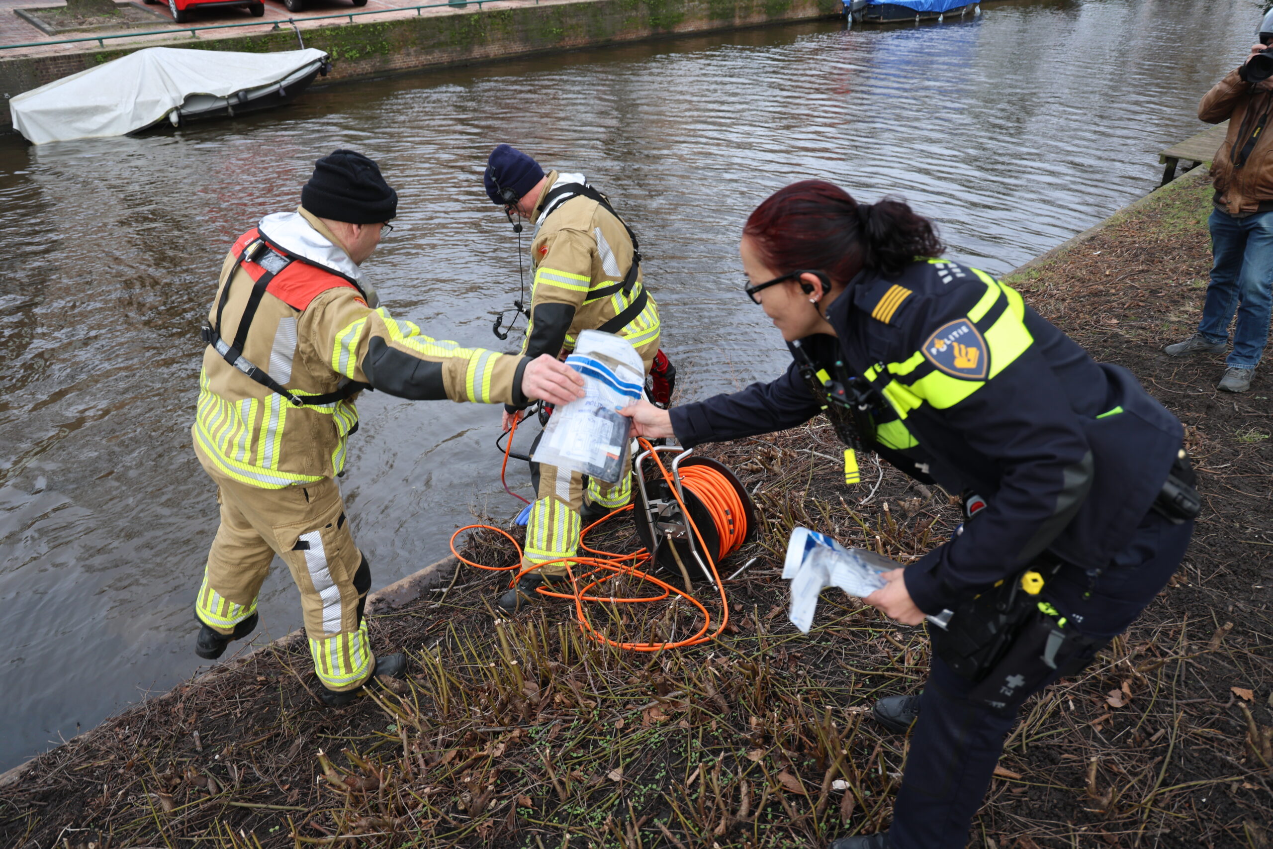 Tijdens een aanhouding heeft de verdachte zondagmiddag twee telefoons in een Leidse gracht gegooid. Dat gebeurde op de Doezastraat ter hoogte van het van der Werfpark. Op verzoek van de politie kwam de brandweer ter plaatse om de telefoons in het water te zoeken en eruit te halen.