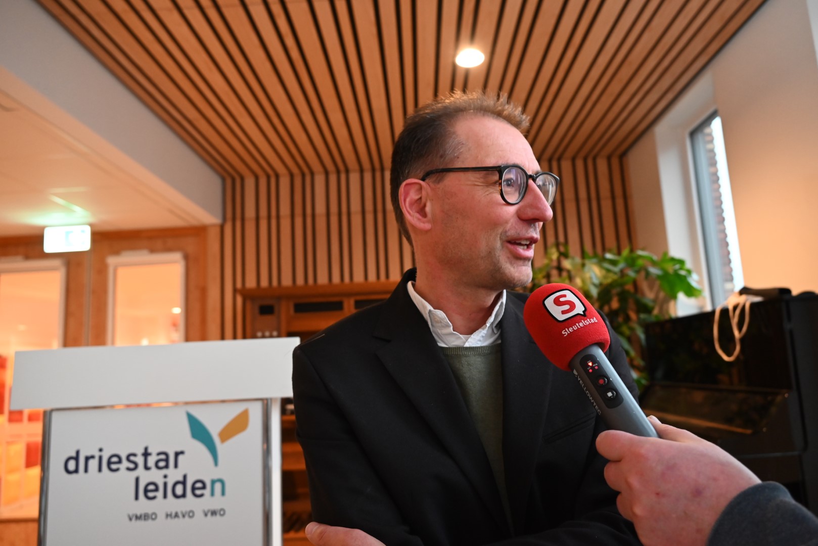 Voorzitter Mariëtte Soellaars, wethouder Julius Terpstra, Driestar adjunct-directeur Bart de Jong en de trotse ouders en zus van de voorzitter vertellen over Happietaria Leiden.