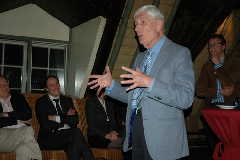 Dries van Agt tijdens een politiek café in Leiden.