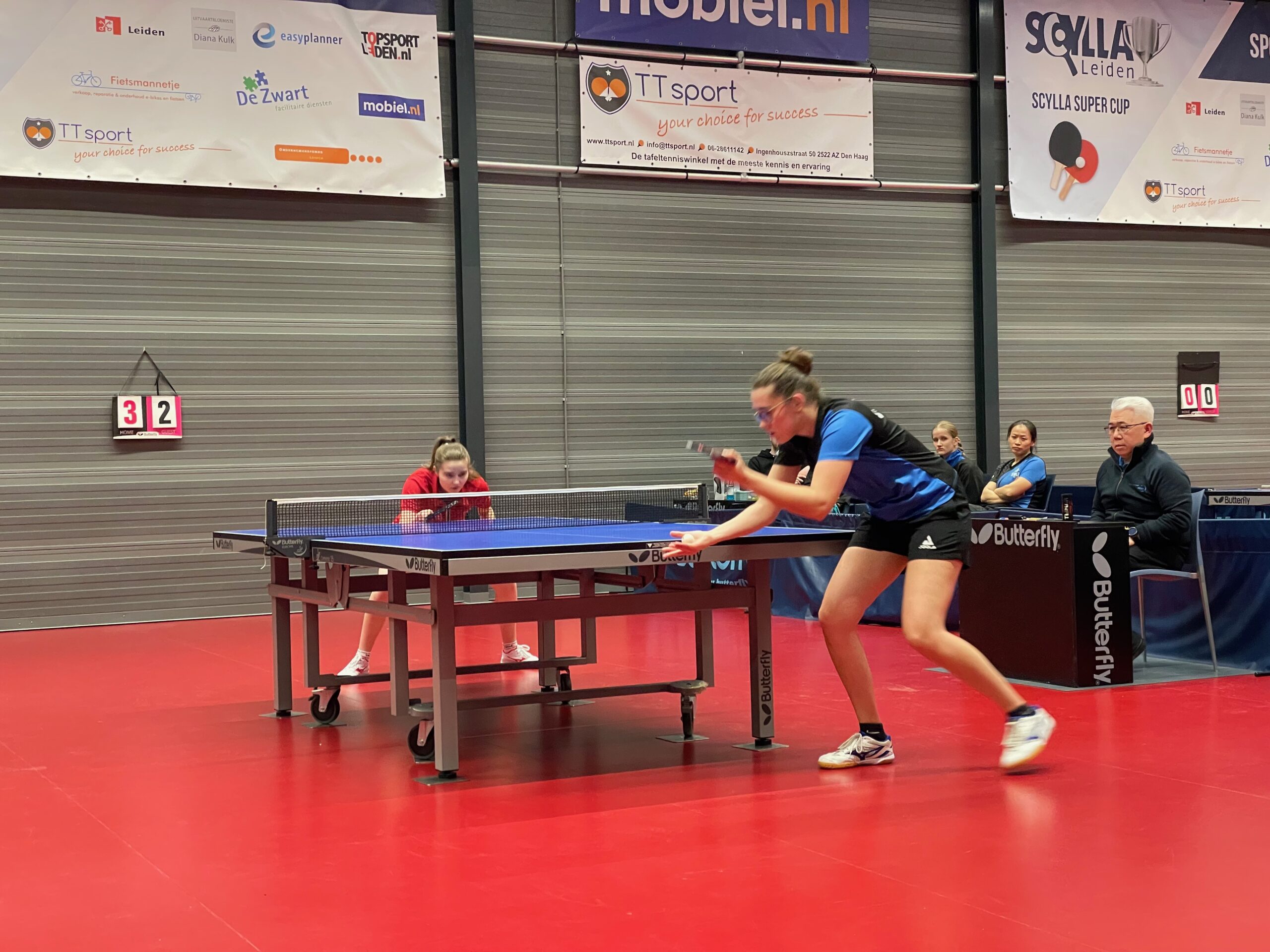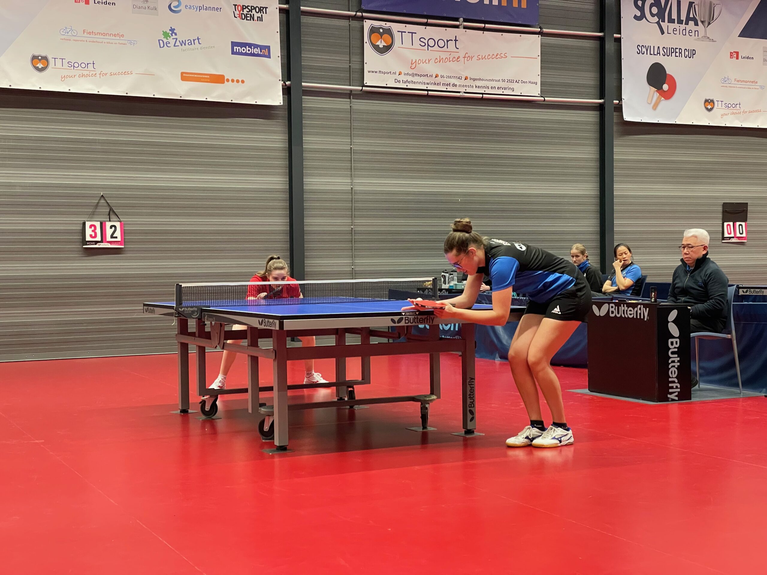 De ploeg uit Limburg was in hun sterkste opstelling naar Leiden gekomen en dat betekende dat Sara Devos meespeelde. De Belgische speelster won telkens als zij aan de tafel stond, zowel in de enkelspellen als de dubbelpartij, maar het team van Scylla wist de andere speelsters wel te verschalken. En nadat alle enkelpartijen waren gespeeld stond het 4-2.