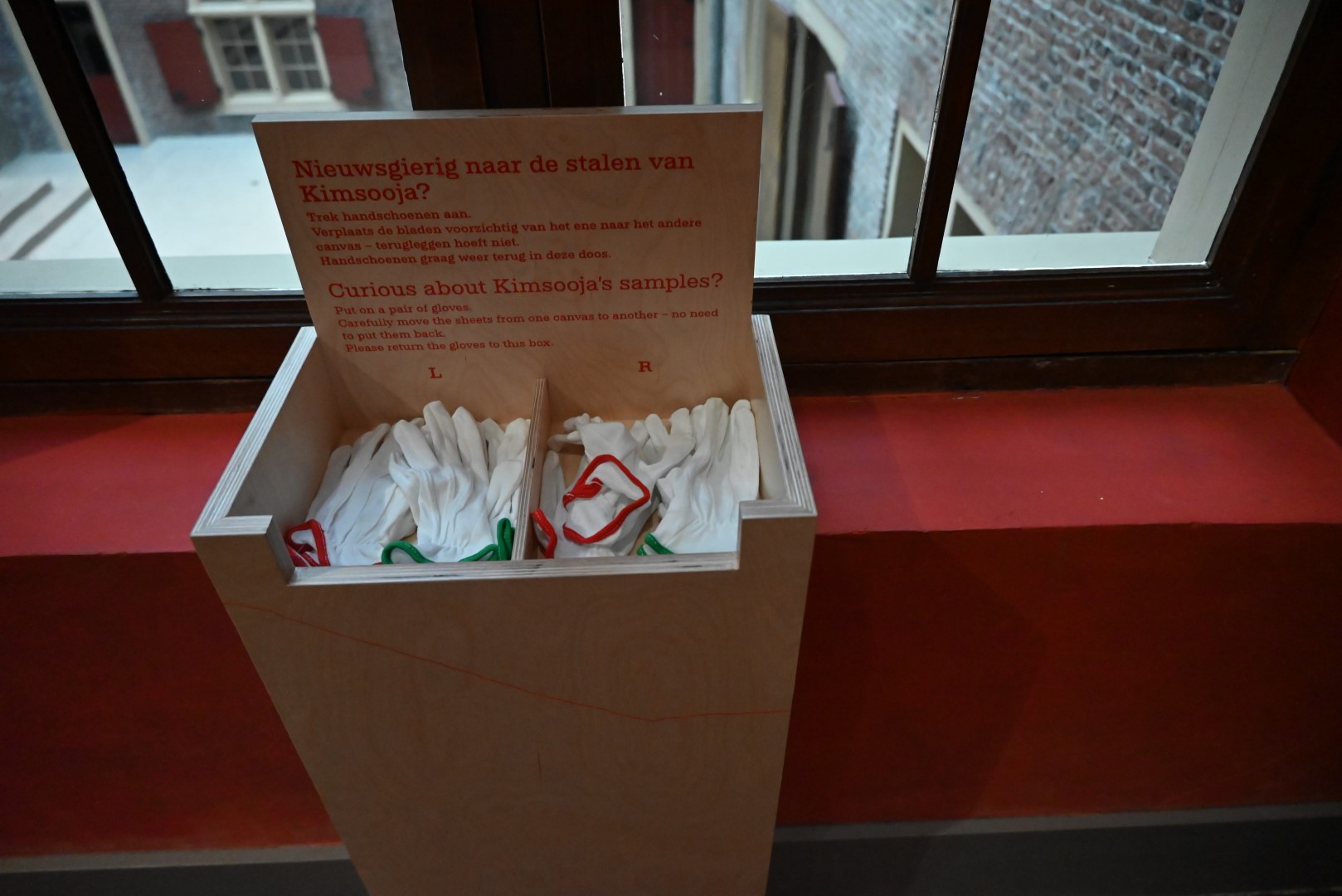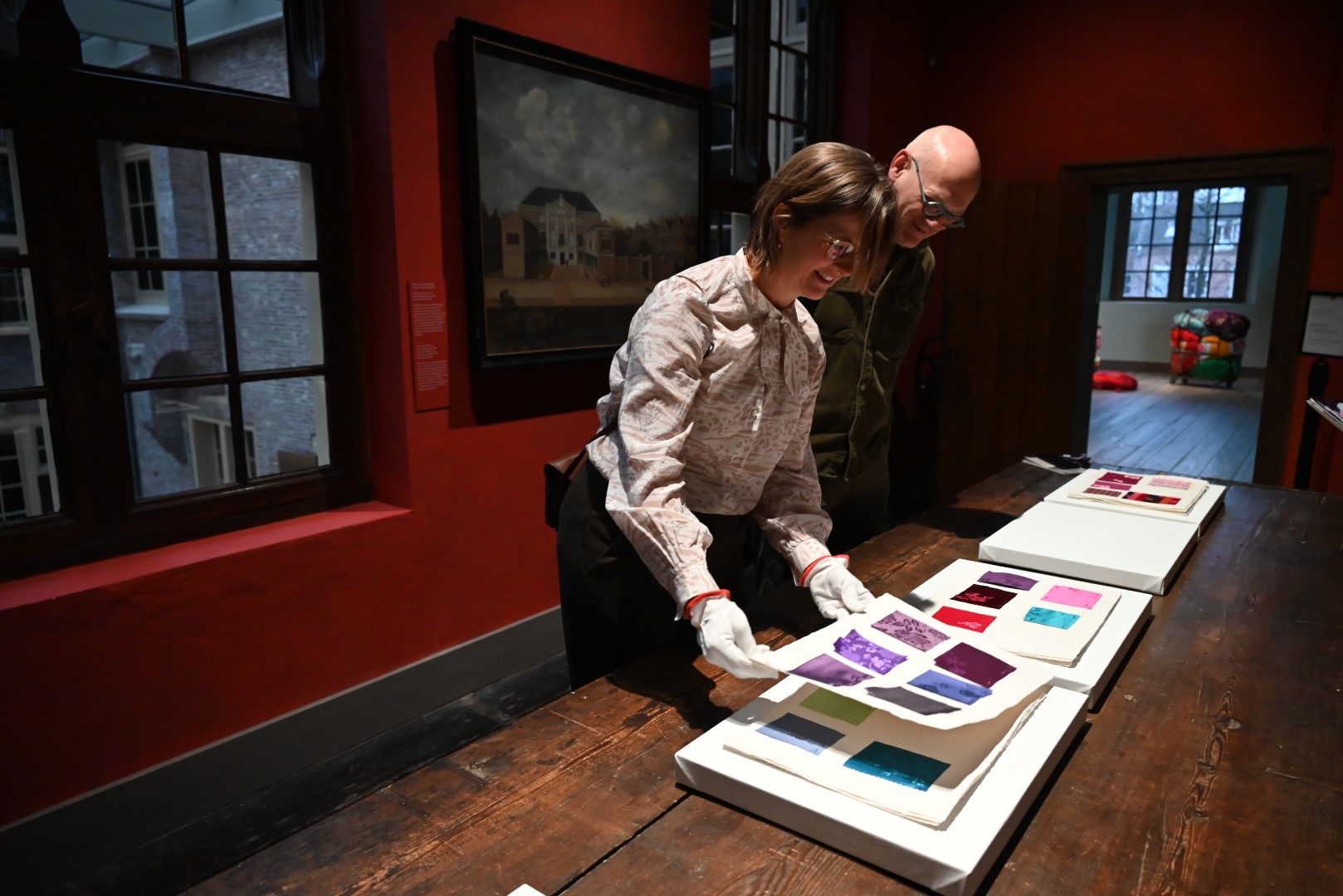 Geïnspireerd door de Leidse lakenindustrie zoals die in de Lakenhal wordt getoond, maakte Kimsooja speciaal voor deze tentoonstelling stalen van textiel uit haar eigen archief. En bij uitzondering mogen bezoekers zelf door die stalen heen bladeren. Mits ze handschoentjes aantrekken.