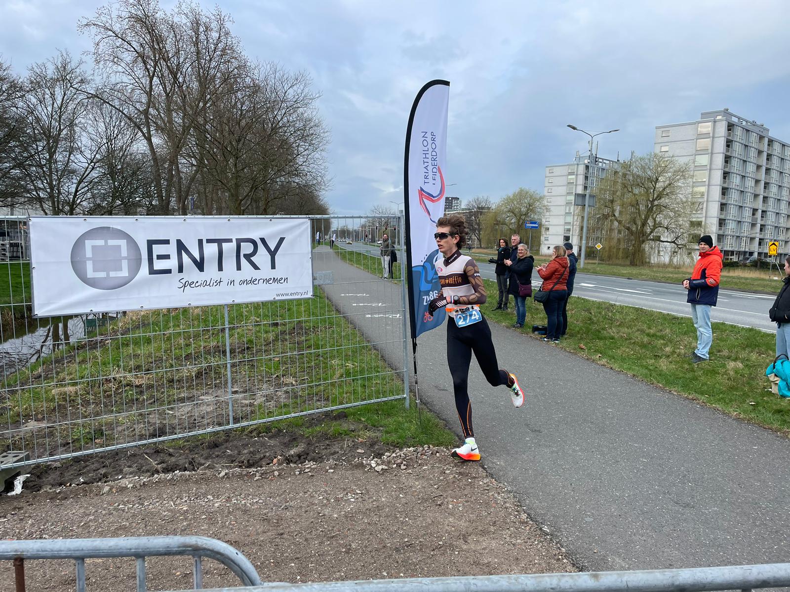 Bij de heren op de hele afstand stond nationaal kampioen Martijn Veling uit Amersfoort aan de start. Hij bewees zijn klasse en won met bijna tien minuten voorsprong. En als het aan hem ligt, komt hij volgend jaar terug naar Leiden. Want hij vond het een prachtig evenement. Naast hem op de derde plek stond iemand die zo’n vijfentwintig jaar geleden de toenmalige Leidse wintertriatlon wist te winnen: Rinse van Ouweelen. Toen was hij Leidenaar, nu woont hij in Monnickendam. Maar voor dit evenement wilde hij wel naar zijn geboortestad terugkomen.