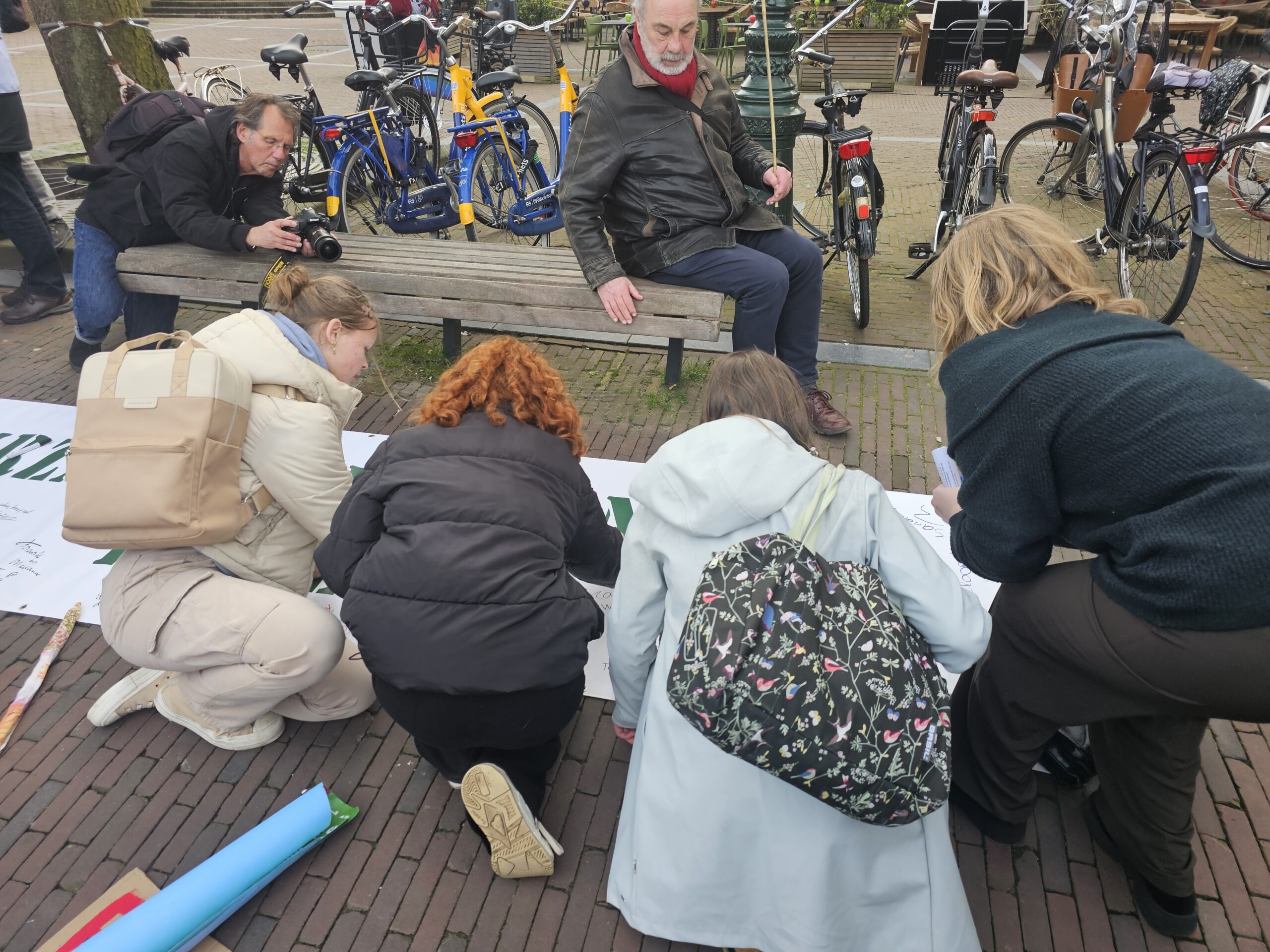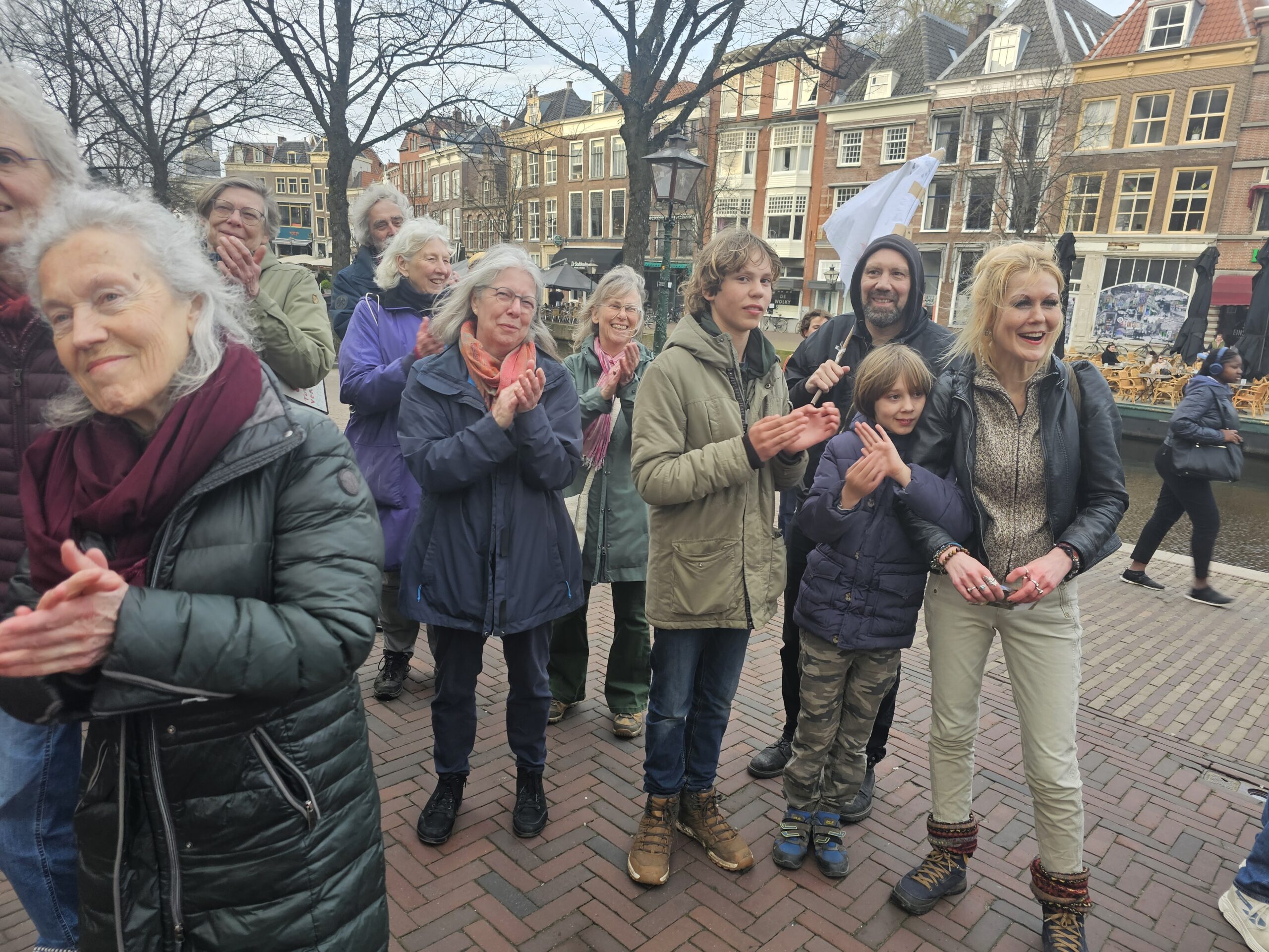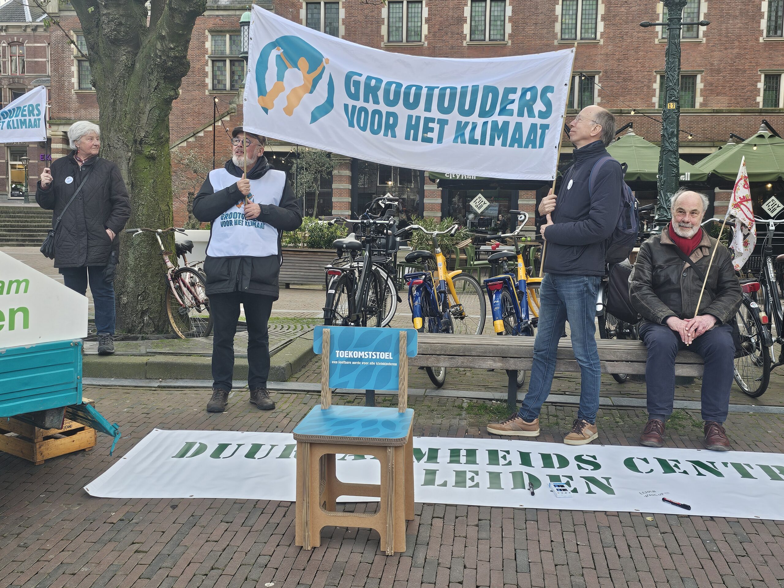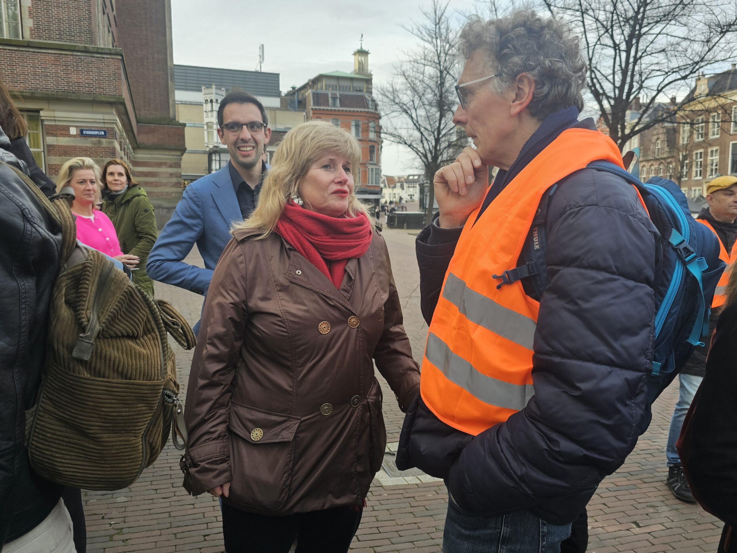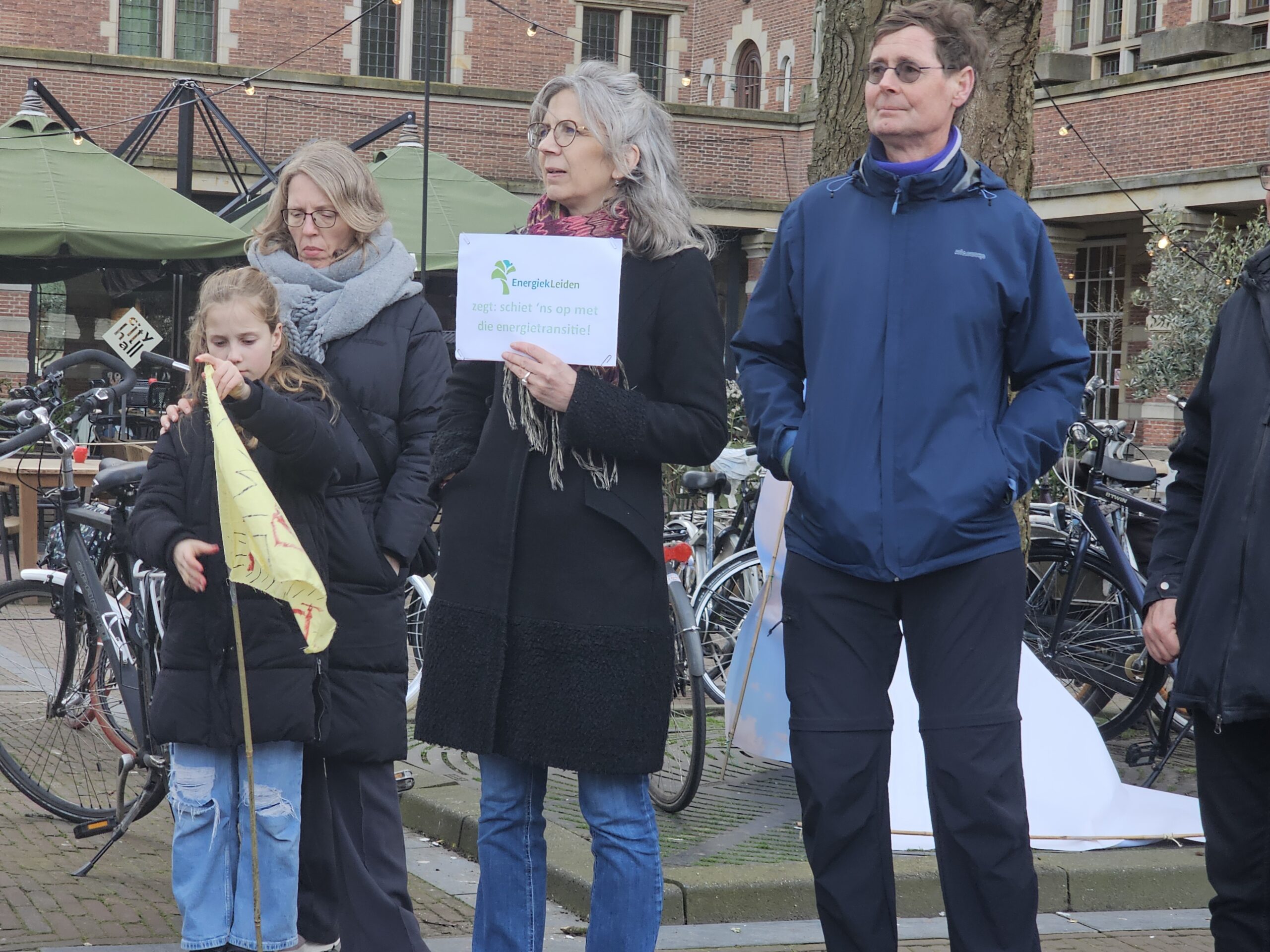 Onderweg hield de mars halt bij het Volkshuis aan de Apothekersdijk. Dat gebouw komt na de zomer vrij, omdat BplusC het gaat verlaten. De organisatie ‘Leiden Sneller Duurzaam‘ heeft het oog op het pand laten vallen als locatie voor een Leids duurzaamheidscentrum. Zo’n energieloket is ook een van de adviezen die het Burgerberaad Energietransitie aan de gemeente Leiden heeft gegeven.