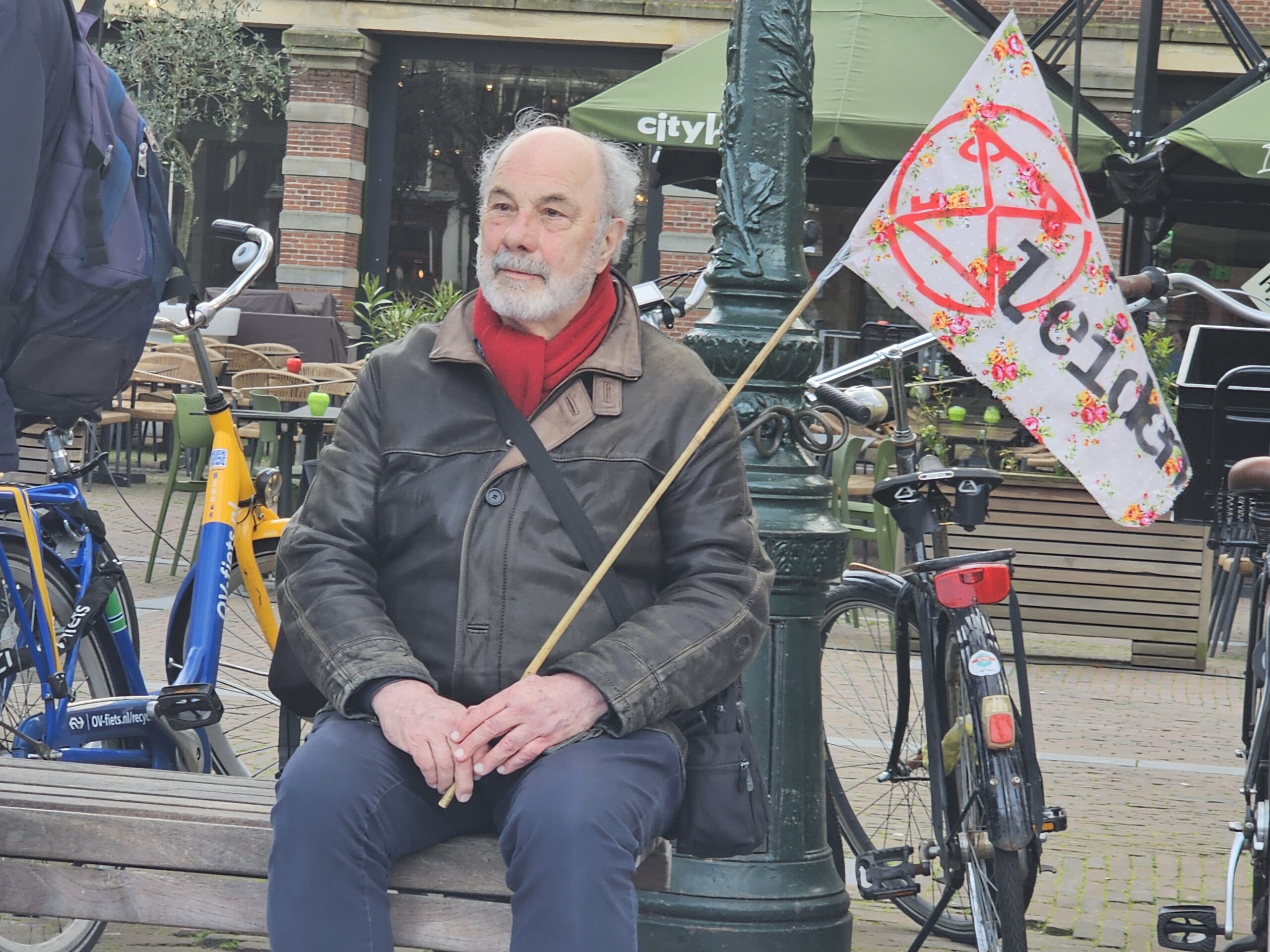 Maarten Stoffer van Leiden Sneller Duurzaam vertelt over het doel van de Klimaatmars en het nut van een duurzaamheidscentrum.