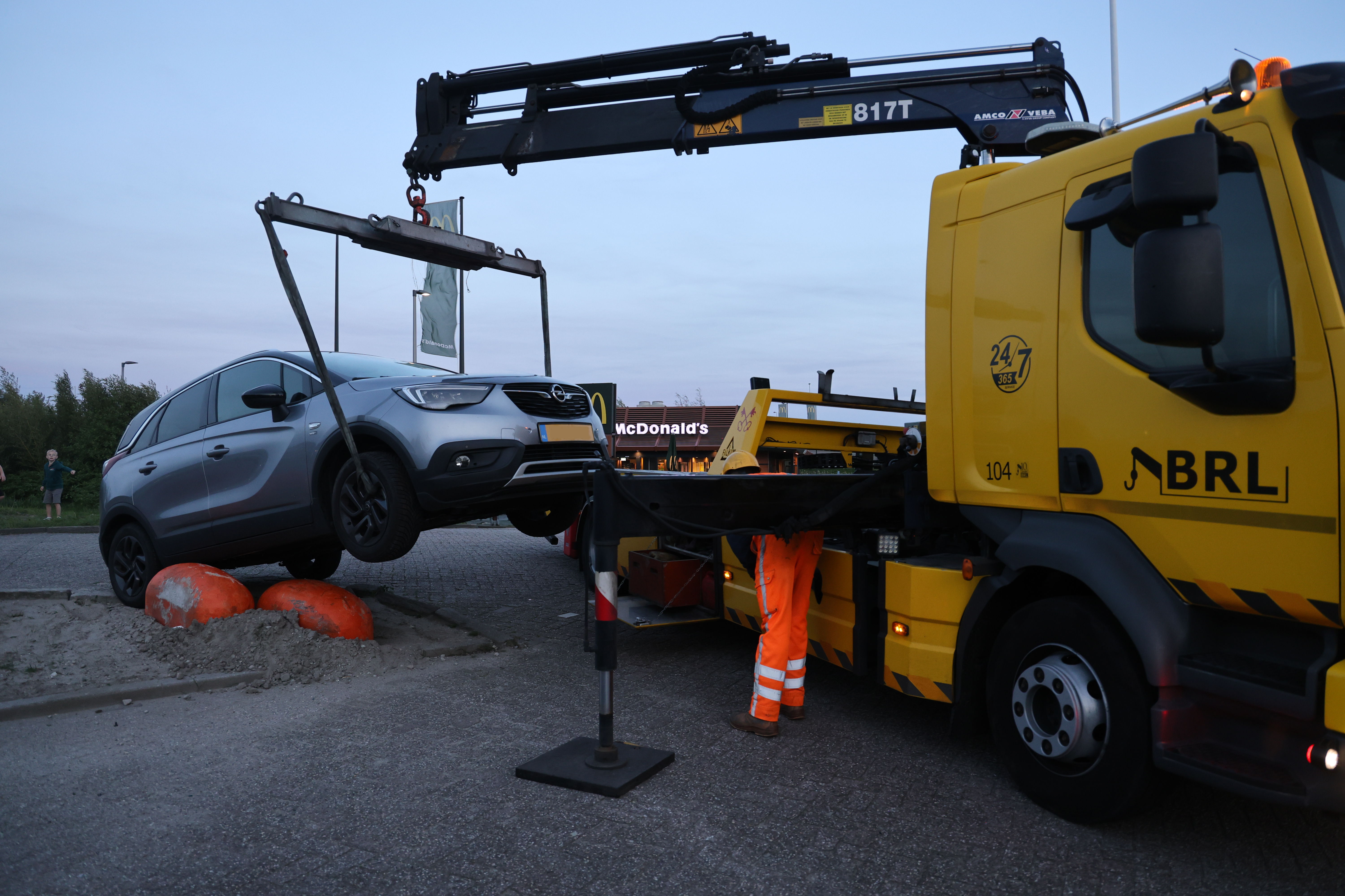 De opvallende kleur kon dus niet voorkomen dat er opnieuw een auto op de ‘rug’ reed. Het restaurant denkt na over een andere oplossing.