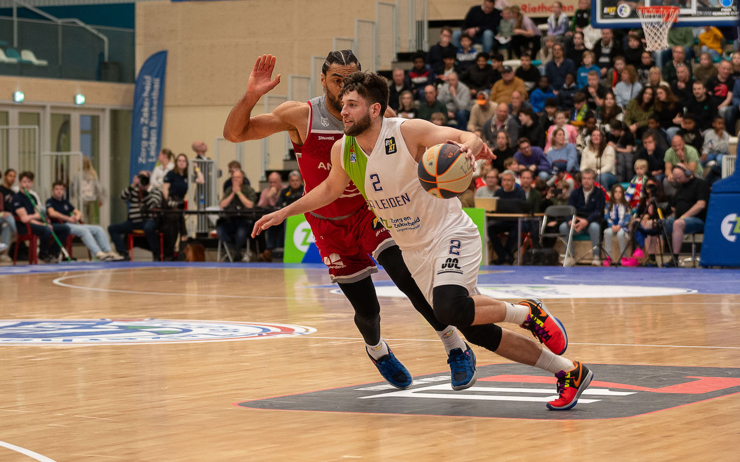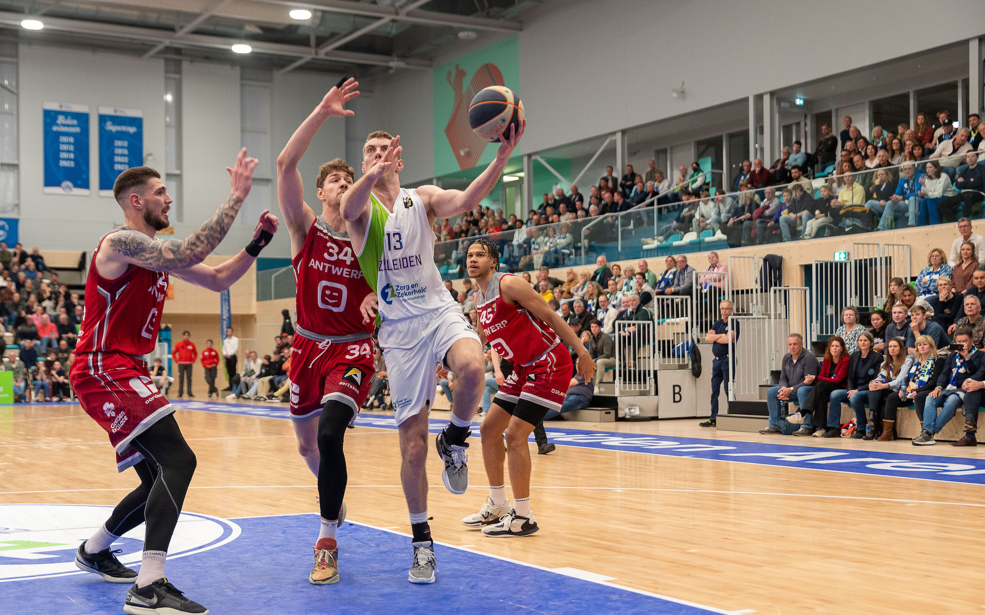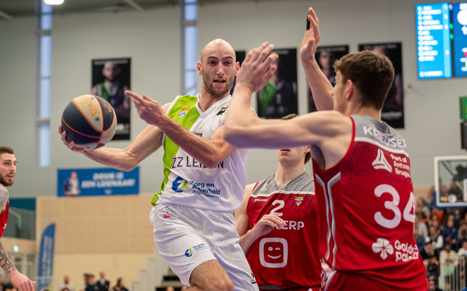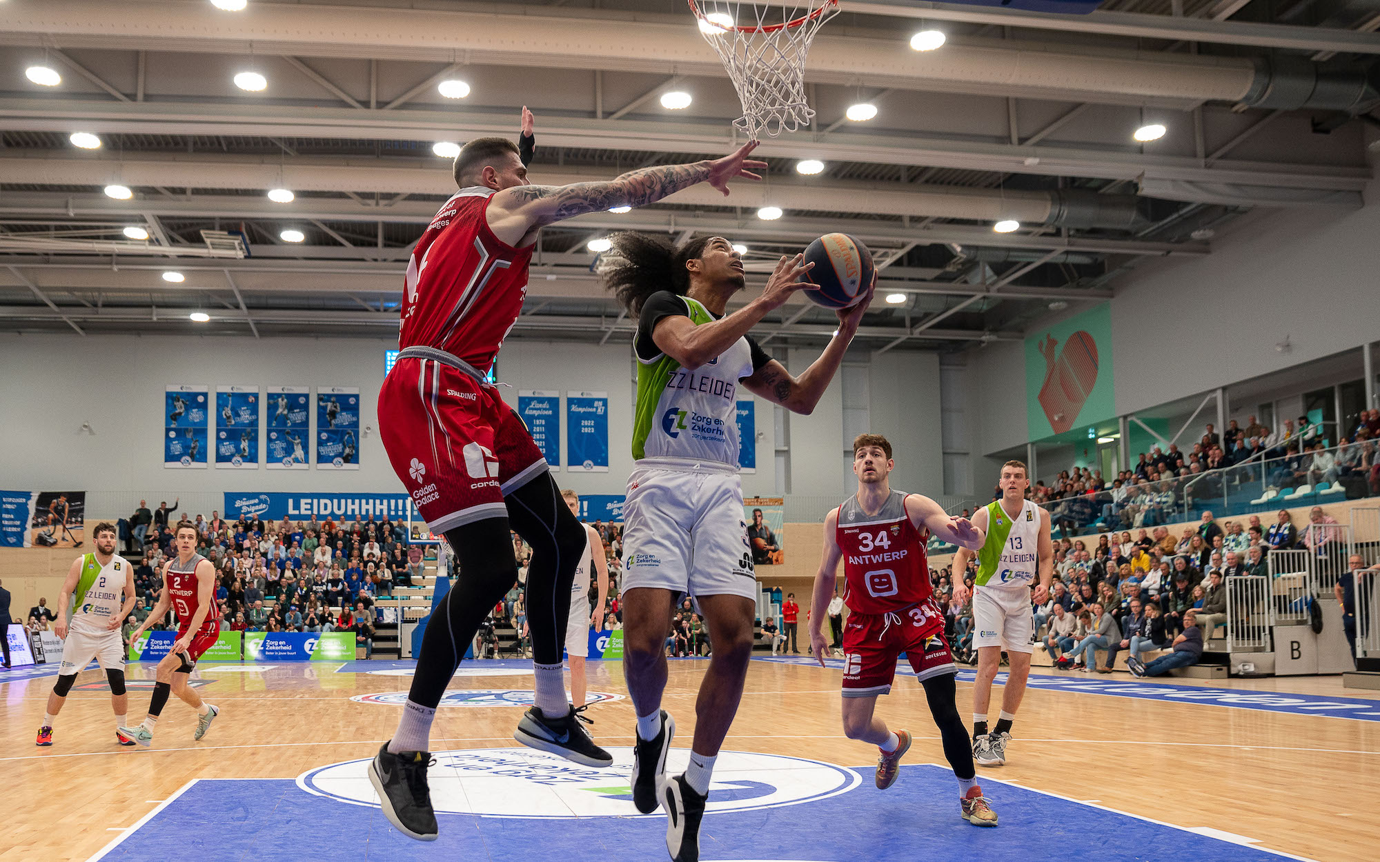 Met een bijna fitte selectie begon Zorg en Zekerheid Leiden aan het duel tegen Telenet Giants Antwerp. De thuishal in Sportcomplex 1574 zat goed vol met meer dan 2.100 supporters, ook vanuit Antwerpen waren bussen met fans naar Leiden gekomen.