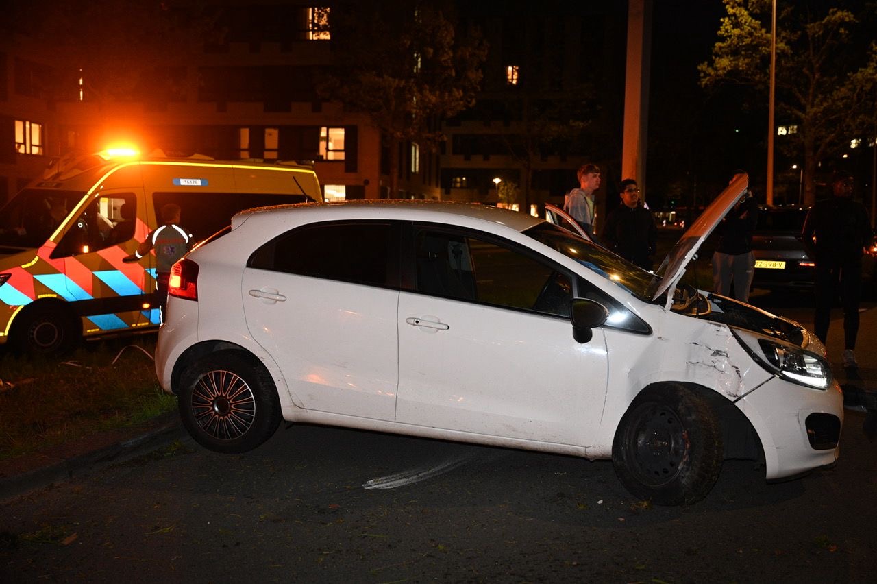 Een automobilist is maandagavond rond 23.30 uur in de Ypenburgbocht bij de kruising met de Schipholweg in Leiden tegen een verkeerspaal in de middenberm gereden.