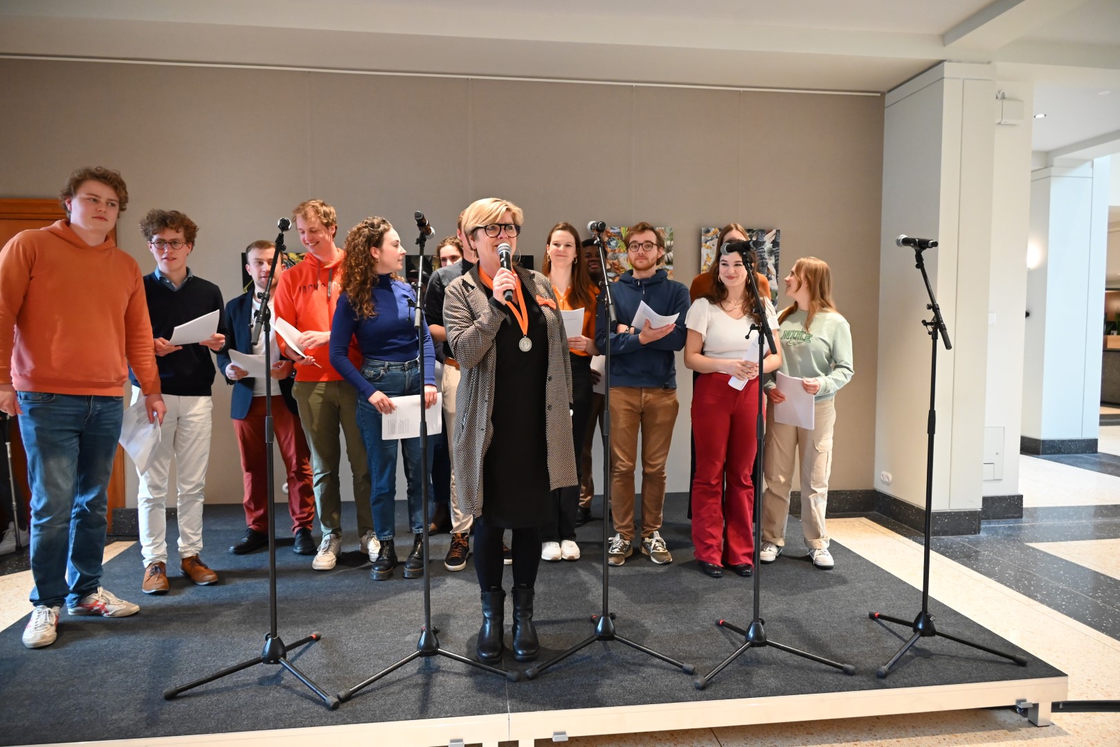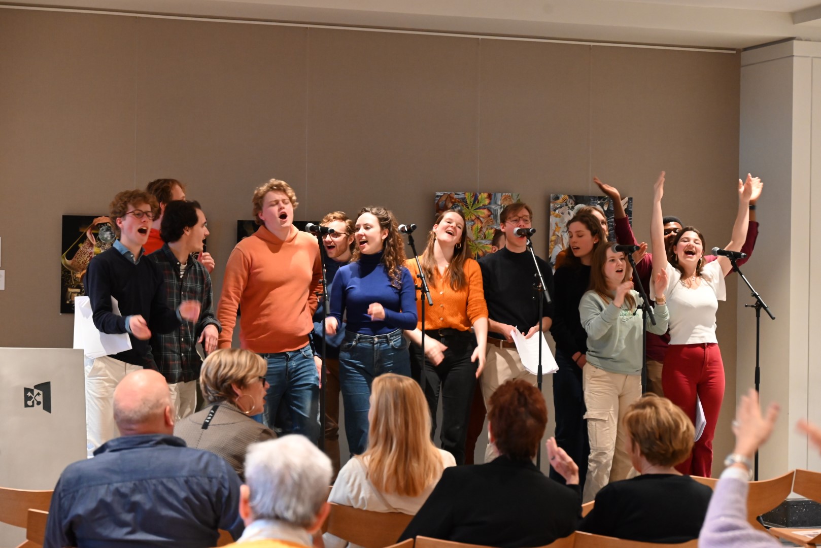 Ze zongen allerlei liedjes onder begeleiding van het koor van studentenvereniging Minerva, Sempre Crescendo. Het koor van Minerva zingt normaal gesproken alleen klassieke liederen, speciaal voor deze middag hadden zij Nederlands repertoire ingestudeerd met bekende oude en nieuwe nummers.