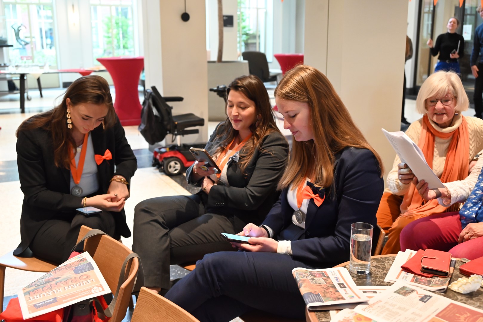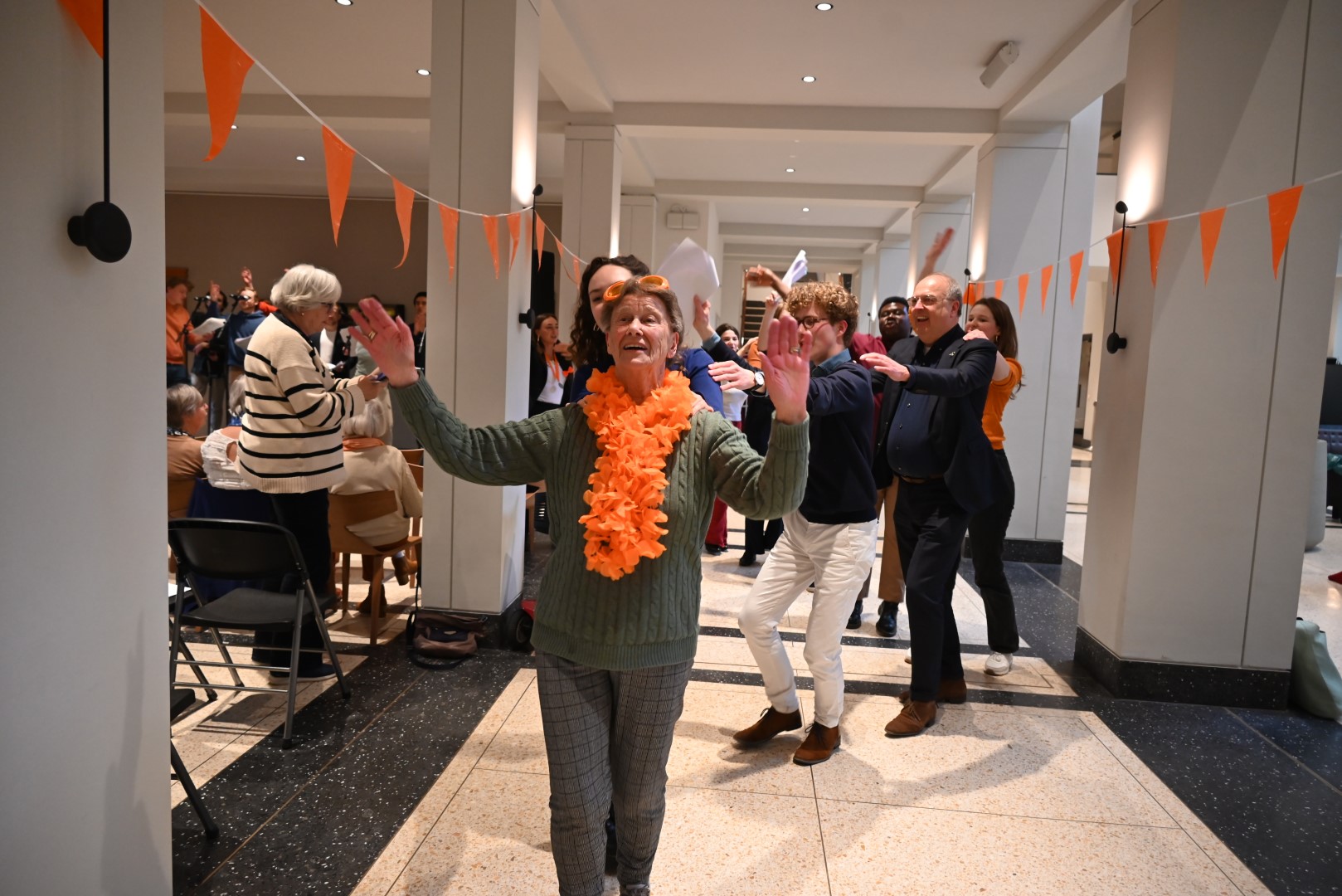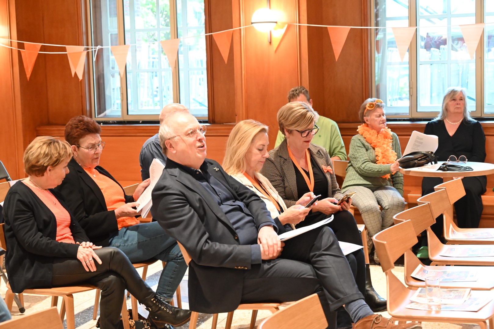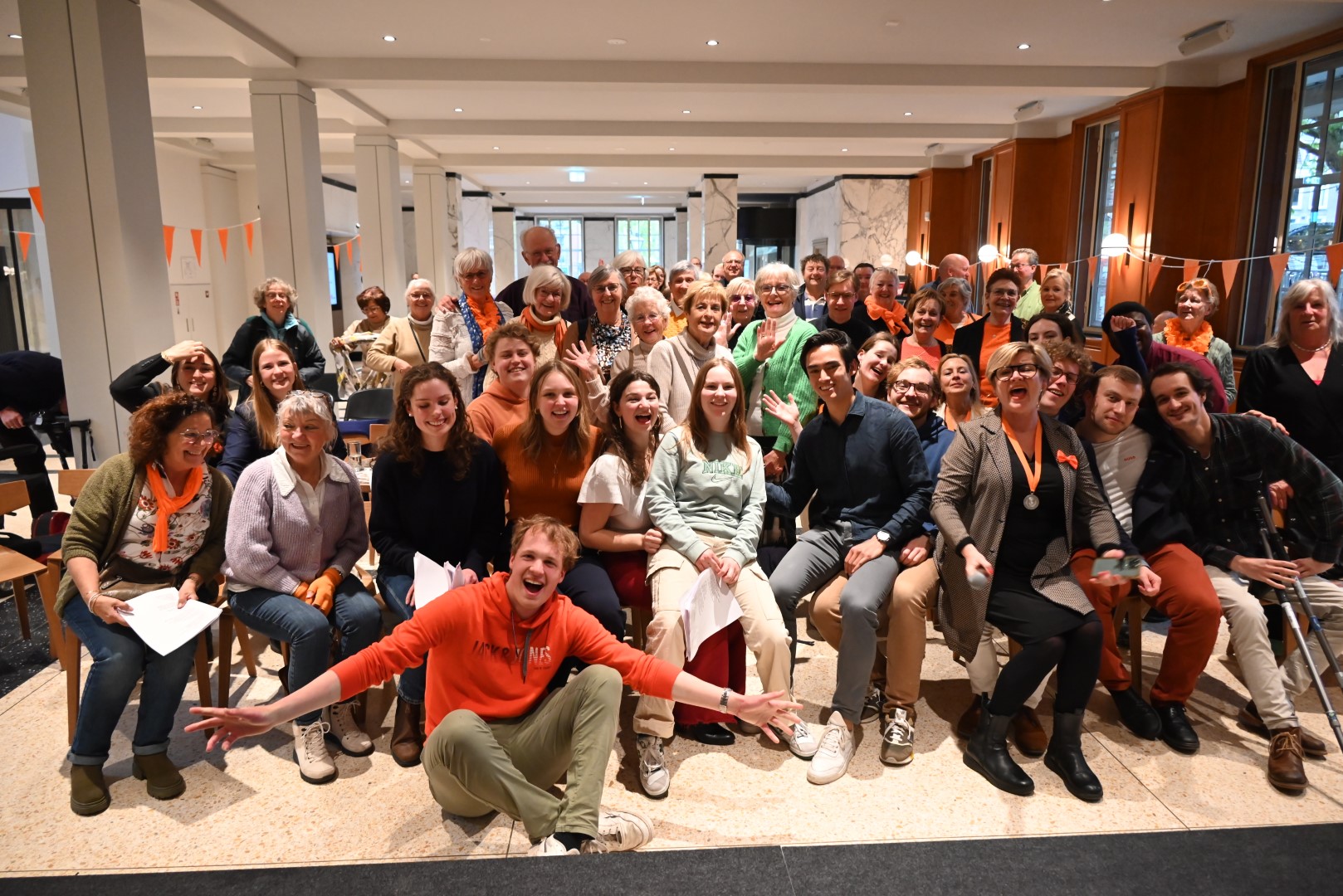 De Oranje Vereniging in Leiden hield donderdagmiddag voor de eerste keer een Meezingspektakel voor ouderen in de foyer van het stadhuis van Leiden. Tussen 14.00 en 16.00 uur waren alle zestigplussers van Leiden uitgenodigd mee te doen met dit gratis meezingfeest.