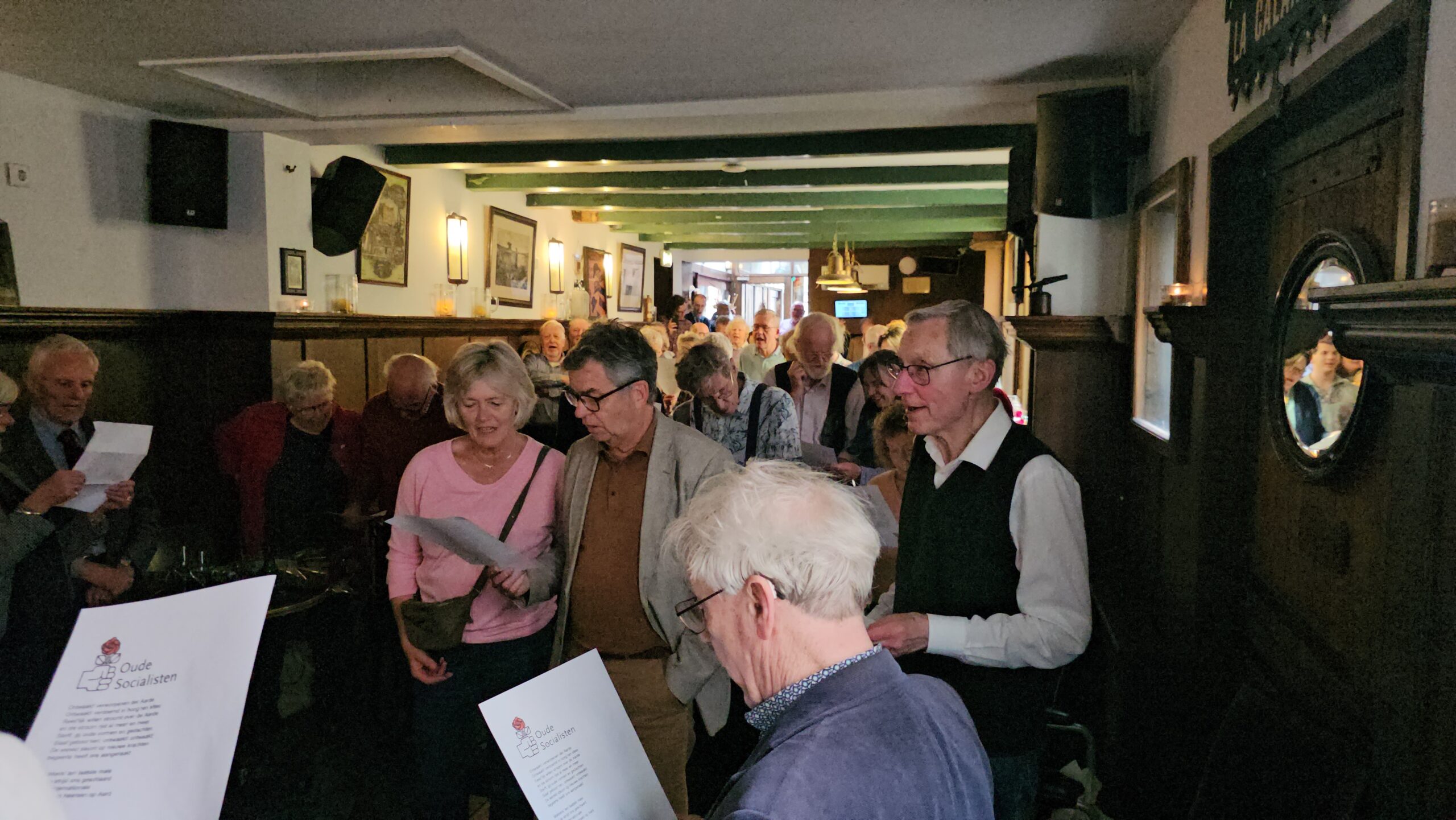 In café de Vergulde Kruik in Leiden kwamen woensdag leden en politici van, met name, PvdA en GroenLinks bij elkaar voor de jaarlijkse viering van de Dag van de Arbeid. Oud-partijvoorzitter Ruud Koole hield een toespraak over de sociaaldemocratie.