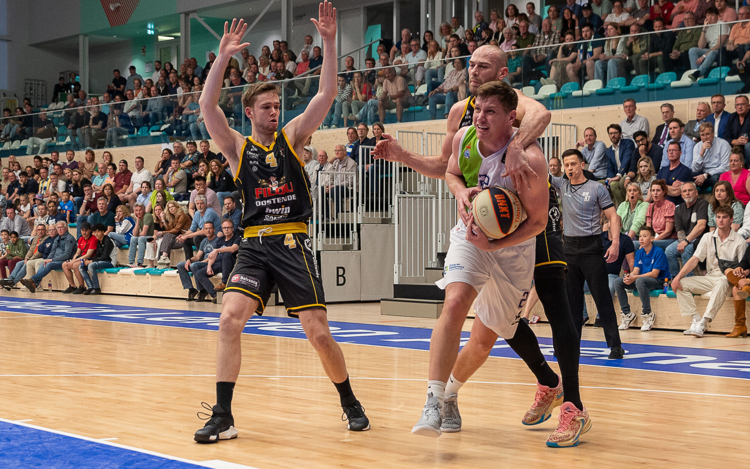 Zorg en Zekerheid Leiden verloor vervolgens in eigen huis wel voor de derde maal op rij. De Leidse topbasketballers kwamen wel beter voor de dag dan bij de twee vorige verloren wedstrijden. Tegen Oostende werd het 68-86.