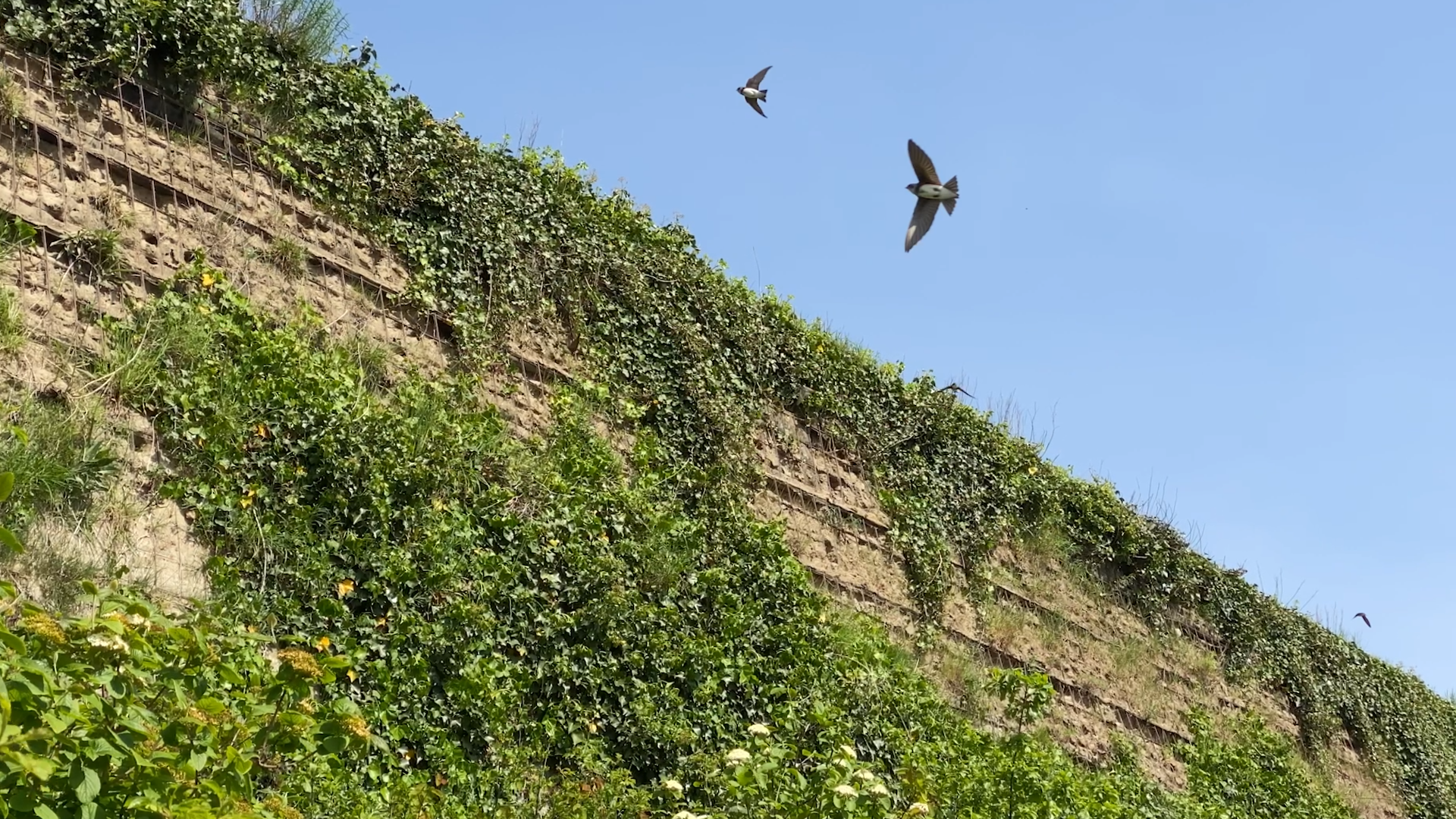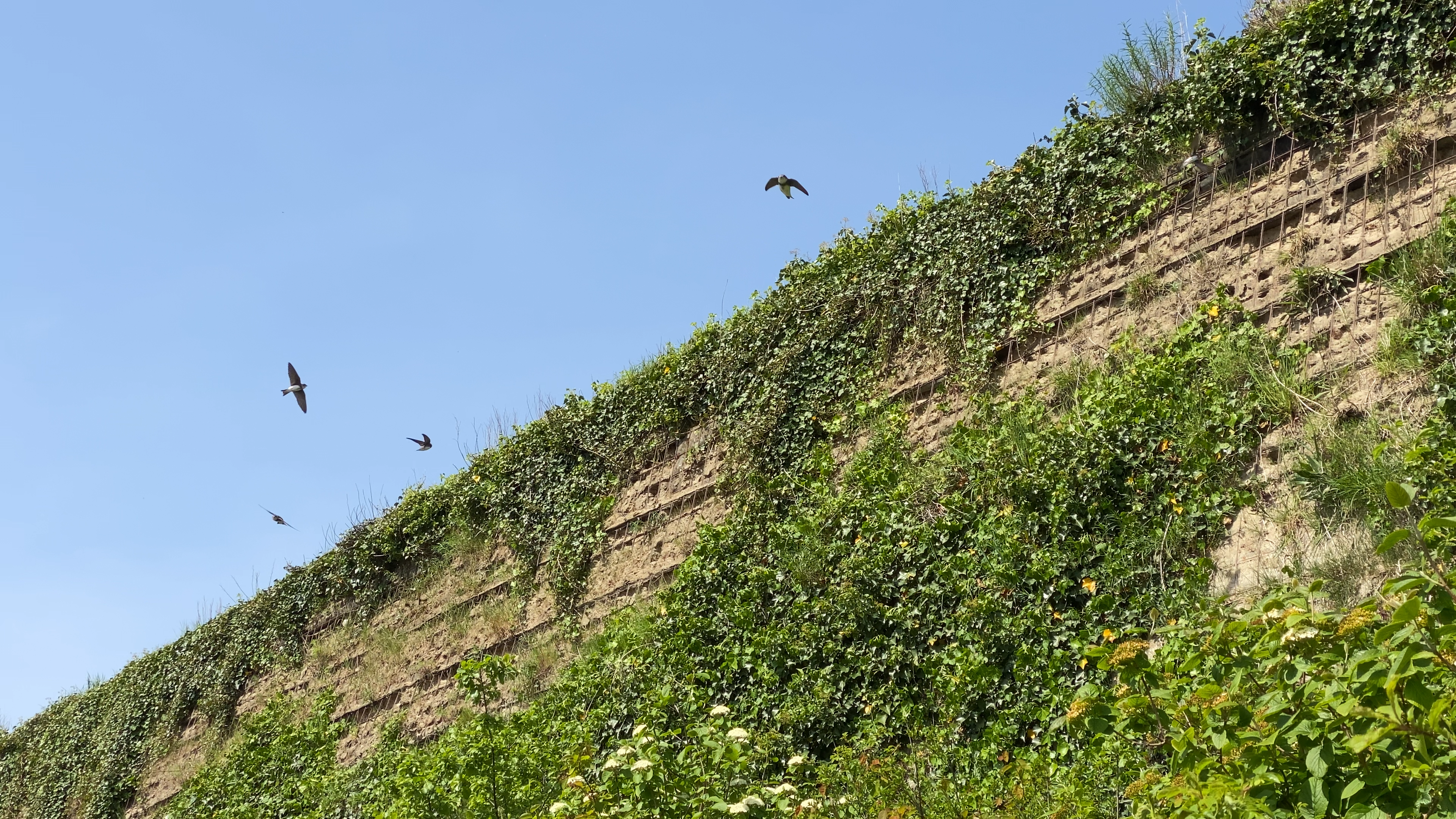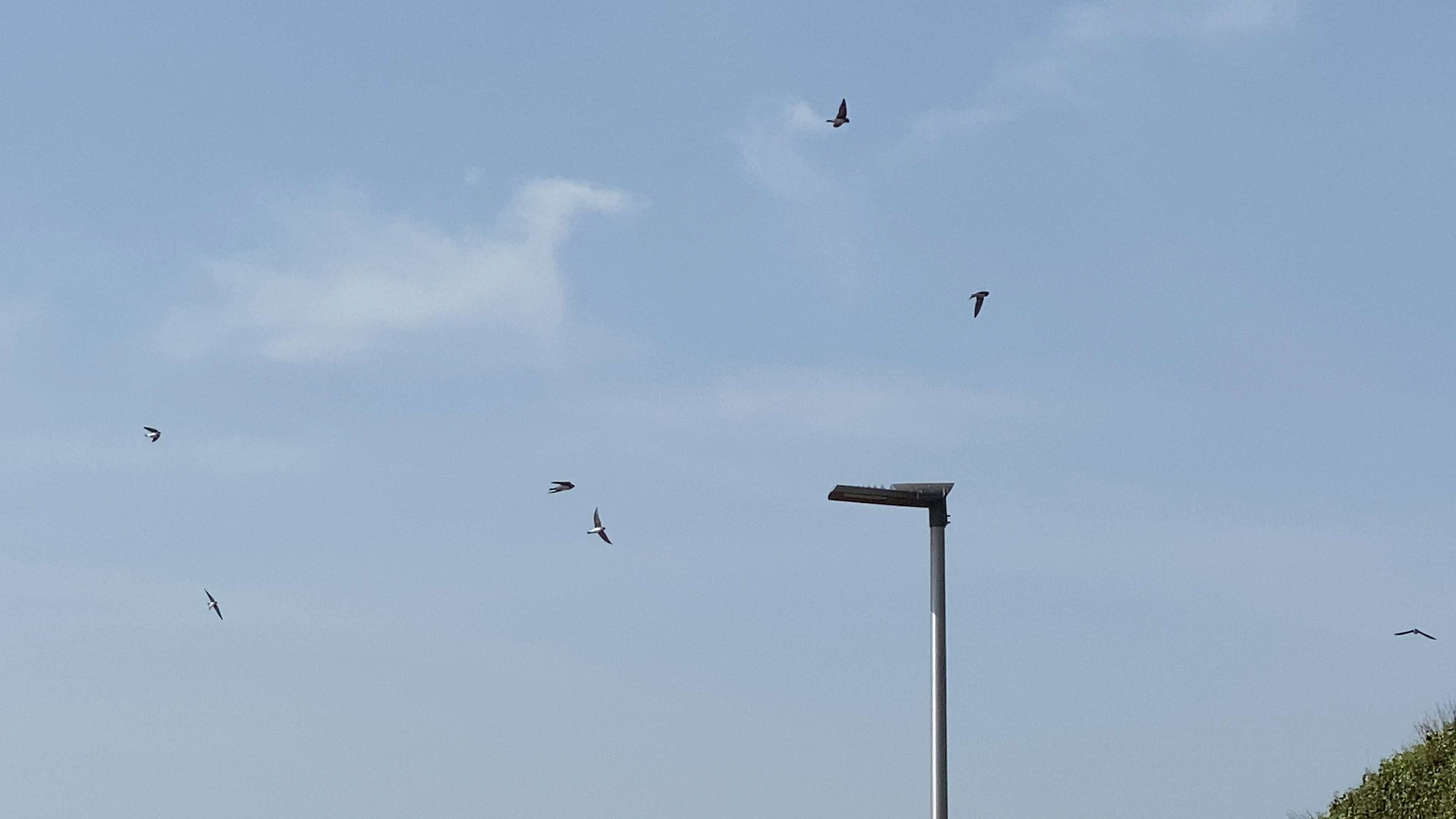 De Riparia riparia, oftewel oeverzwaluw, is normaal gesproken broedend te vinden in steile rivieroevers. Schaars in Nederland, maar geen probleem voor deze groep zwaluwen. Enkele tientallen oerzwaluwen nestelen sinds deze week in de geluidswal langs snelweg A4 bij de Doeshaven in Leiderdorp.