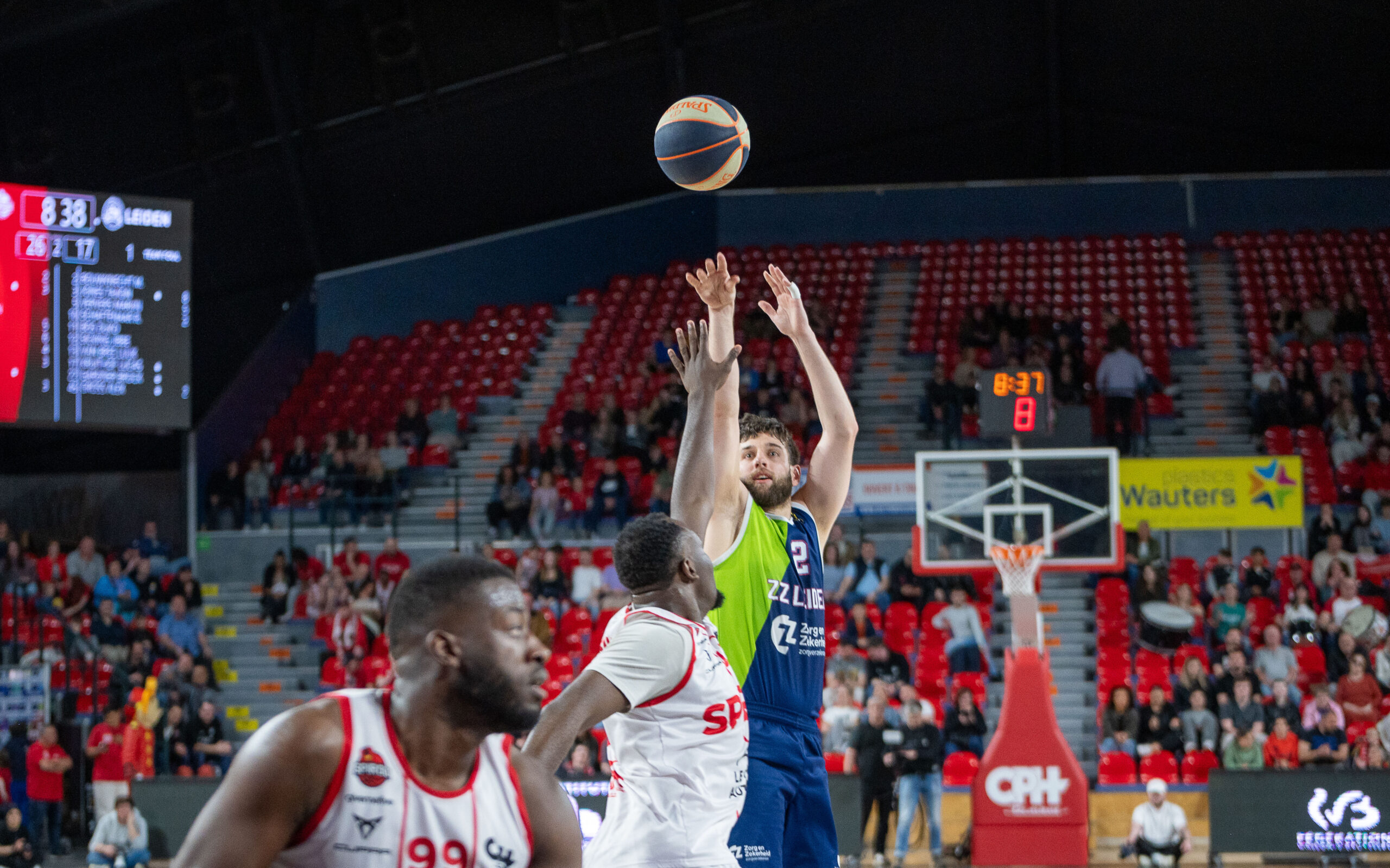 In het tweede kwart ging ZZ Leiden een stuk beter verdedigen en hield Charleroi bijna vijf minuten van scoren af. En ondanks dat de Belgen weer uitliepen, wist Leiden tot naderbij te sluipen. Op slag van rust maakte Alex Gross de gelijkmaker: 31-31.