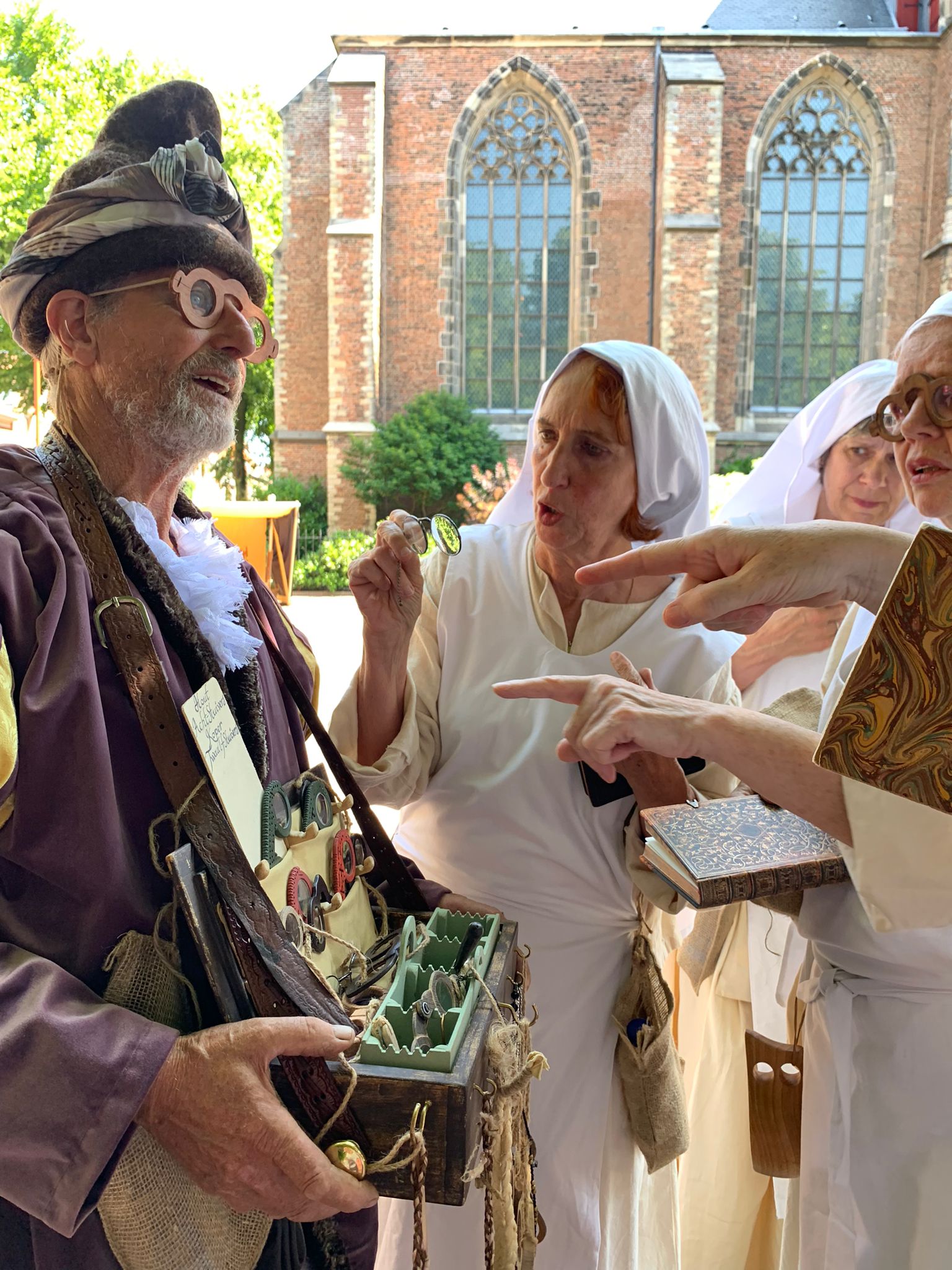 Je kunt je nog opgeven om mee te doen, als figurant, maar ook als chauffeur of bijrijder om alle rekwisieten naar de toneellocaties te brengen. Die laatste groep vrijwilligers hoeft zich niet te verkleden. “Kom gewoon helpen. Je bent dan natuurlijk wel onderdeel van het hele evenement.” Andere zaken waar nog handjes voor gezocht worden zijn zaken als de opbouw en de catering.