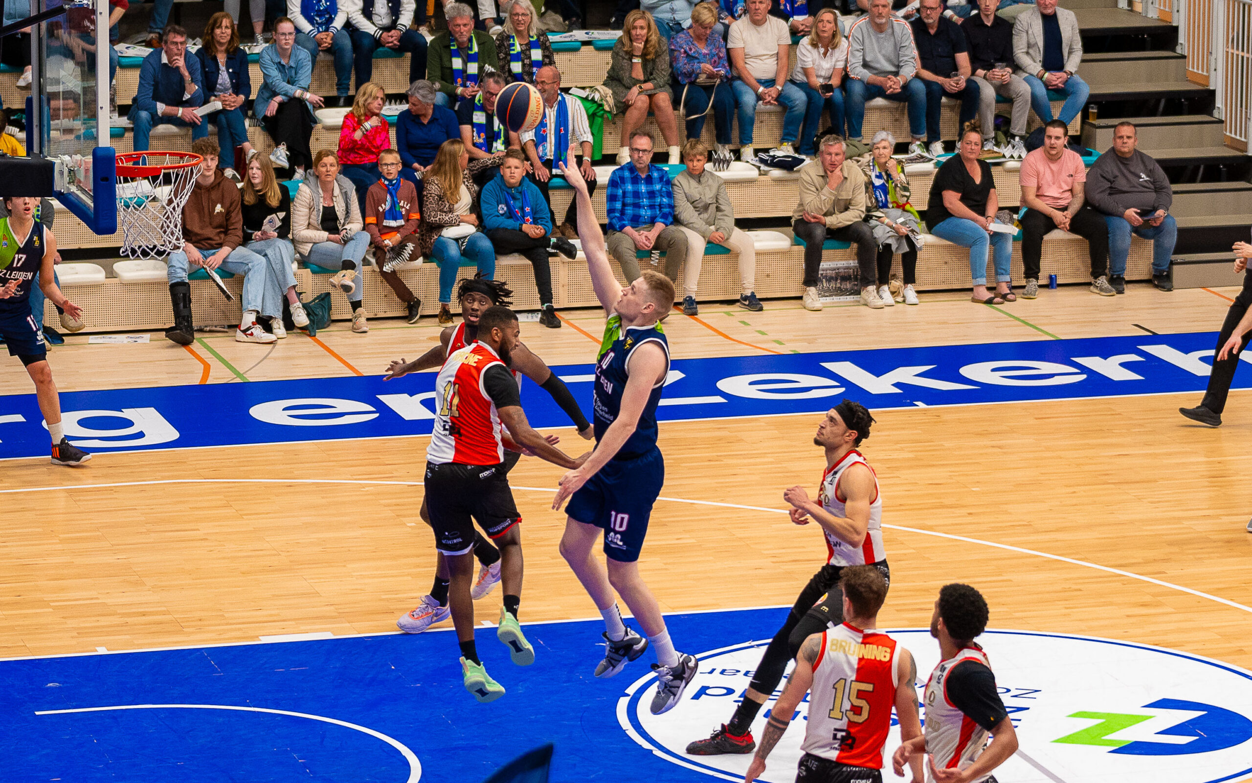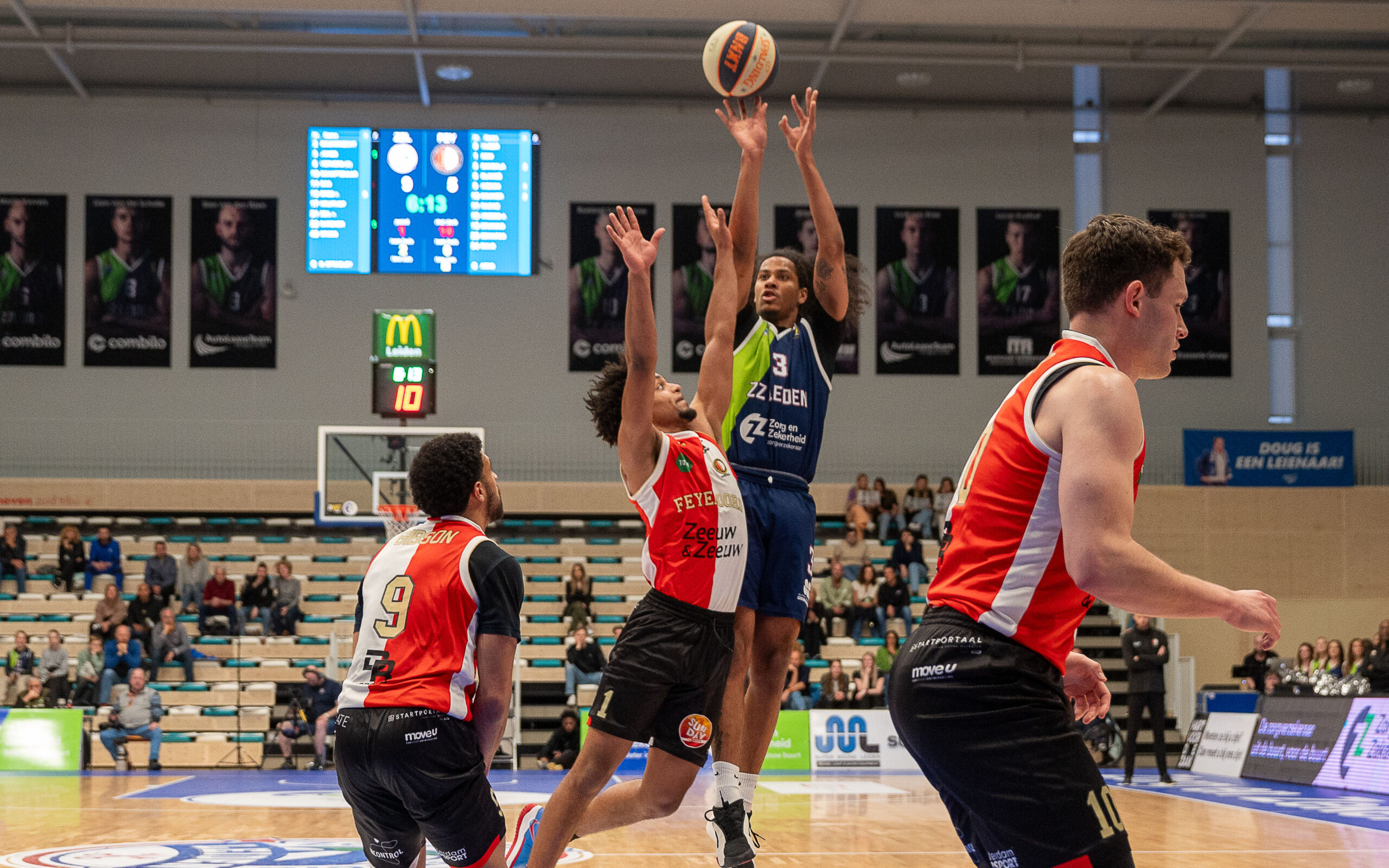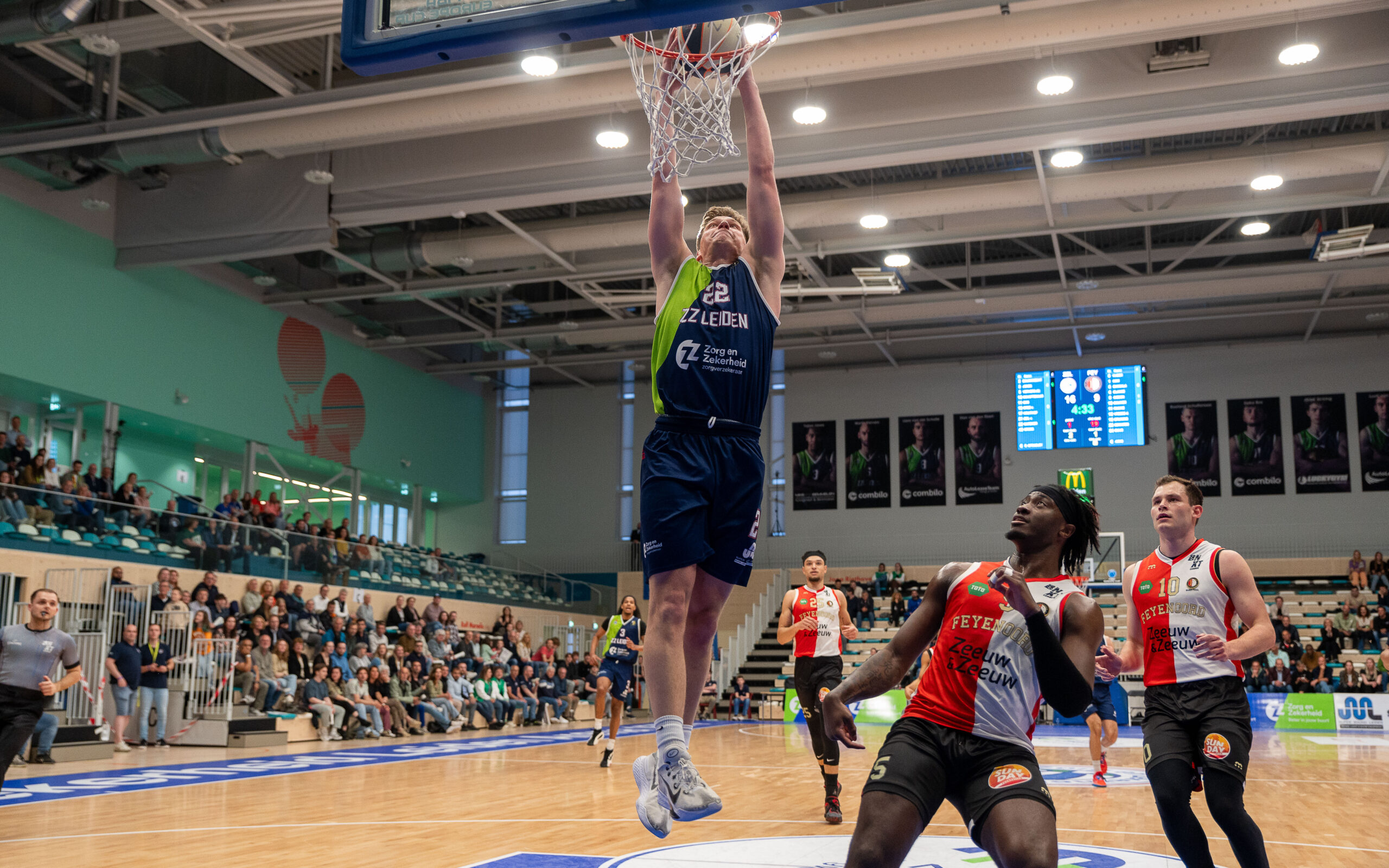 Ook na rust (51-38) kon Feyenoord niet in de wedstrijd terugkomen. Zorg en Zekerheid Leiden bleef scoren wanneer het nodig was en pakte met een 91-68 overwinning een 1-0 voorsprong in deze kwartfinale. Komende vrijdag staat de return in Rotterdam op het programma. Bij winst plaatst Zorg en Zekerheid Leiden zich voor de halve finale.