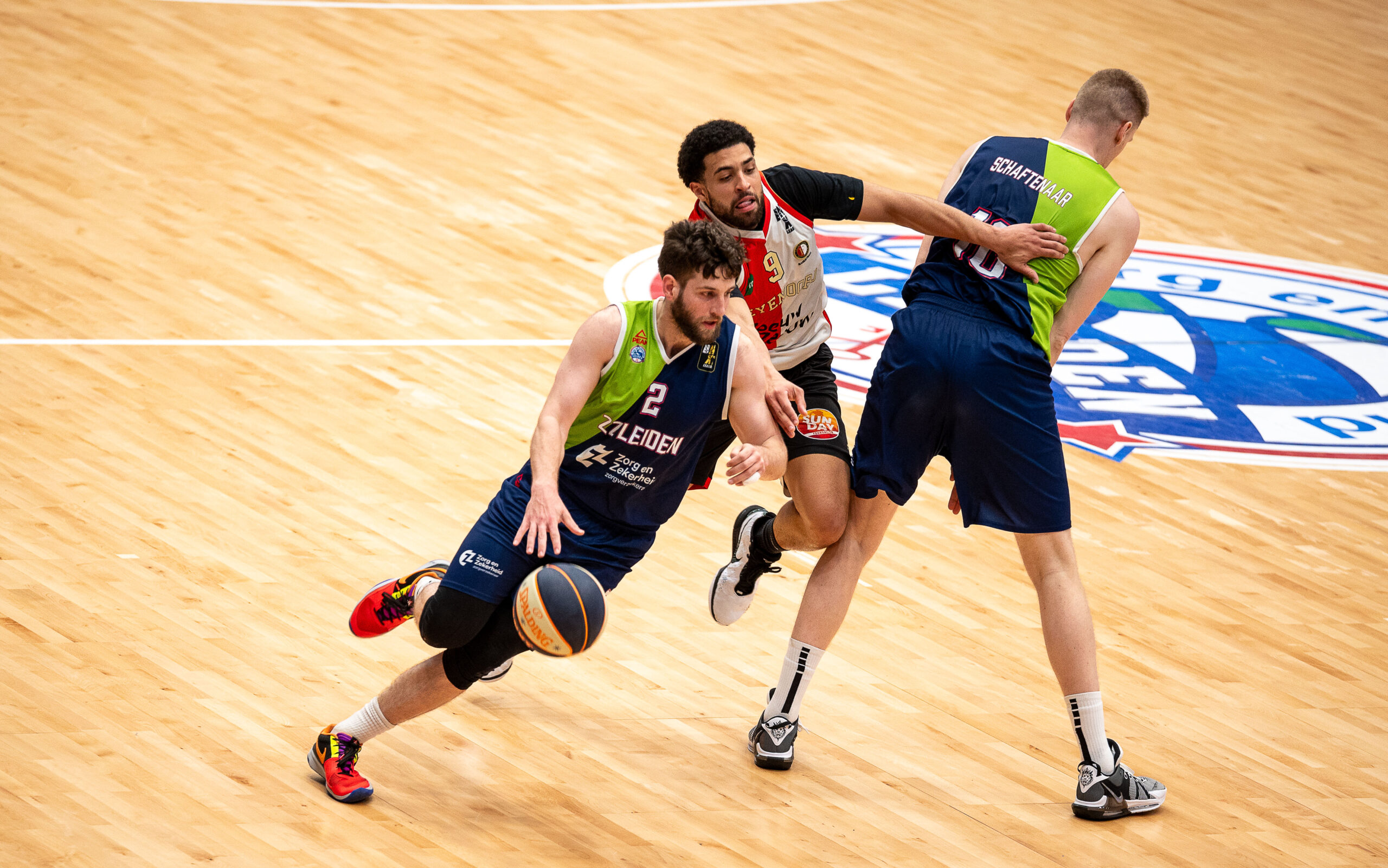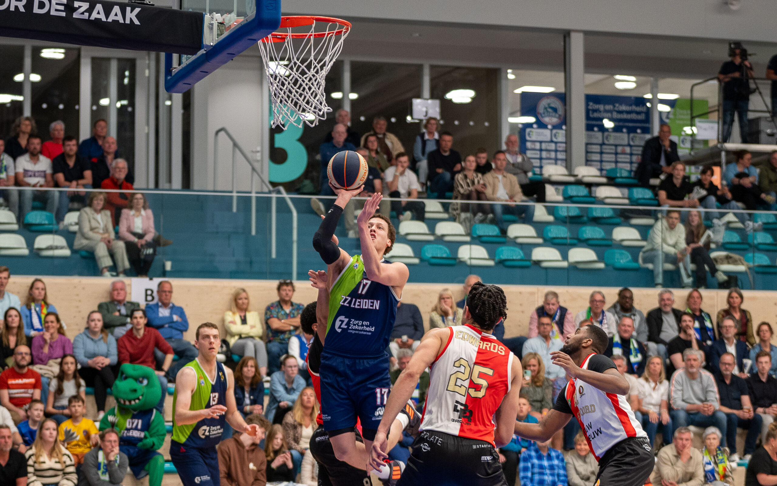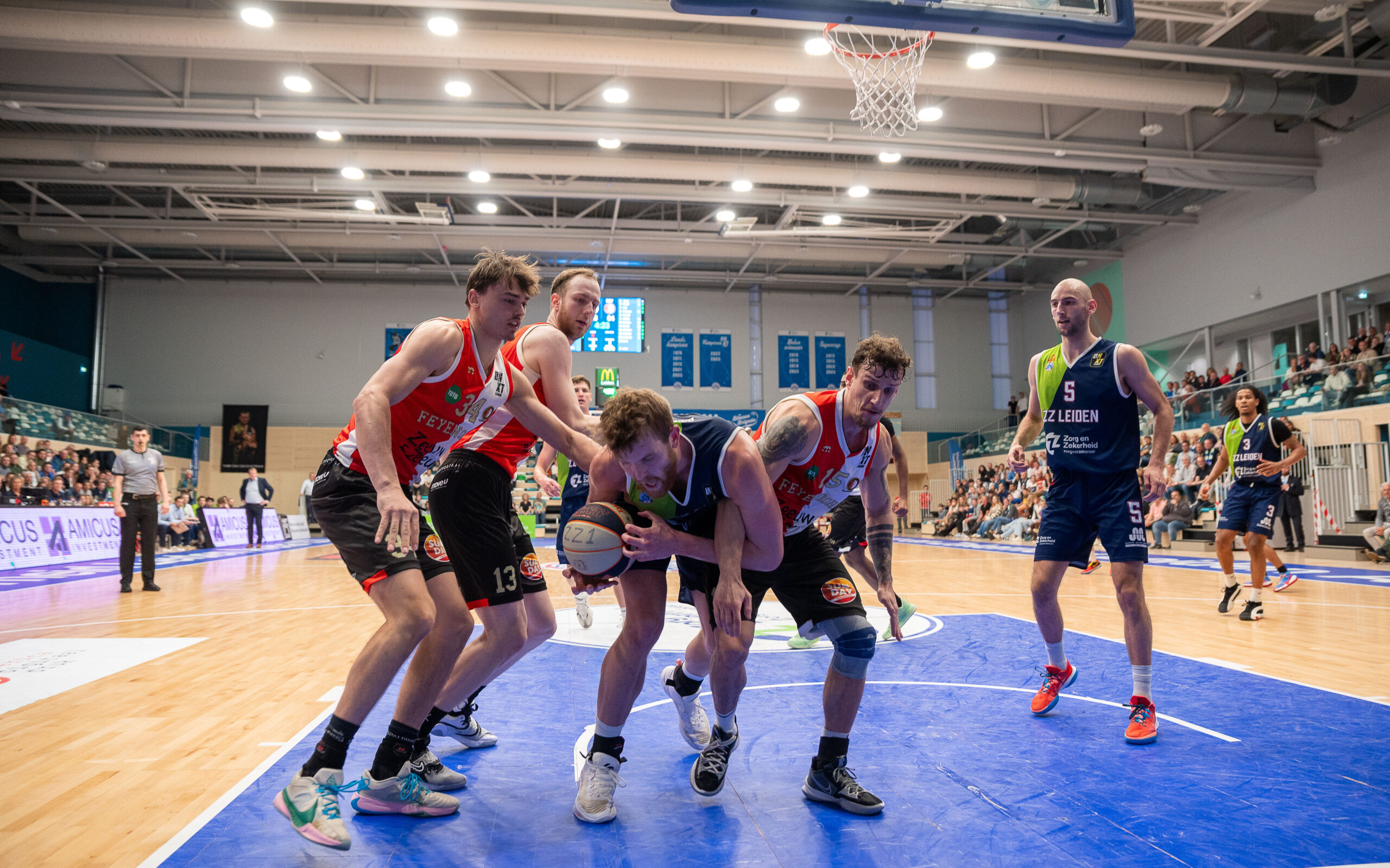 Zorg en Zekerheid Leiden Basketball is goed begonnen aan de 711 Dutch play-offs. Al in het eerste kwart zette de Leidse ploeg Zeeuw & Zeeuw Feyenoord op een ruime achterstand: 28-17.