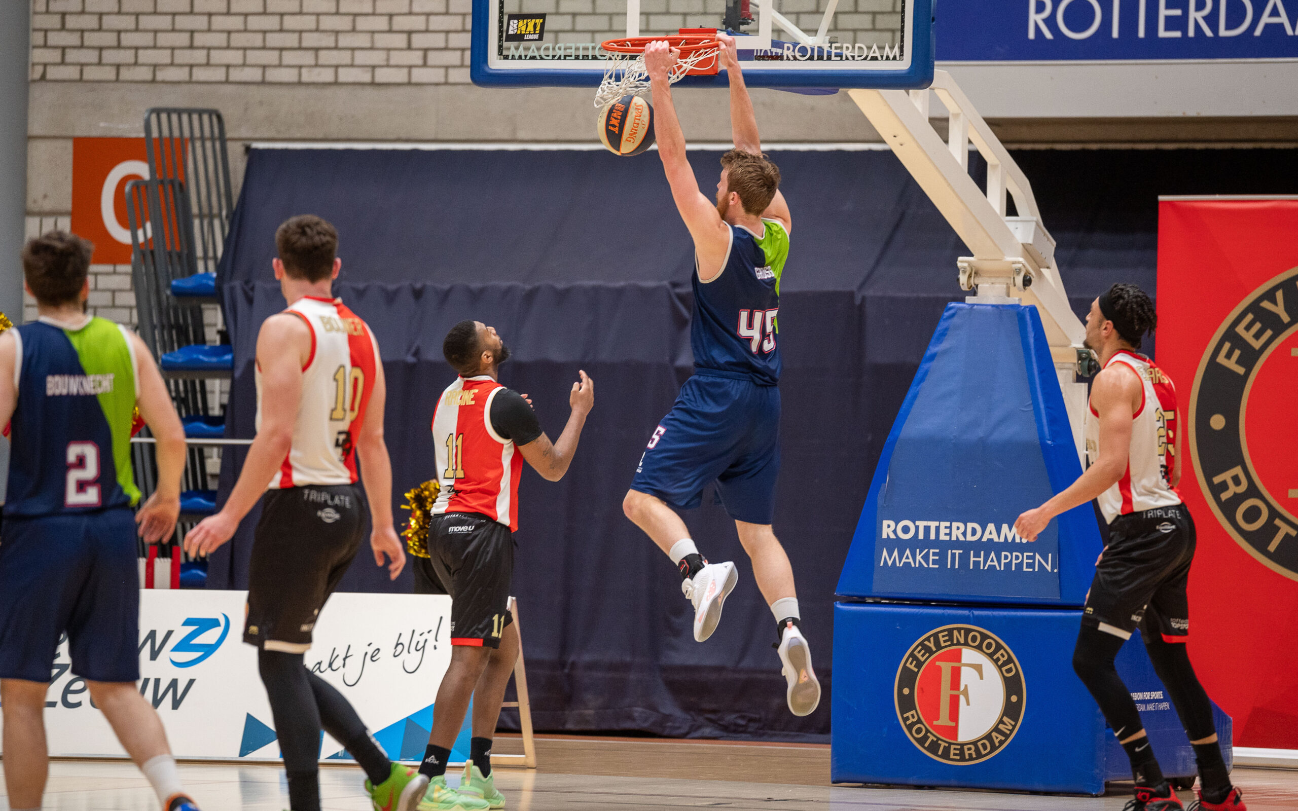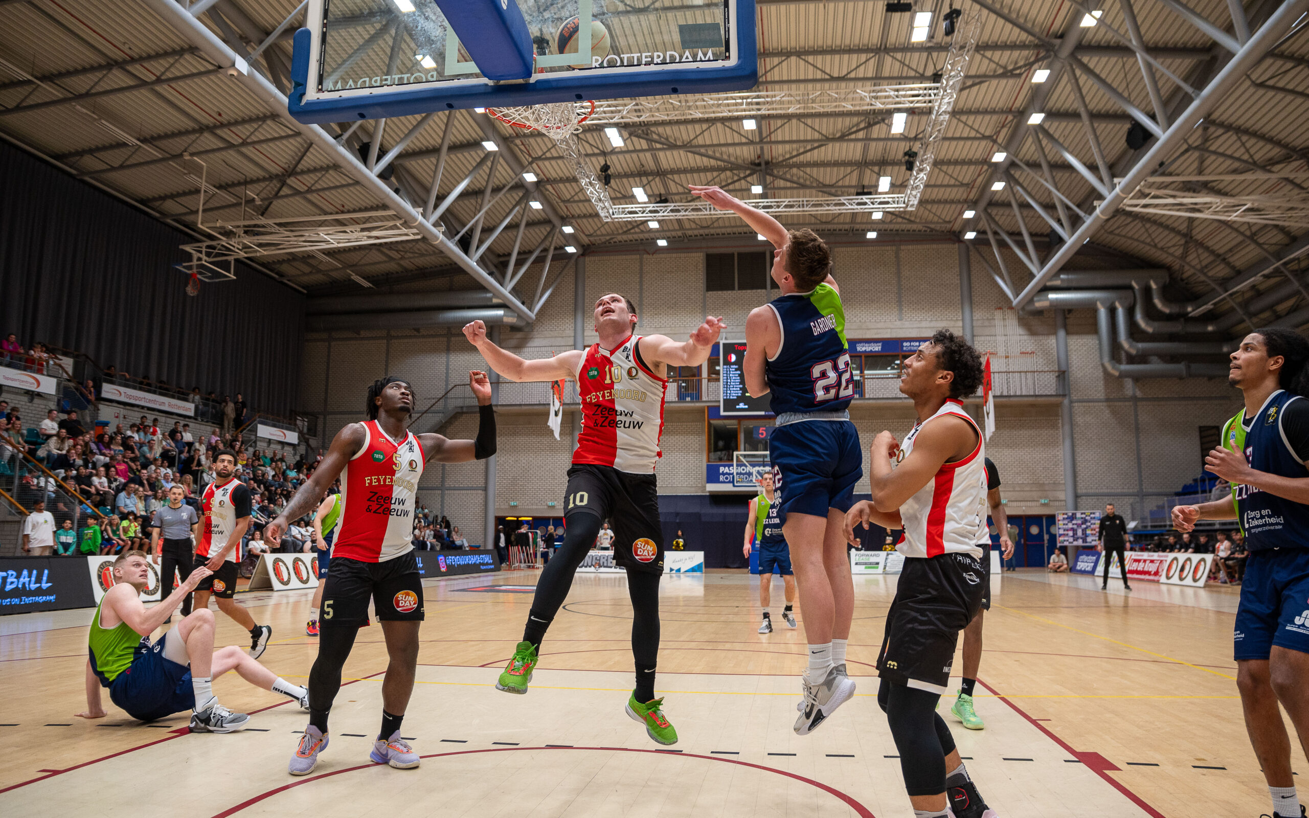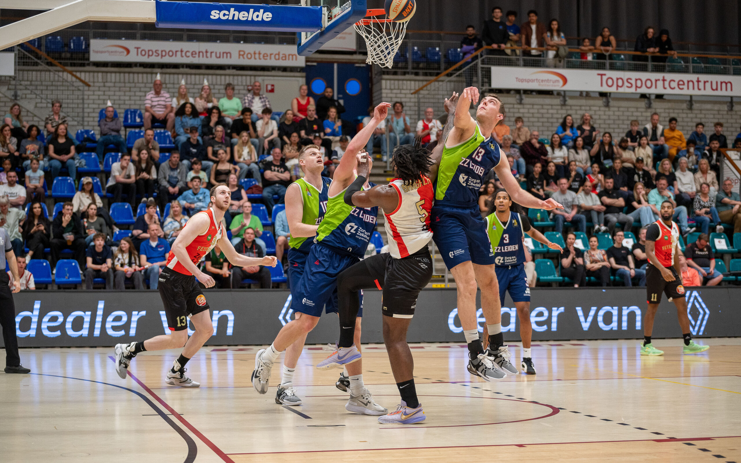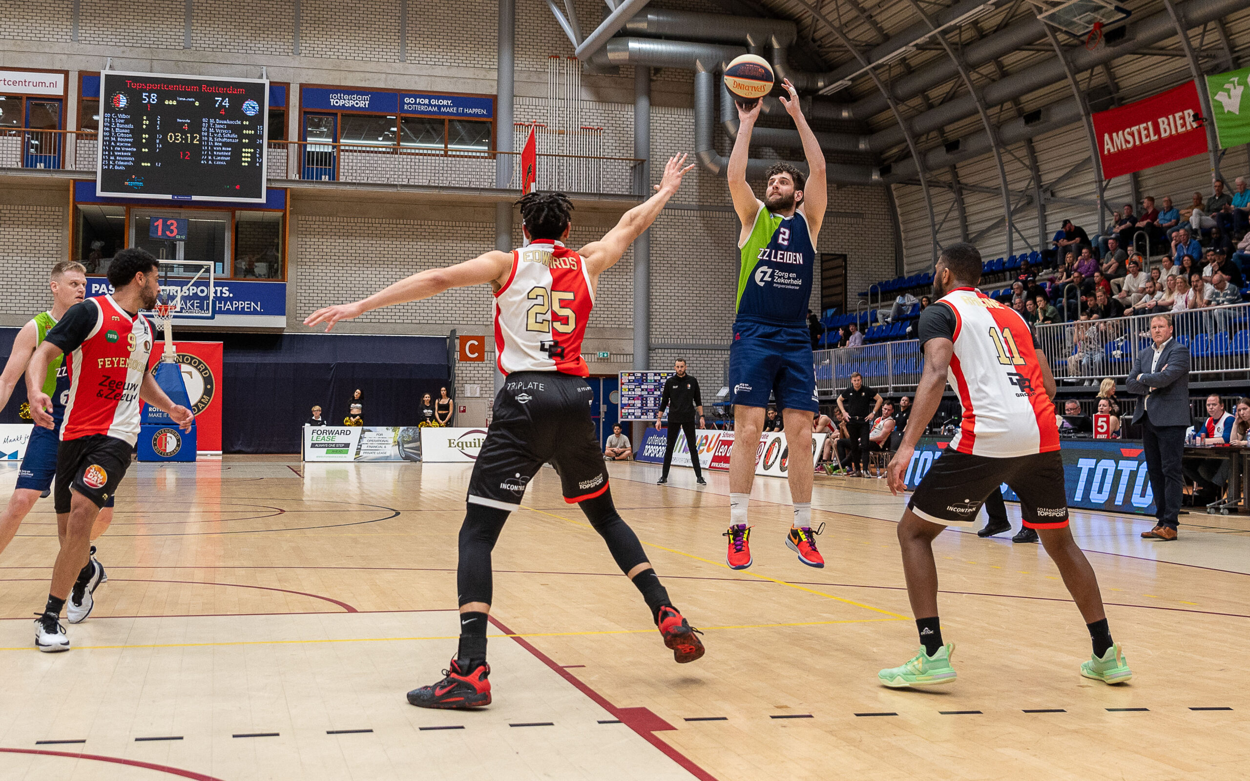 Afgelopen woensdag won Zorg en Zekerheid Leiden Basketball de eerste wedstrijd in een best of 3-reeks al van Feyenoord. De Rotterdamse ploeg moest dus winnen om er een derde wedsstrijd uit te slepen. Halverwege de wedstrijd stond het nog 36-36, maar met een sterk derde kwart legde ZZ Leiden de basis voor de overwinning en dus plaatsing voor de halve finale.