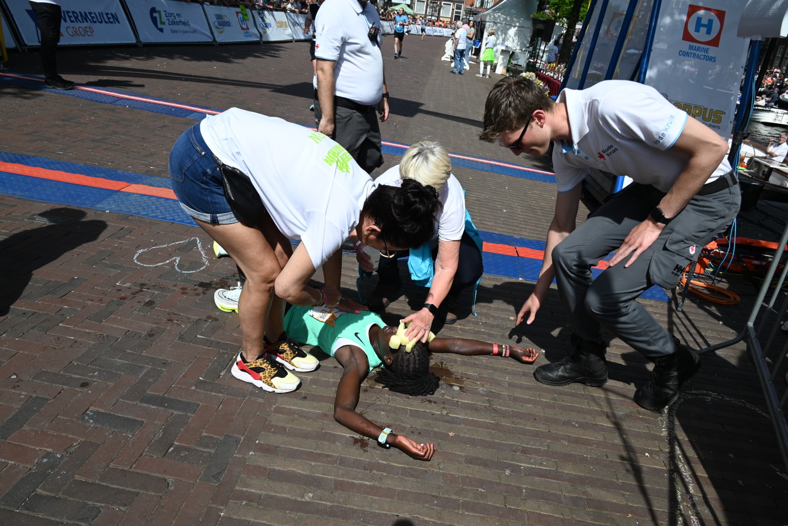 “We hadden extra ondersteuning bij de EHBO-posten geregeld en de supporters langs het parcours opgeroepen om met tuinslangen langs het parcours te staan”, gaat Scheffer verder. “We hebben heel veel gedaan. Eigenlijk alles wat in ons vermogen lag.” Maar toch ging het al snel goed mis. Het aantal onwelwordingen is nog steeds onduidelijk, maar volgens Veiligheidsregio Hollands Midden gaat het om een ‘hoog aantal’ en ‘veel lopers’. Ambulances moesten uit de hele omgeving worden opgeroepen en uiteindelijk moesten 25 mensen mee naar het ziekenhuis. Vooral de lopers van de halve marathon, die om 11.00 uur was gestart, kregen last van de hitte.