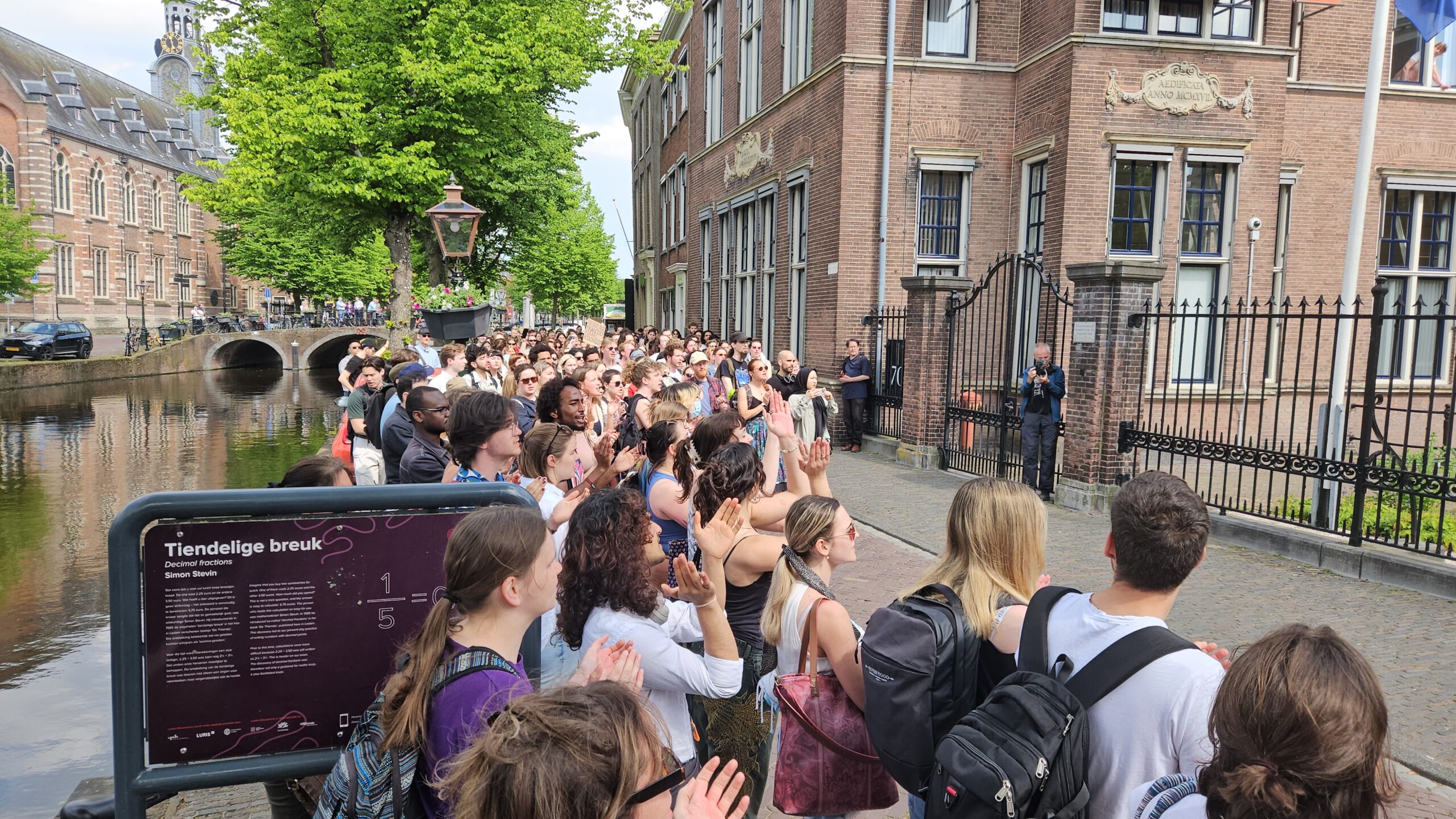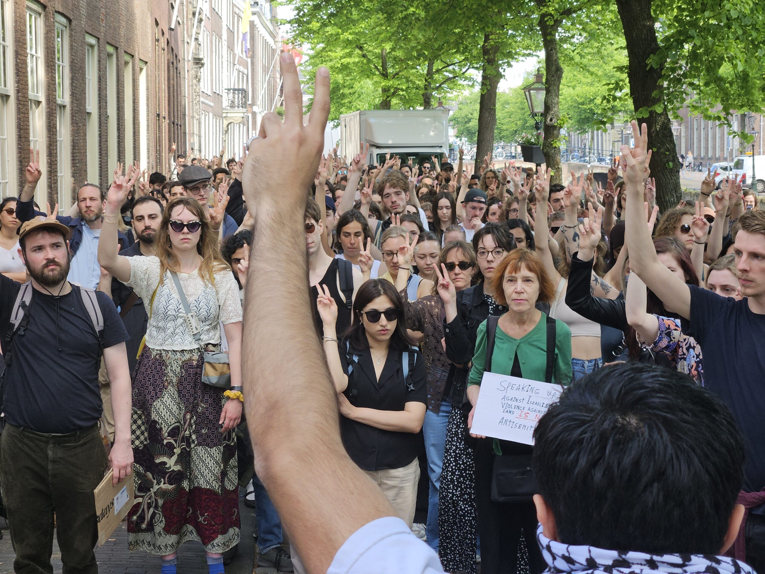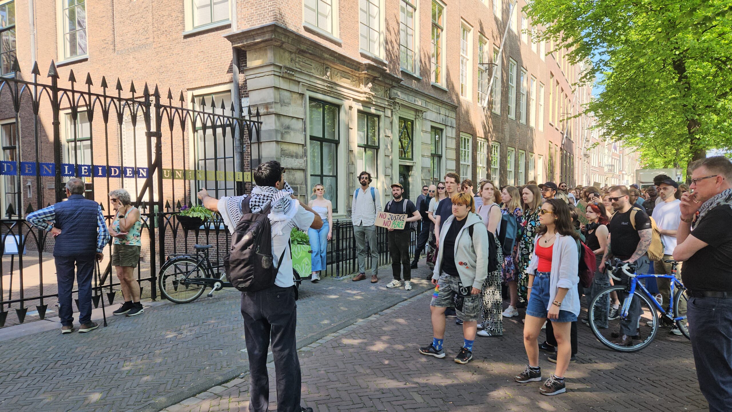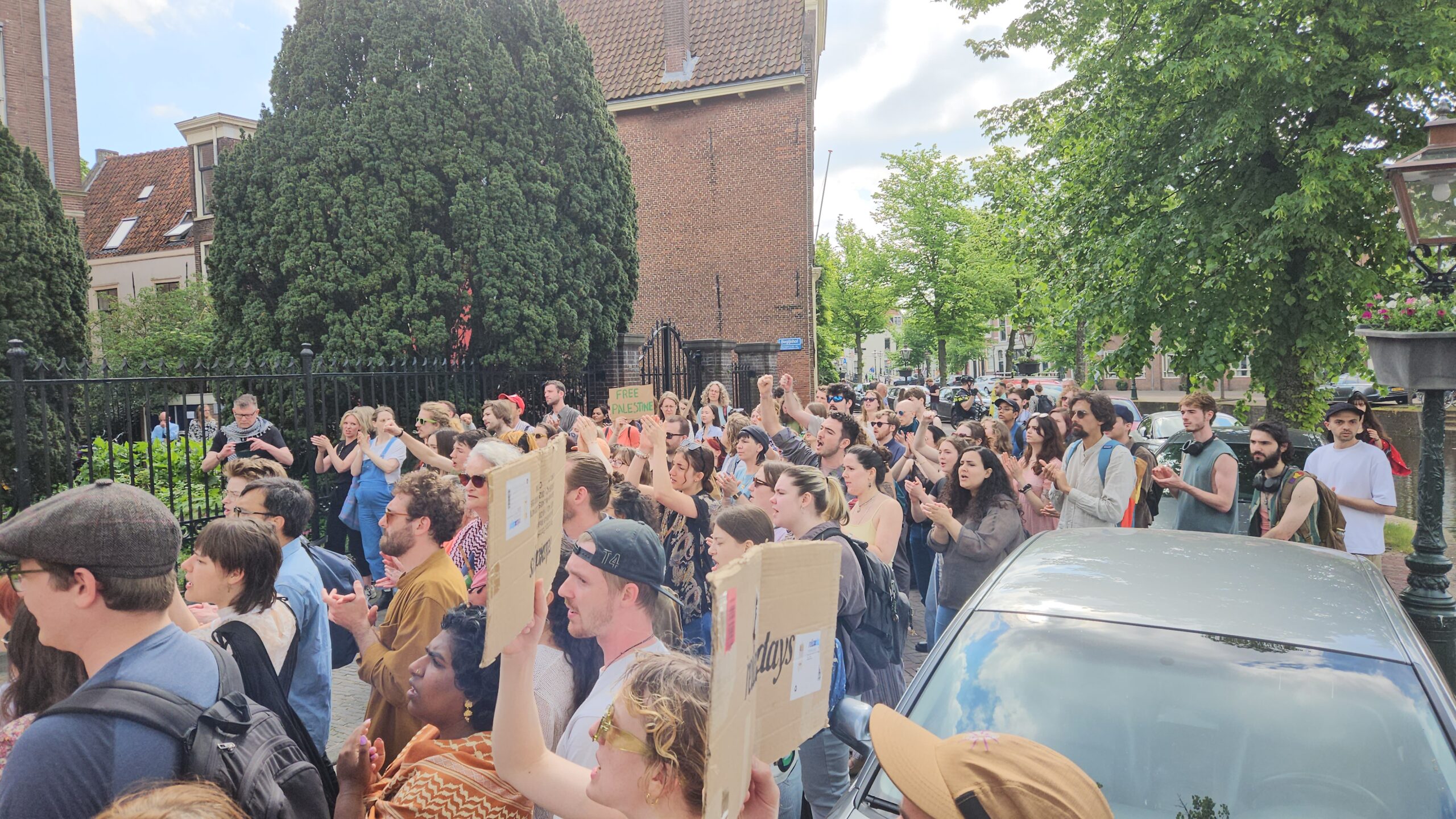 Als onderdeel van de nationale ‘walk-out’ die maandag op verschillende plekken in het land werd georganiseerd, liepen zo’n 150 studenten, docenten en andere medewerkers van de Universiteit Leiden gezamenlijk het Lipsius-gebouw uit om een protestmars te houden. De demonstranten vinden dat de universiteit, die ‘medeplichtig is aan de genocide in Gaza’, haar banden met Israël moet verbreken.