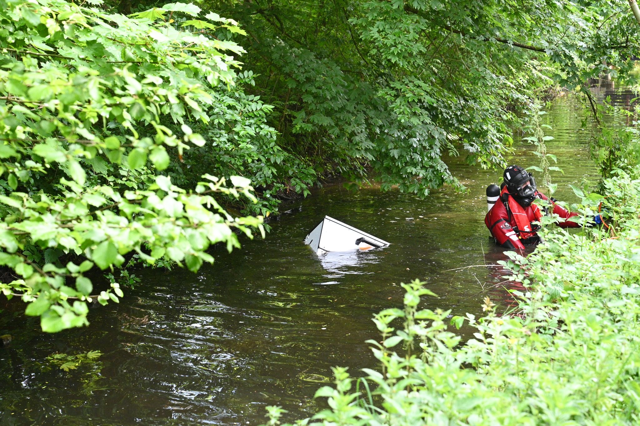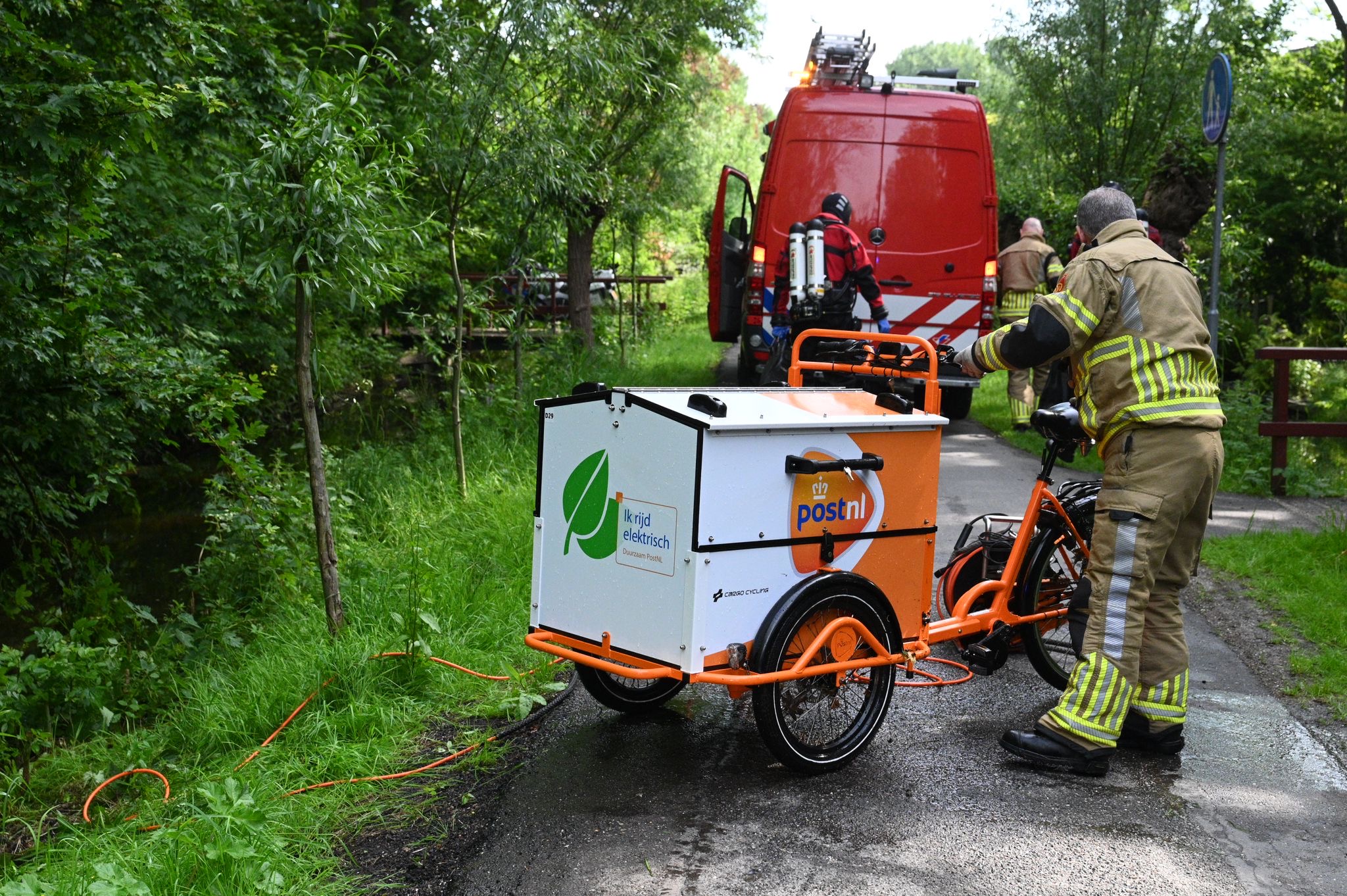 De transportfiets is door de brandweer uit de sloot gehaald. Waardoor de postbezorger te water raakte is niet bekend.