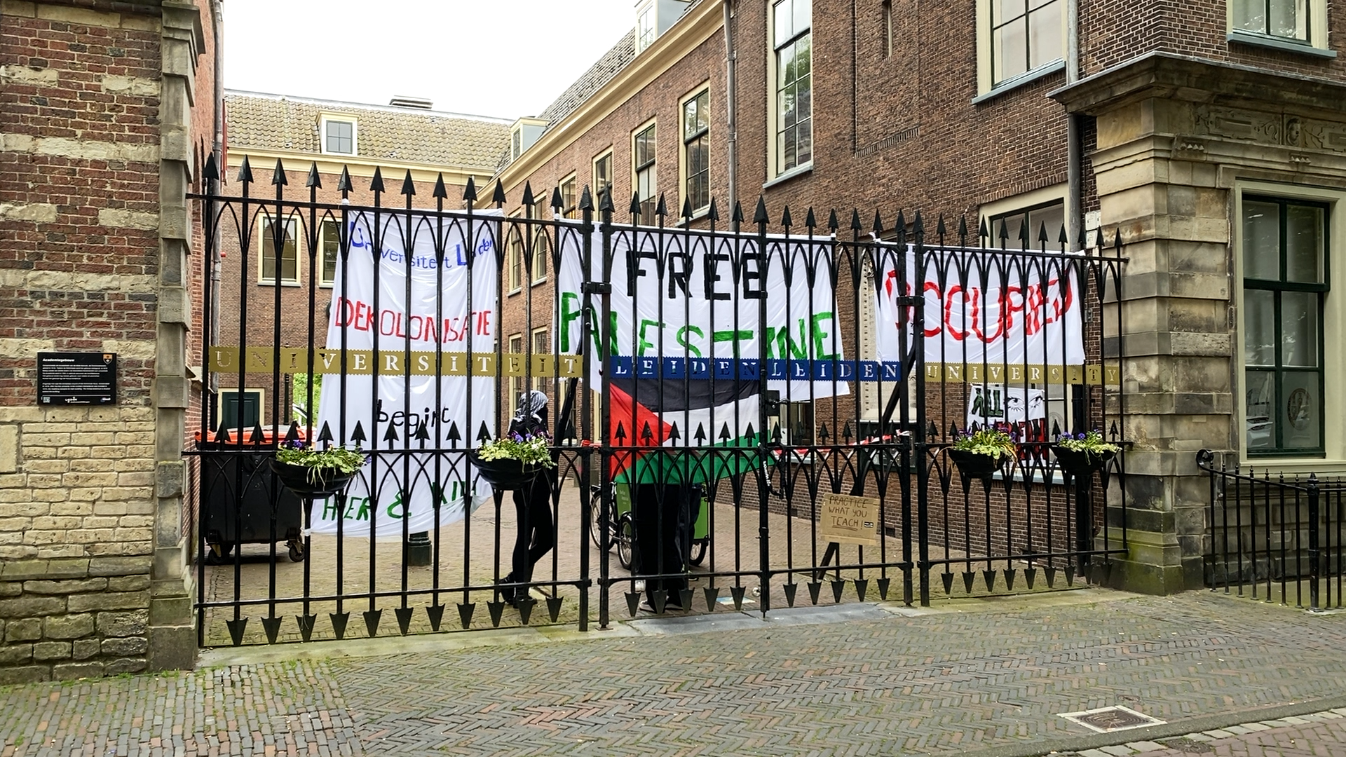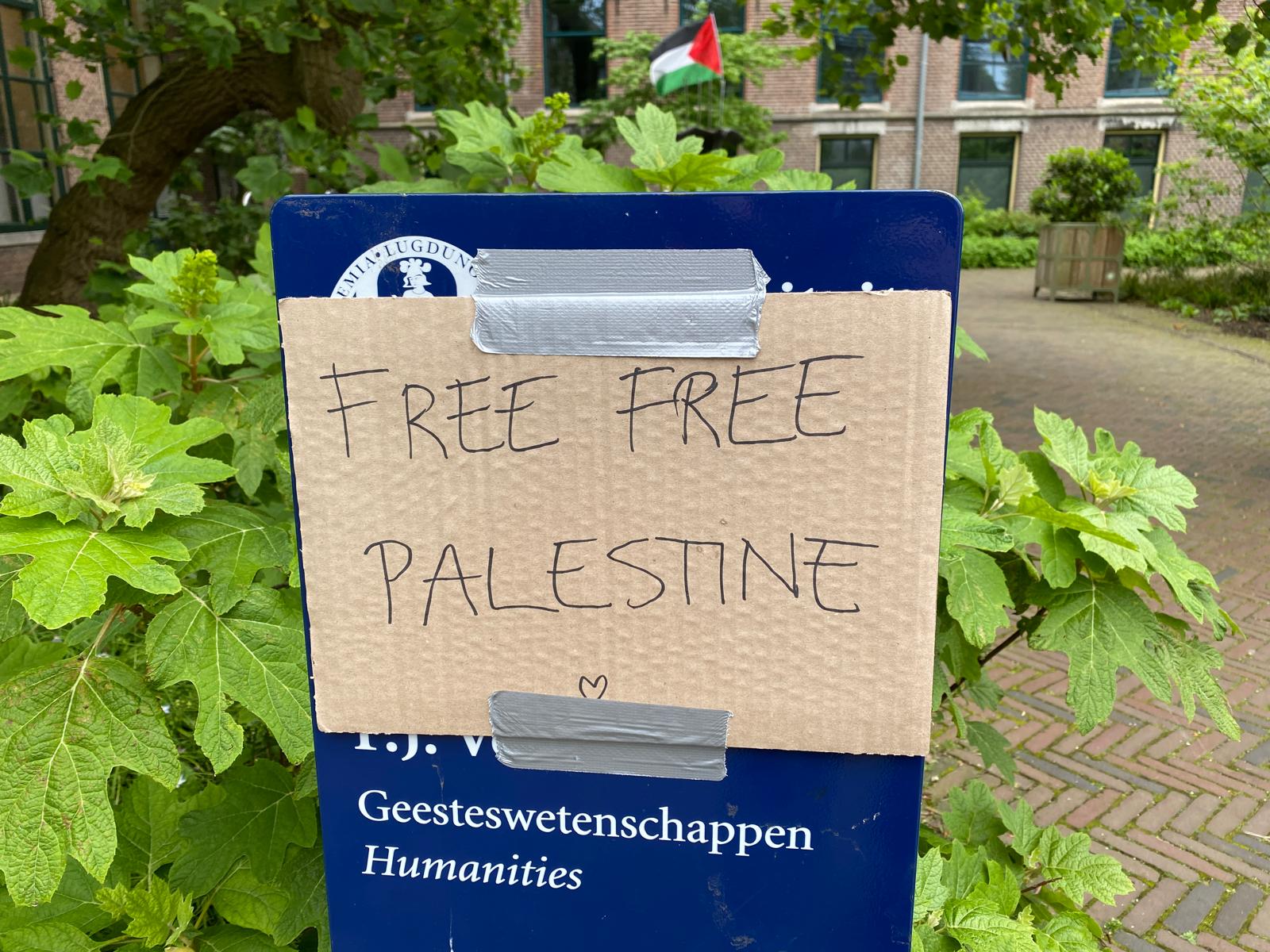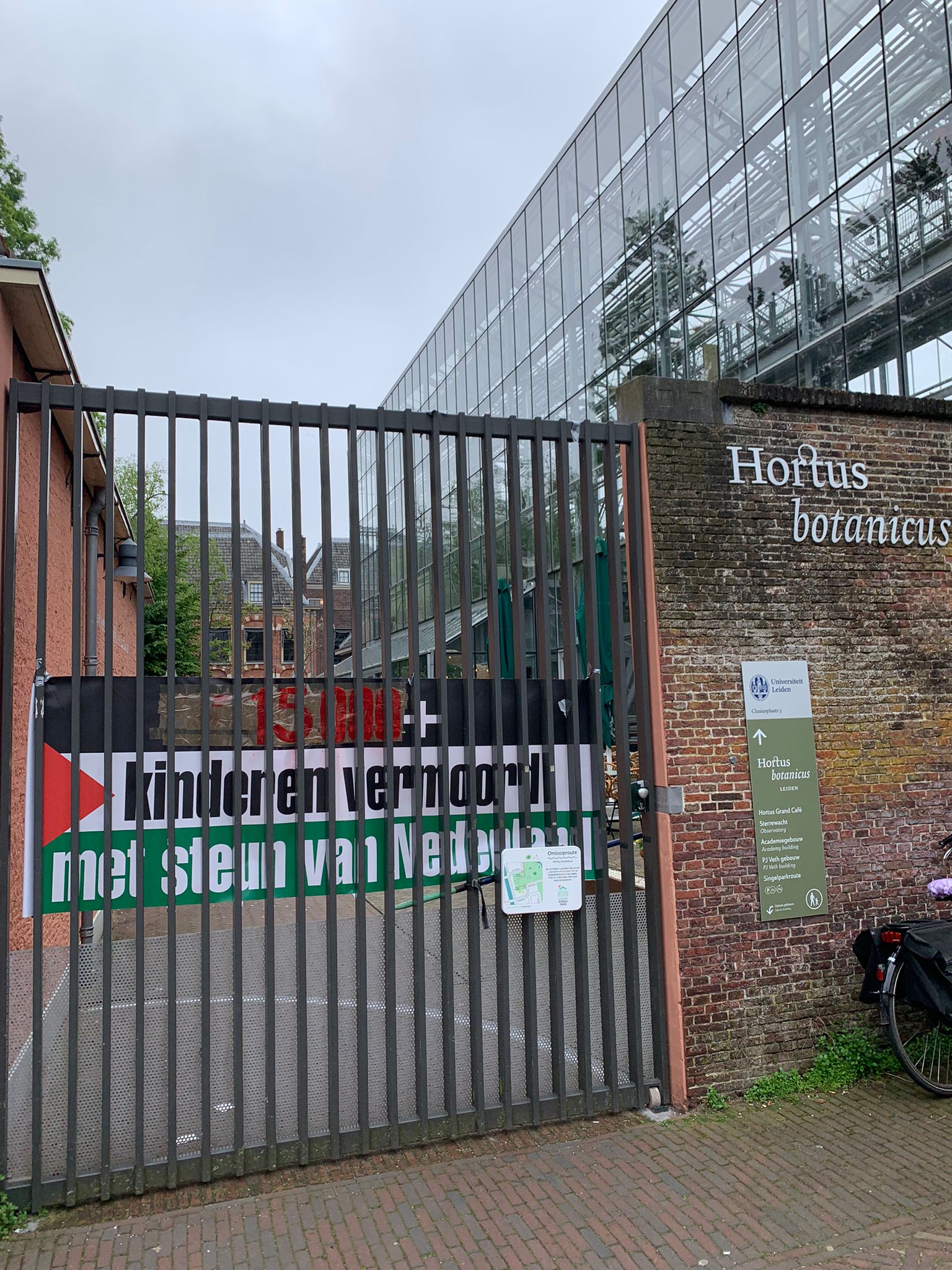 Via Whatsapp werd vanmorgen gedeeld dat ook het PJ Vethgebouw en het terrein naast de Hortus en het Academiegebouw bezet zouden zijn. Daar is vooralsnog geen sprake van. “We zullen niet vertrekken voordat de universiteit alle banden met Israëlische organisaties heeft verbroken”, aldus de actievoerders die anderen oproepen zich bij de actie aan te sluiten: “Toon je solidariteit en kom zo snel mogelijk naar de Hortus”, wordt rondgestuurd.