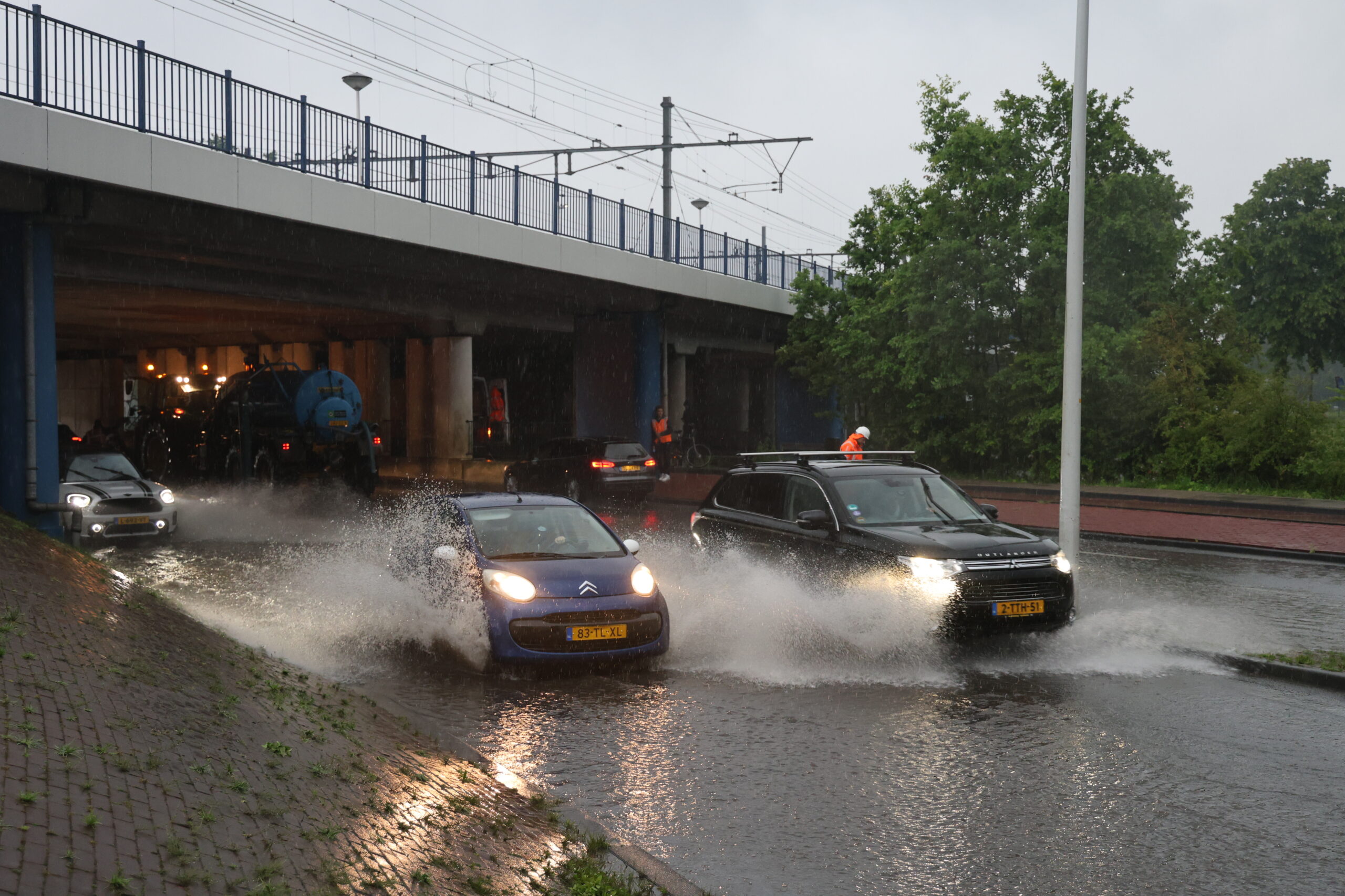 Op verschillende plekken in de regio is dinsdag aan het einde van de middag en in de avond flinke wateroverlast ontstaan door de hevige regenbuien die boven onze regio losbarstten. Door de wolkbreuk liep onder andere de weg onder het spoorviaduct aan de Oegstgeesterweg in Leiden onder water. Ook op de Warmonderweg in Oegstgeest viel het water sneller dan dat het kon worden afgevoerd.