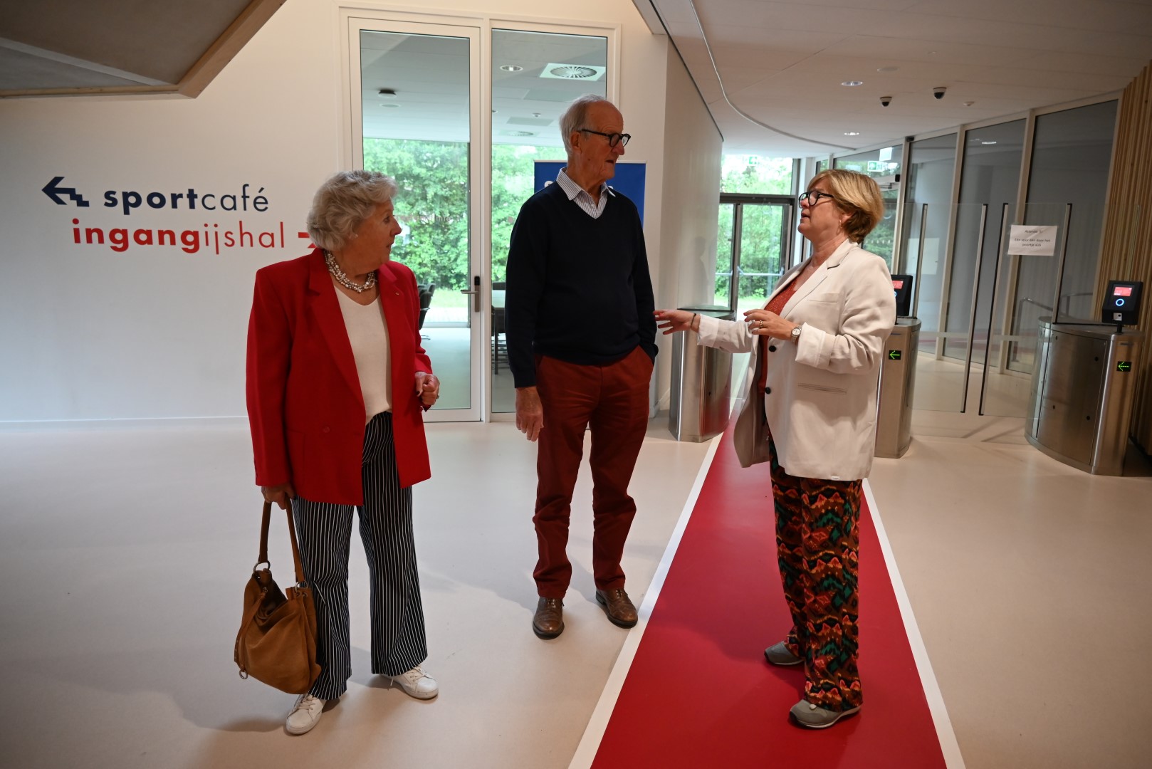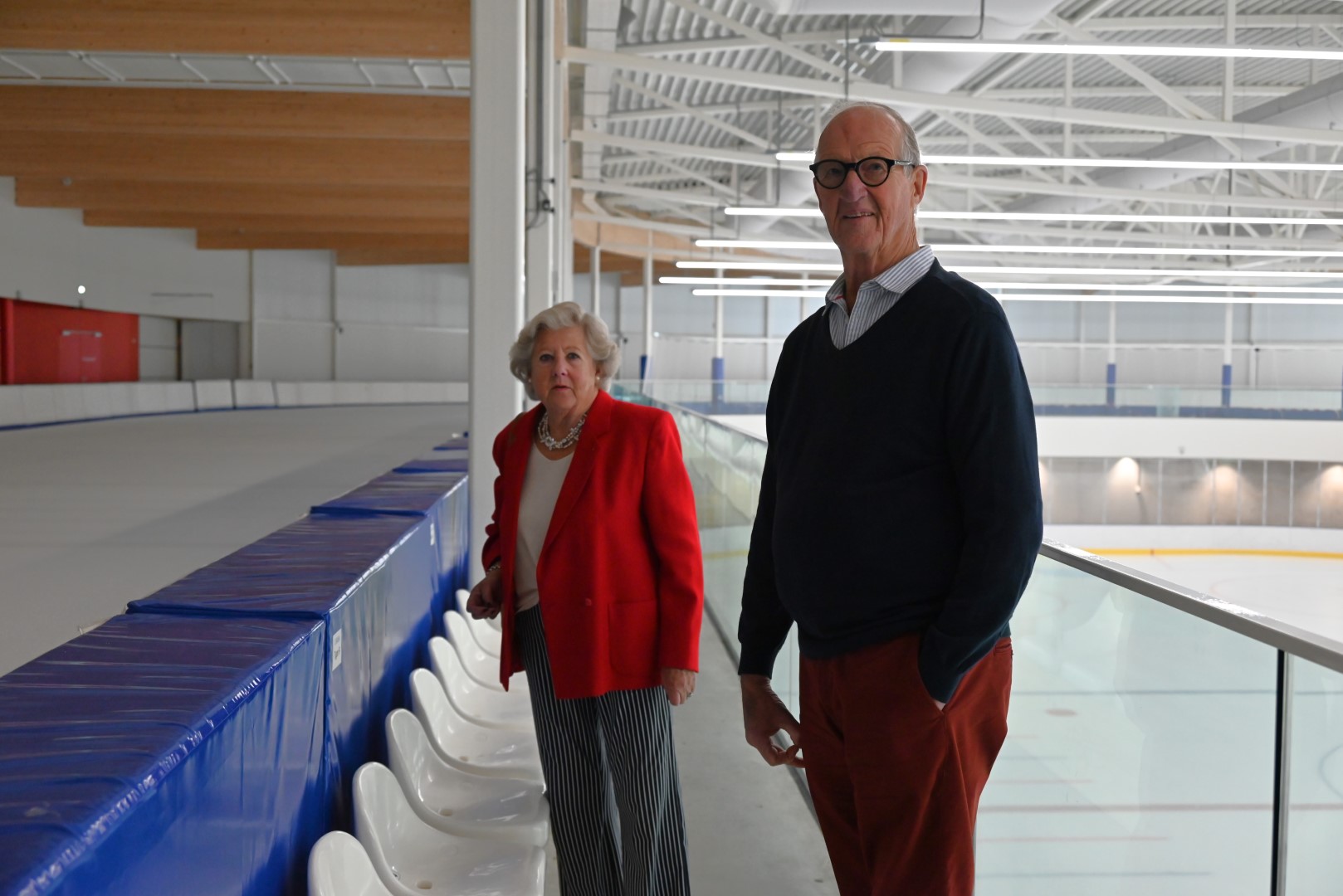 Samen met zijn vrouw keek Menken zijn ogen uit bij de rondleiding die het echtpaar kreeg van Trudy Kwik die in oktober vorig jaar de feestelijke opening verzorgde van drie nieuwe sportaccomodaties in Leiden, waaronder IJshal de Vliet. Ze kent het pand goed.