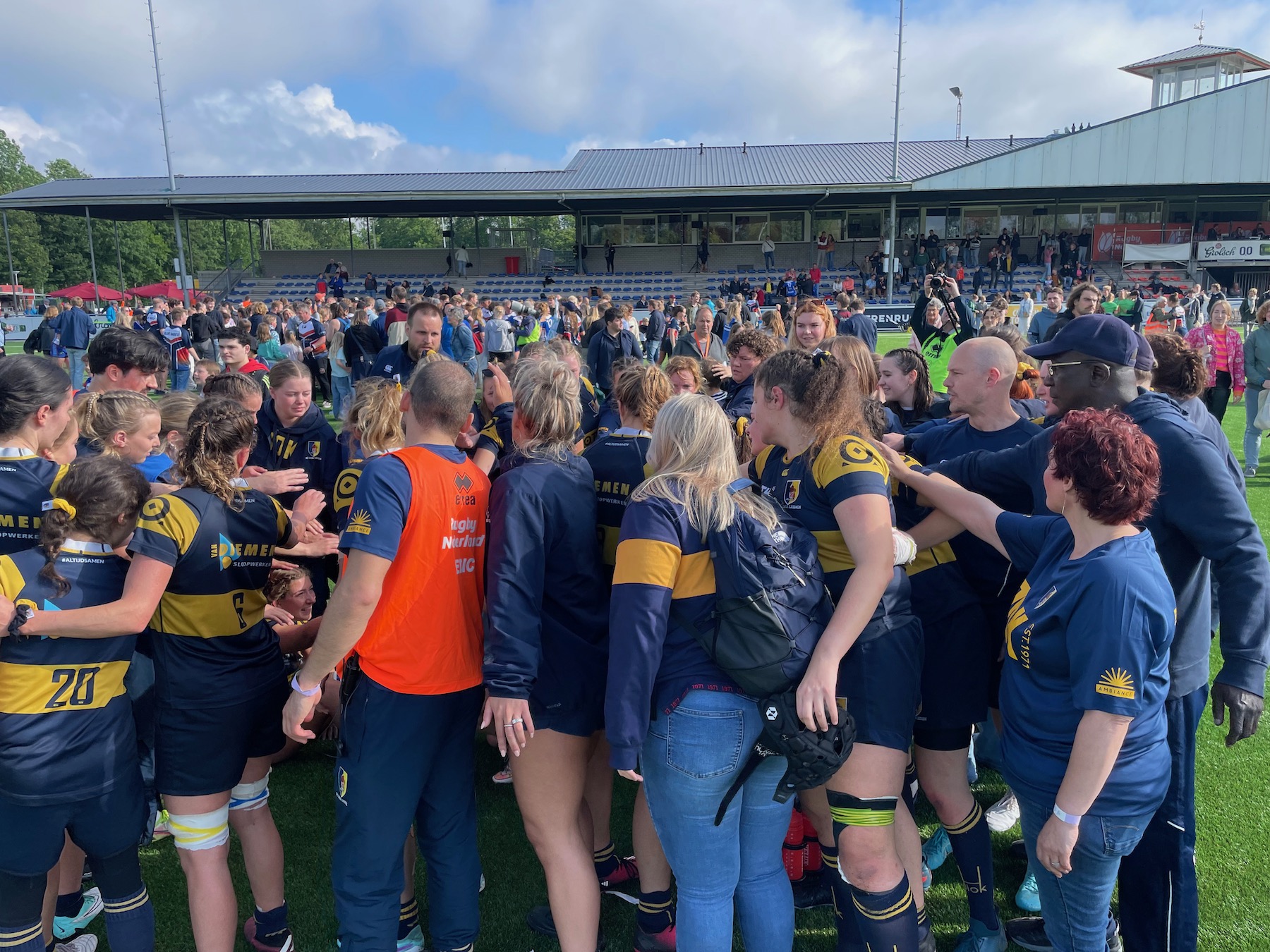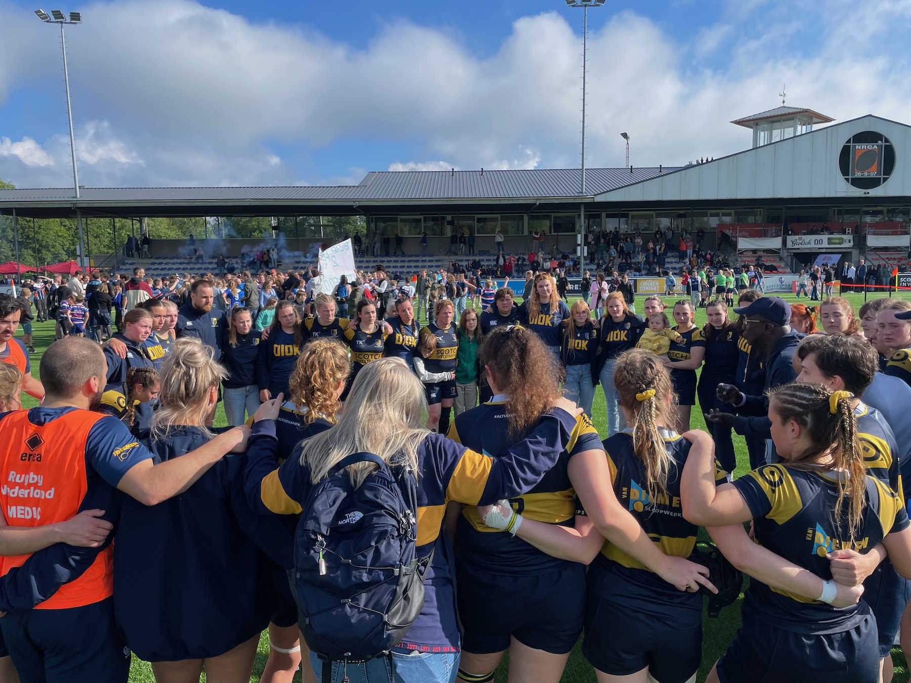 Mieke Arkesteijn gaf toe een beetje teleurgesteld te zijn. “De eerste helft was heel close, toen hebben we ook even voor gestaan, maar uiteindelijk scoorden zij nog een paar try’s. Dus de uitslag is wat vertekend. Maar we zijn twee jaar geleden pas weer gepromoveerd naar de ereklasse, we hebben nieuwe trainer, nieuwe staf en veel nieuwe meiden vanuit de jeugd. Het is was het is. De Blue Babes hebben vandaag terecht gewonnen en wij zijn heel verdiend tweede geworden.”