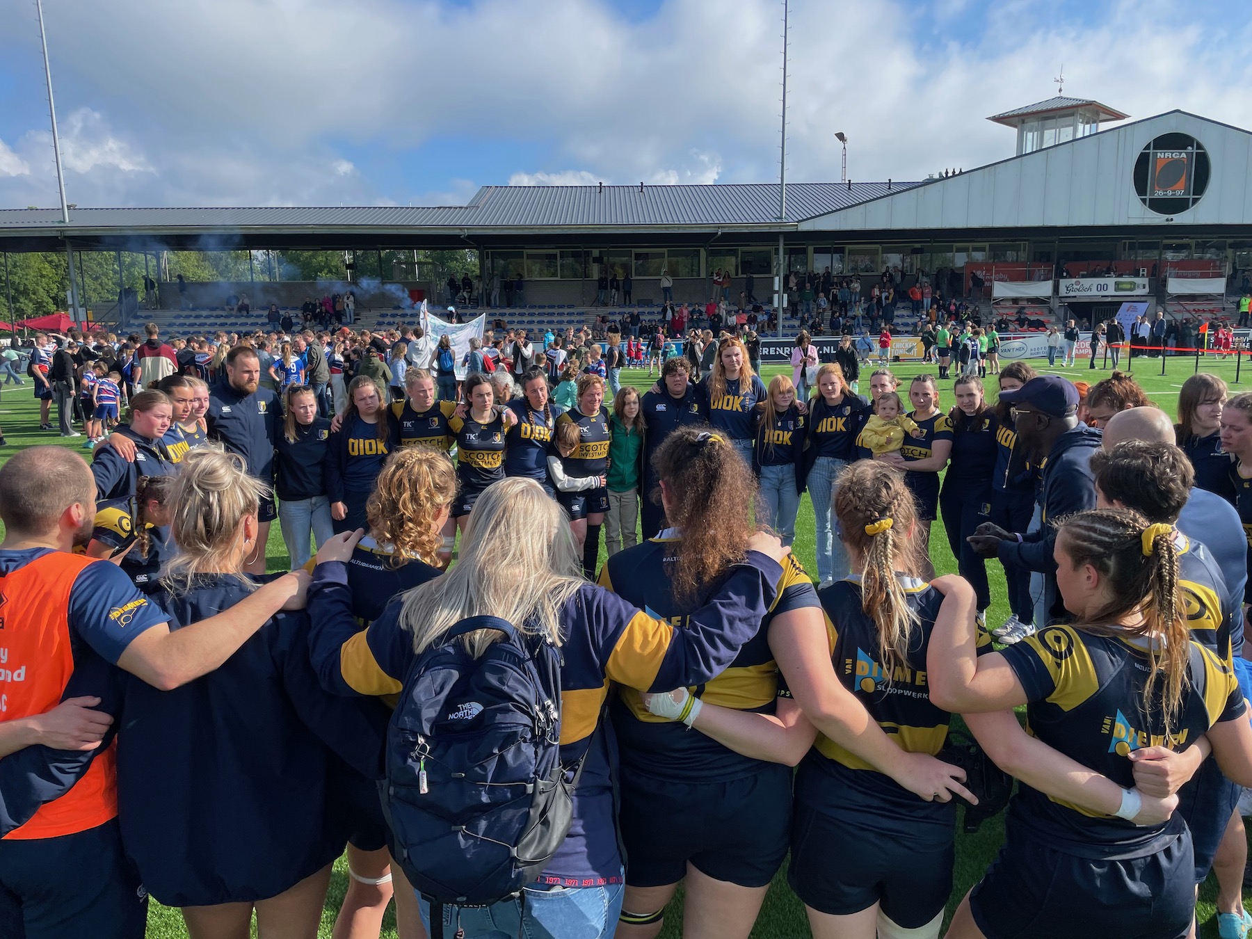 Drieëntwintig jaar geleden lukte het een vrouwenteam van DIOK voor het laatst. Om in de ereklasse de hoogste prijs te winnen. Een foto aan de wand op de club getuigt van het succes. En leden van dat succesteam komen nog steeds graag kijken en aanmoedigen. “Ze kregen wel kansen, maar ze werden niet benut”, zei een van hen. “Toen die ene try werd afgekeurd, wat de gelijkmaker had kunnen zijn, ging de spirit er een beetje uit”, zei de ander.