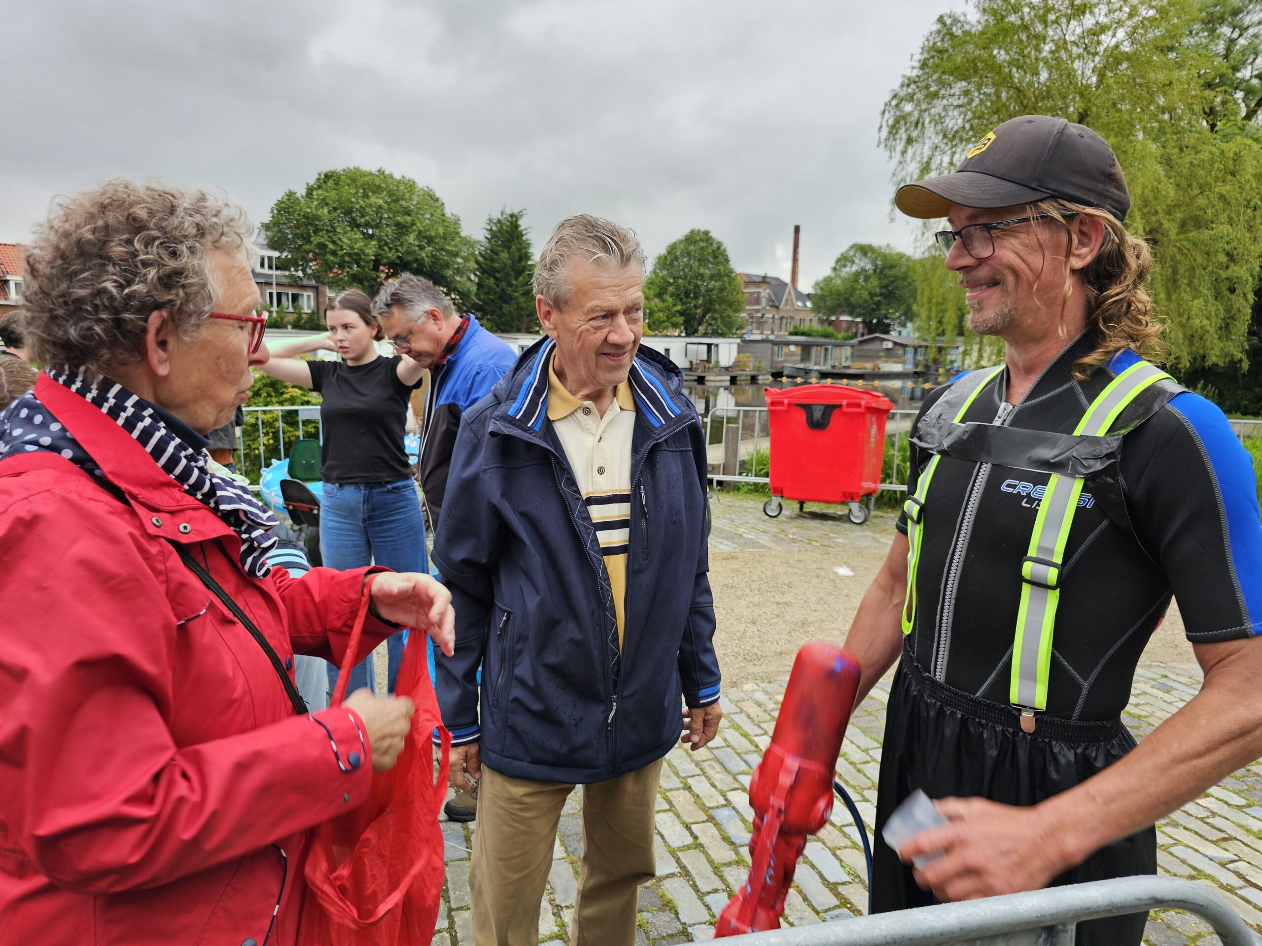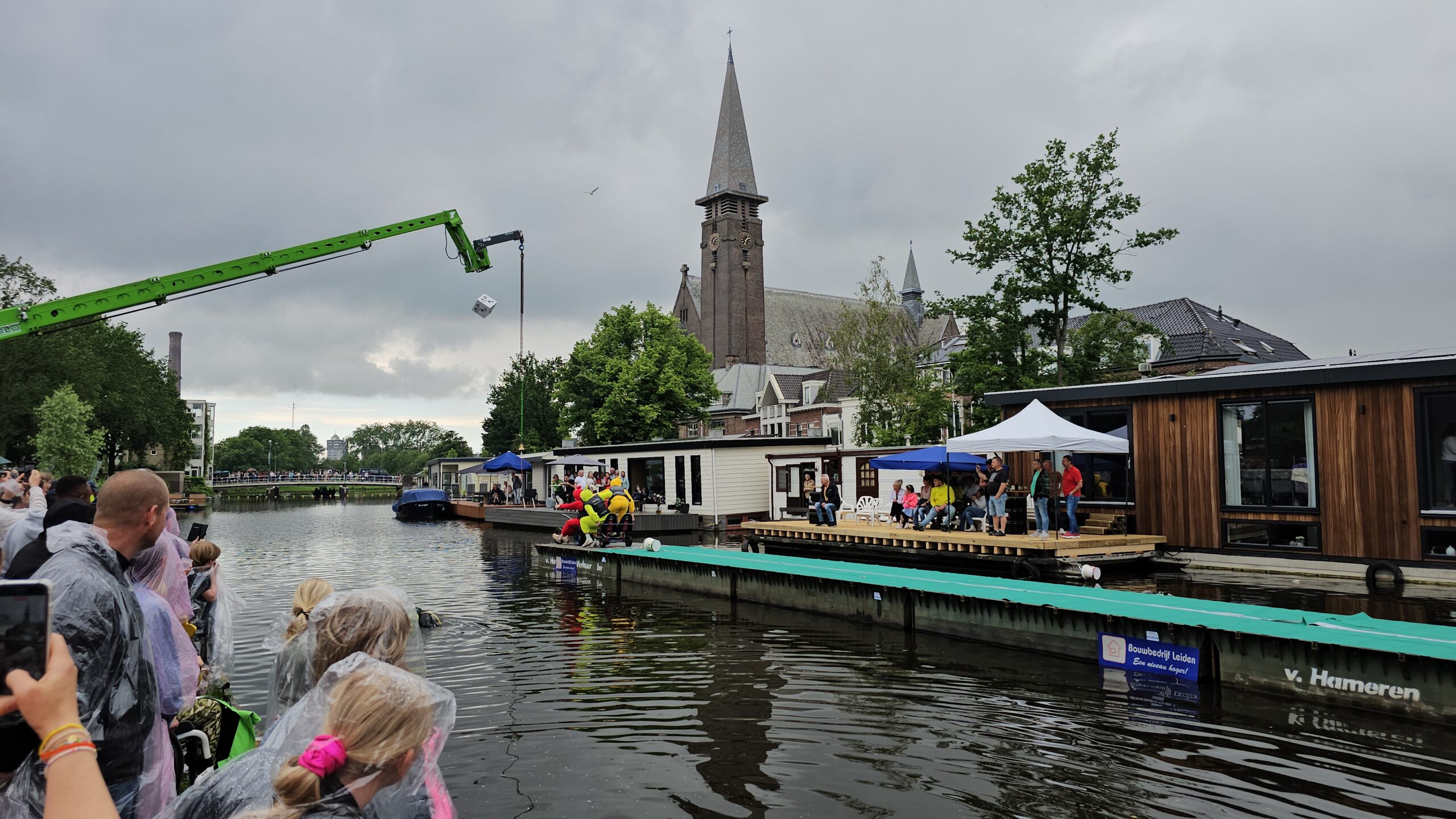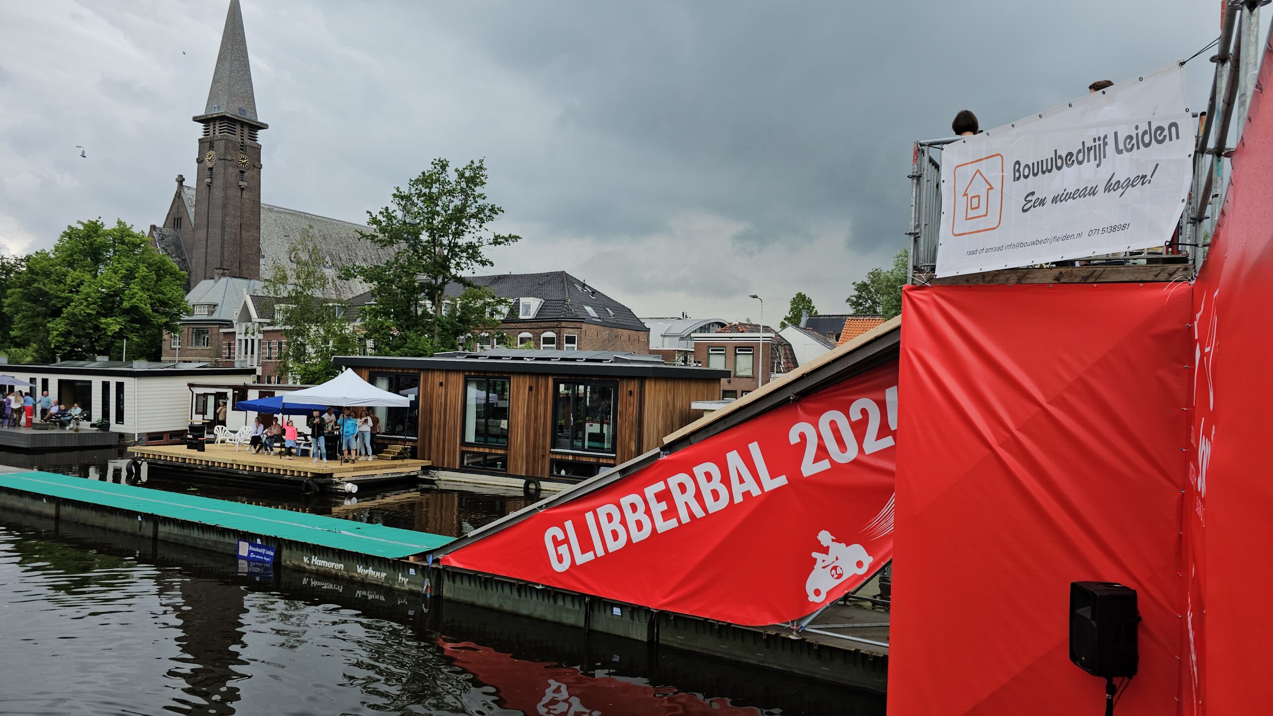 Even verderop maakt ook de Leidse wethouder Fleur Spijker zich klaar. Zij verricht samen met de voorzitters van LVVS Augustinus en de Plaatselijke Kamer van Verenigingen de opening. Met z’n drieën gaan ze als eerste naar beneden om het Glibberbal af te trappen. “Het is een heel bijzonder evenement. Het is in 2014 en 2015 al eerder gehouden, echt een evenement voor heel Leiden”, zegt Spijker. “Het is voor het hele gezin, er doen ook heel veel verenigingen mee. Wij zijn ontzettend trots dat dit georganiseerd wordt. Ik heb er zeker een nat pak voor over. Maar het is wel een beetje spannend”, geeft ze eerlijk toe.
