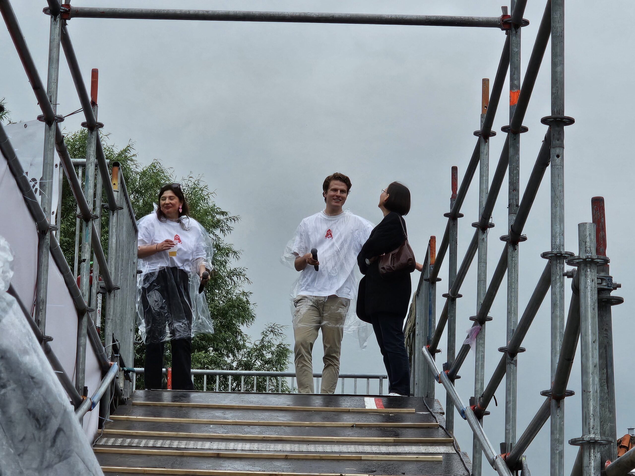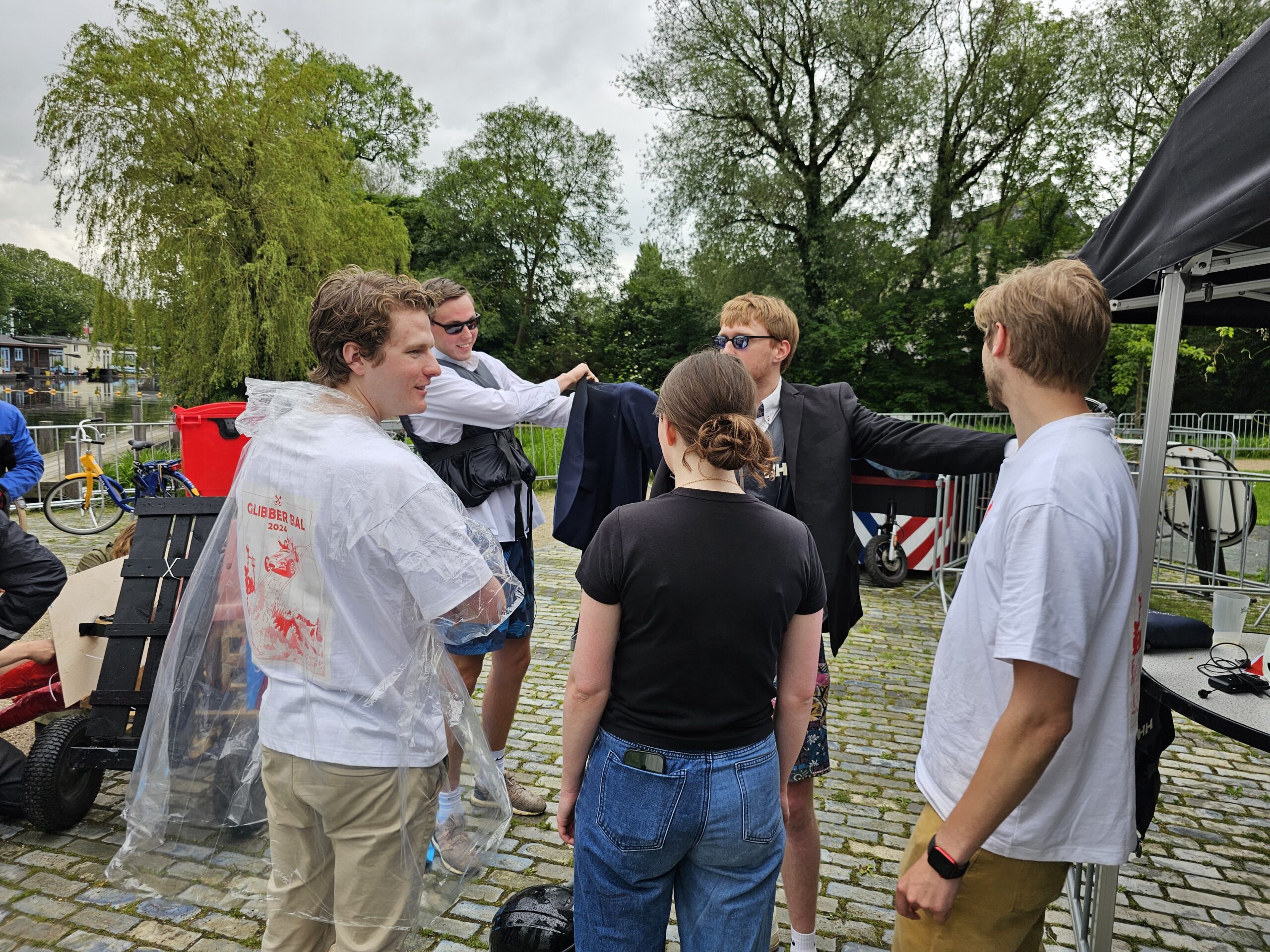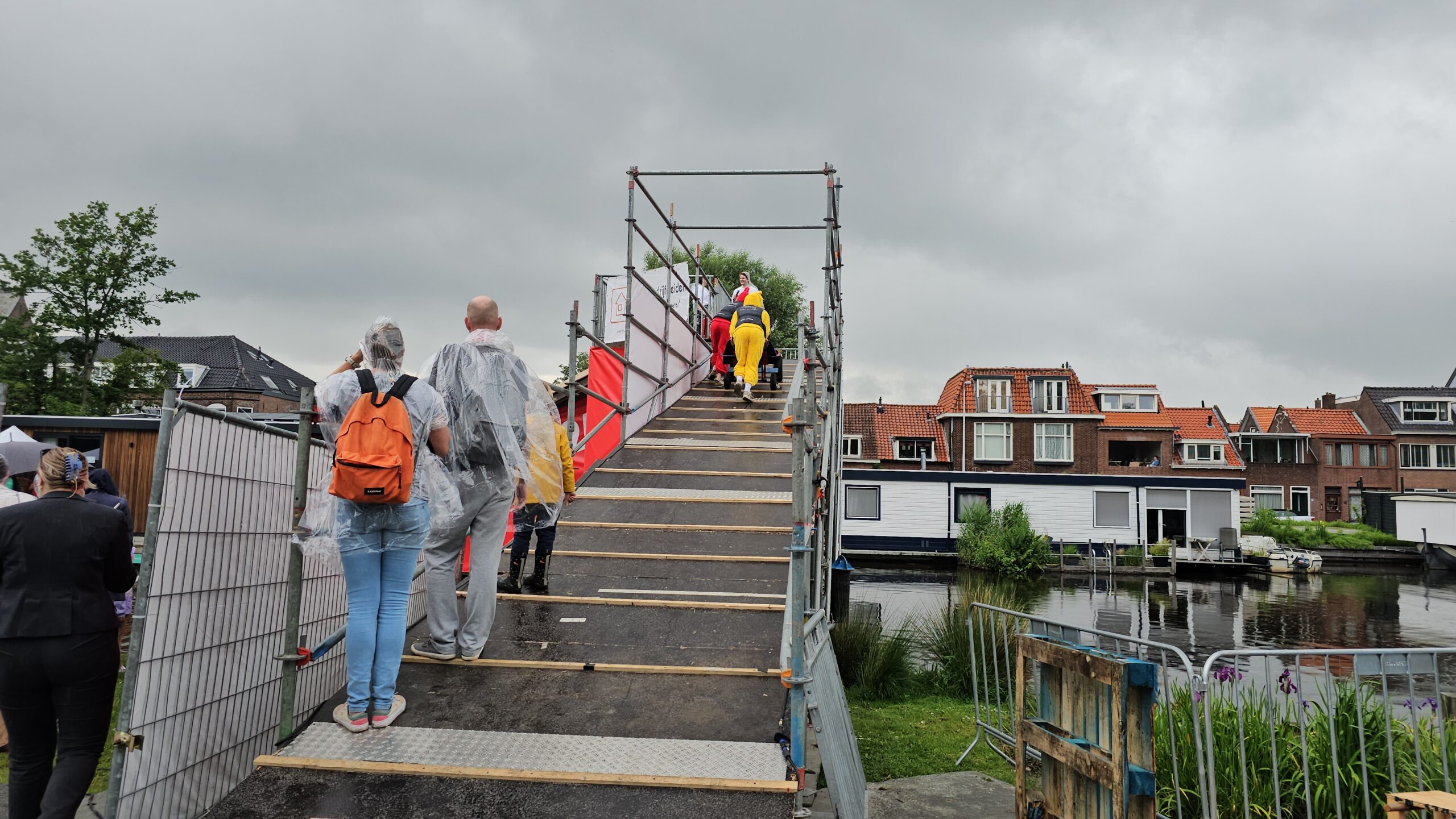 Even verderop maakt ook de Leidse wethouder Fleur Spijker zich klaar. Zij verricht samen met de voorzitters van LVVS Augustinus en de Plaatselijke Kamer van Verenigingen de opening. Met z’n drieën gaan ze als eerste naar beneden om het Glibberbal af te trappen. “Het is een heel bijzonder evenement. Het is in 2014 en 2015 al eerder gehouden, echt een evenement voor heel Leiden”, zegt Spijker. “Het is voor het hele gezin, er doen ook heel veel verenigingen mee. Wij zijn ontzettend trots dat dit georganiseerd wordt. Ik heb er zeker een nat pak voor over. Maar het is wel een beetje spannend”, geeft ze eerlijk toe.