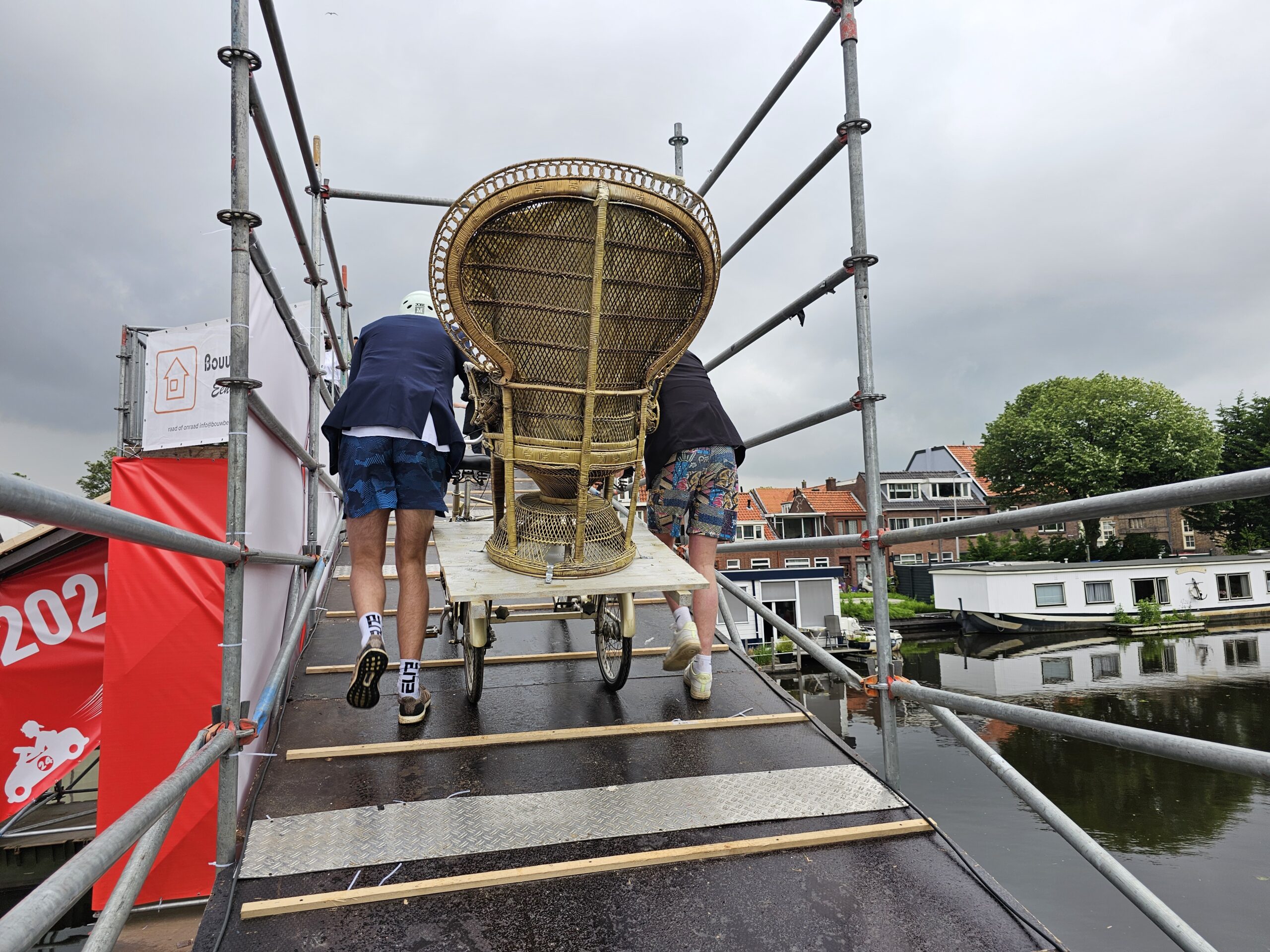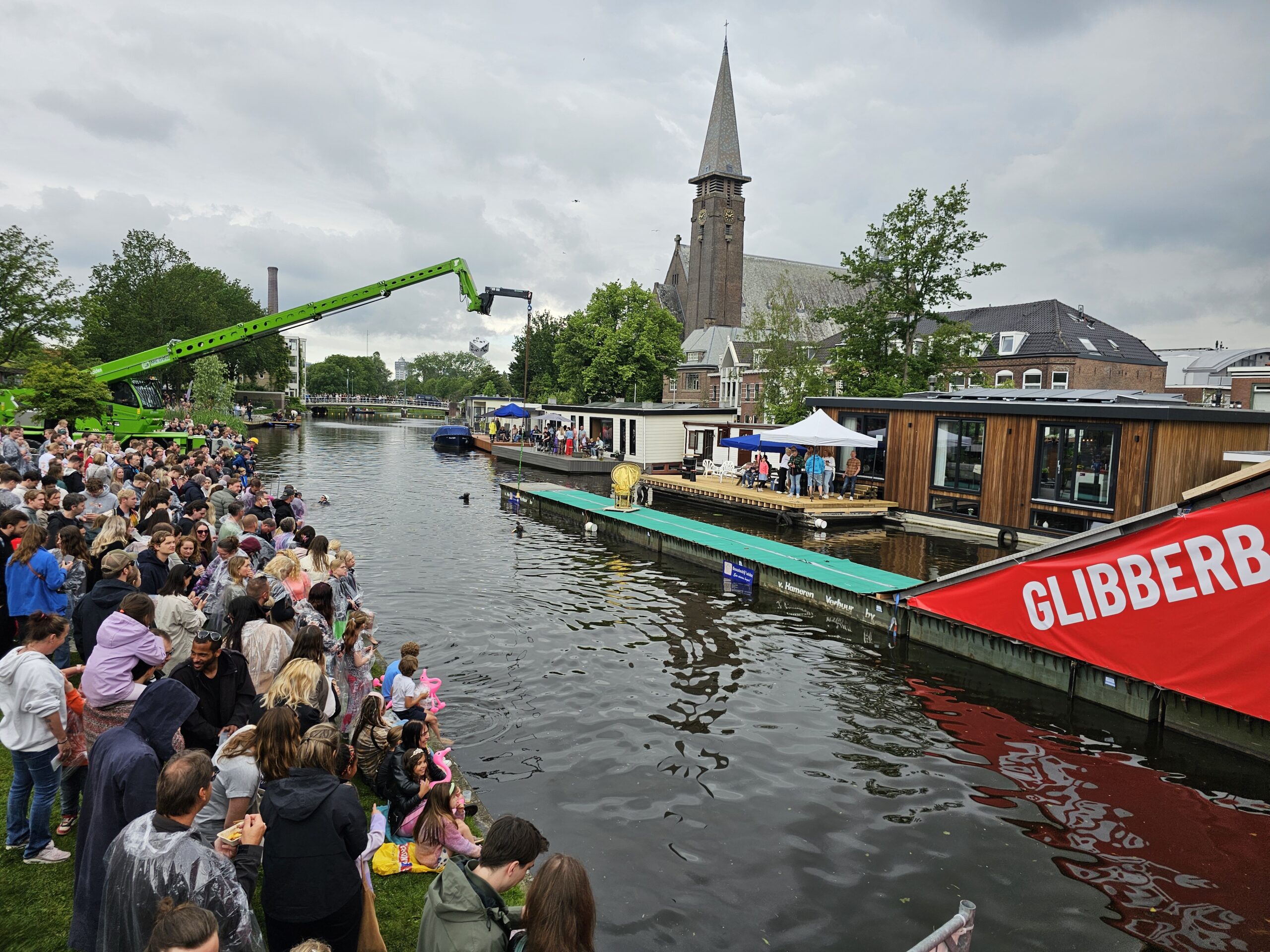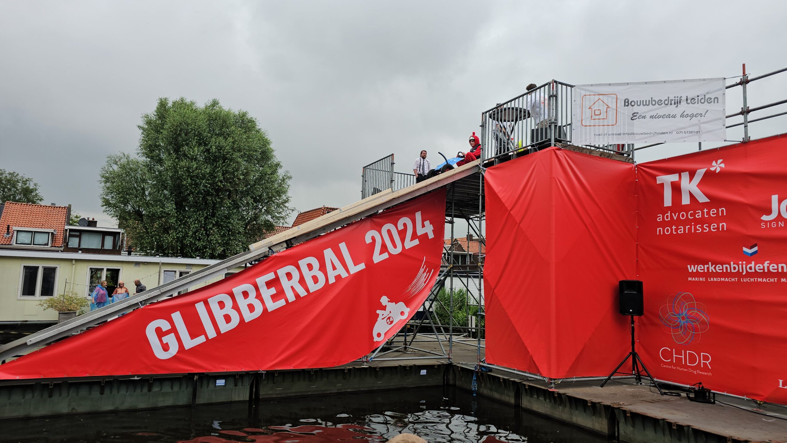 Je bouwt een wagen en zoekt een paar vrienden die net als jij niet bang zijn om een nat pak te halen tijdens de rit van de hoge, schuin aflopende schans op het water in het Leidse Blekerspark. Wie het snelst de bel luidt, is de winnaar. Het zijn de ingrediënten van het Glibberbal, dat zaterdag na negen jaar afwezigheid weer werd georganiseerd.