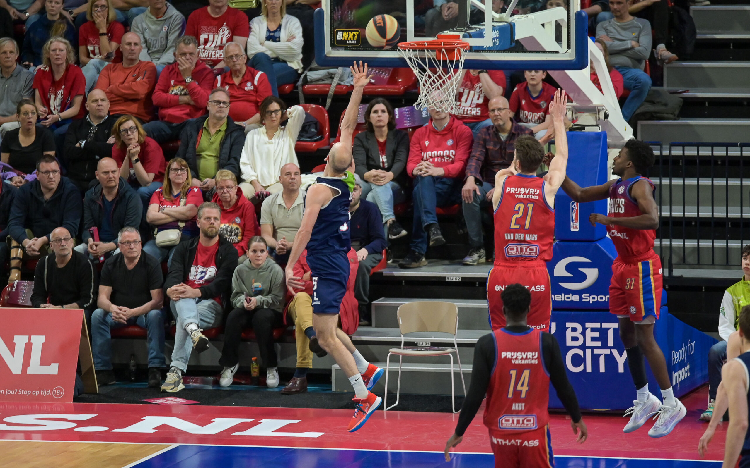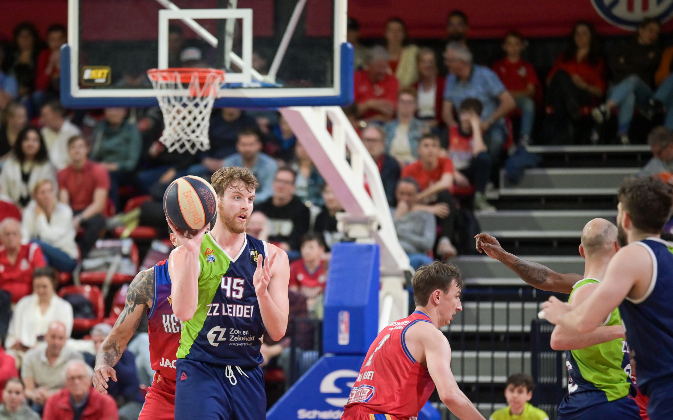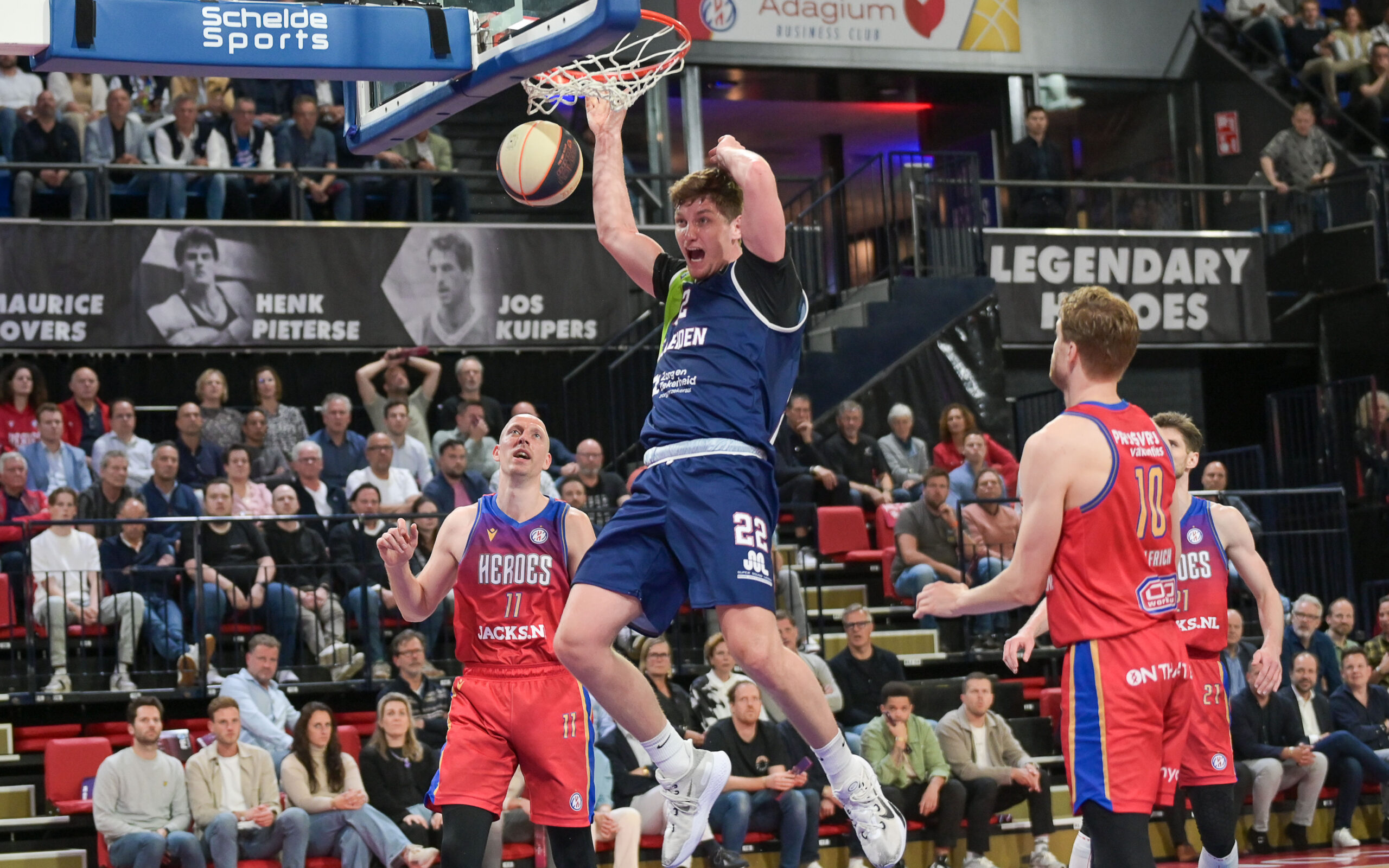 Maar wie de landstitel wint, mag vervolgens met de Belgische kampioen gaan uitvechten wie kampioen wordt van de gezamenlijke BNXT League. Dat biedt Leiden nog de gelegenheid om twee titels binnen te halen. En die kans zit er in na de eerste gewonnen wedstrijd in deze best of five reeks. En wat eerder in de reguliere competitie niet altijd lukte, wist Leiden gisteren wel voor elkaar te krijgen. Ze versloegen de Heroes in hun thuishonk. ZZ Leiden werd daarmee de eerste Nederlandse ploeg die dit seizoen wist te winnen in De Maaspoort.