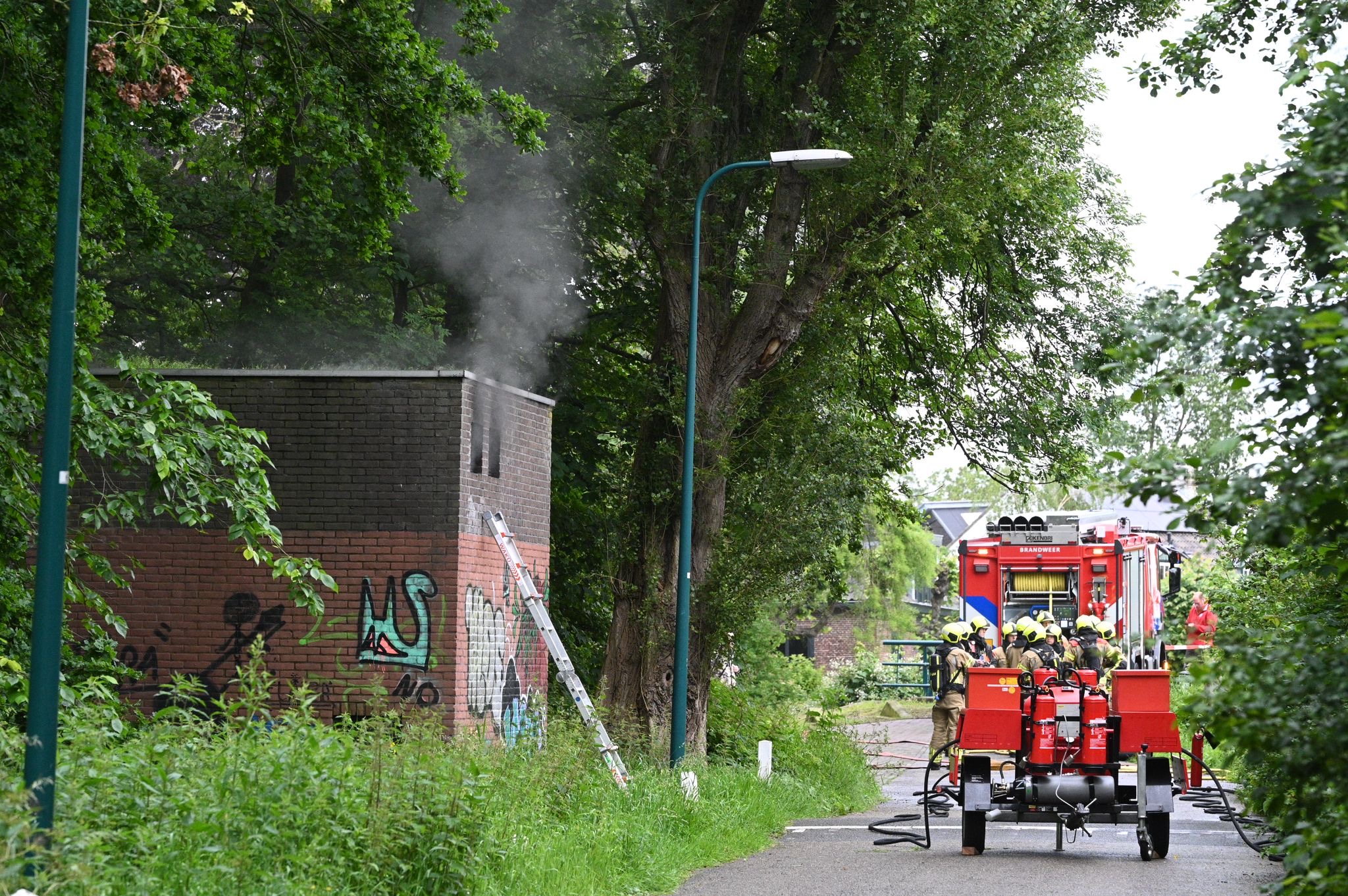 In een elektriciteitshuisje aan de Haarlemmertrekvaart in Oegstgeest heeft vrijdagochtend brand gewoed. Omwonenden belden de brandweer toen ze zwarte rook uit het huisje zagen komen. Om veilig te kunnen blussen moest de stroom in het gebied worden afgesloten.