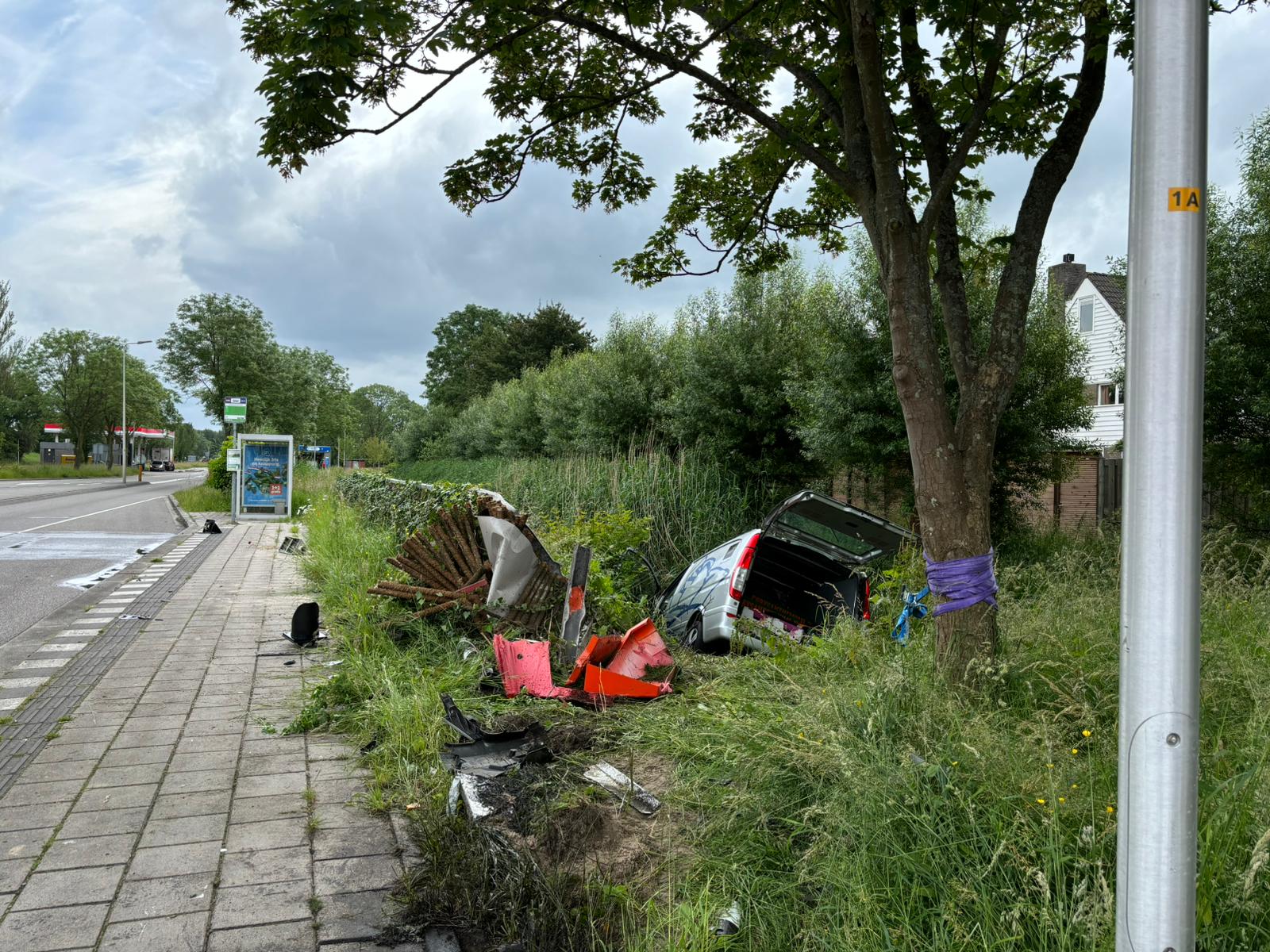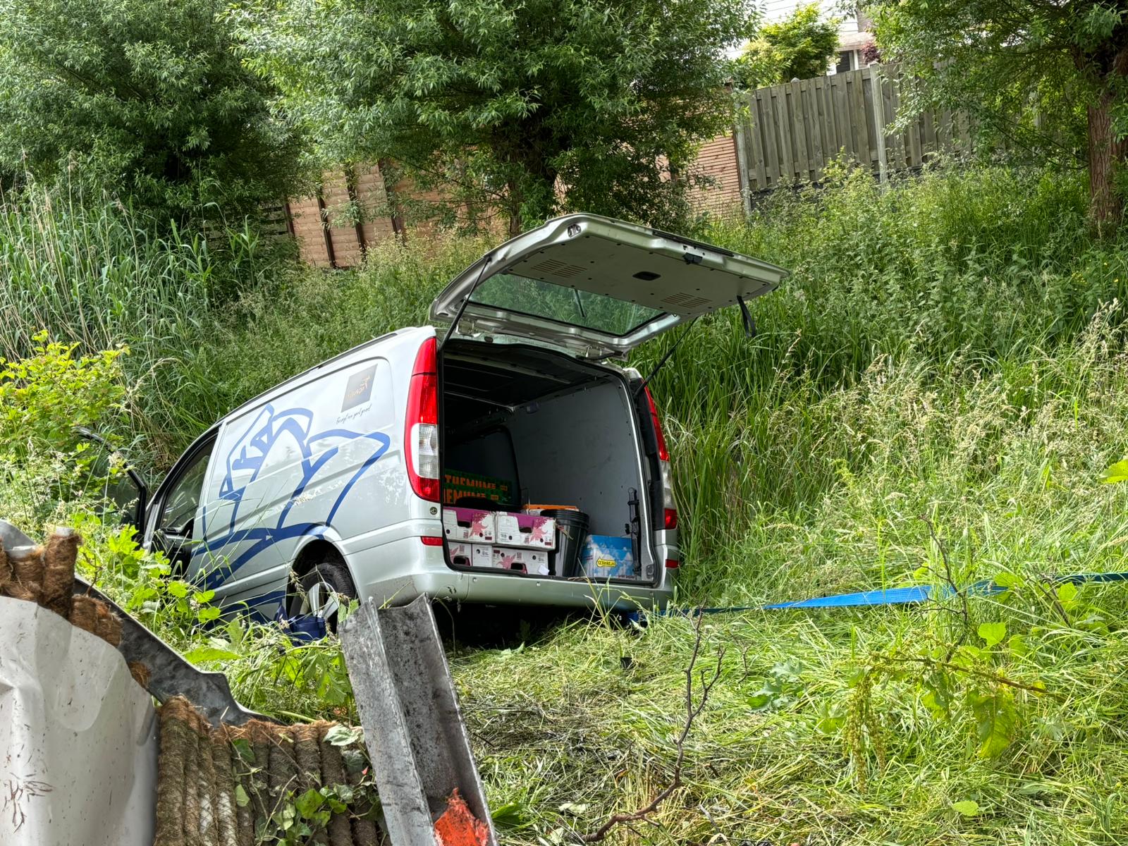 Een bestelbusje is maandagochtend in de sloot beland op de Persant Snoepweg in Leiderdorp. De bestuurder van het busje werd mogelijk onwel en reed een verkeerslicht uit de grond. Vervolgens reed hij via het voetpad tegen een hek en kwam daarna in de sloot terecht. De bestuurder is met spoed overgebracht naar het ziekenhuis.
