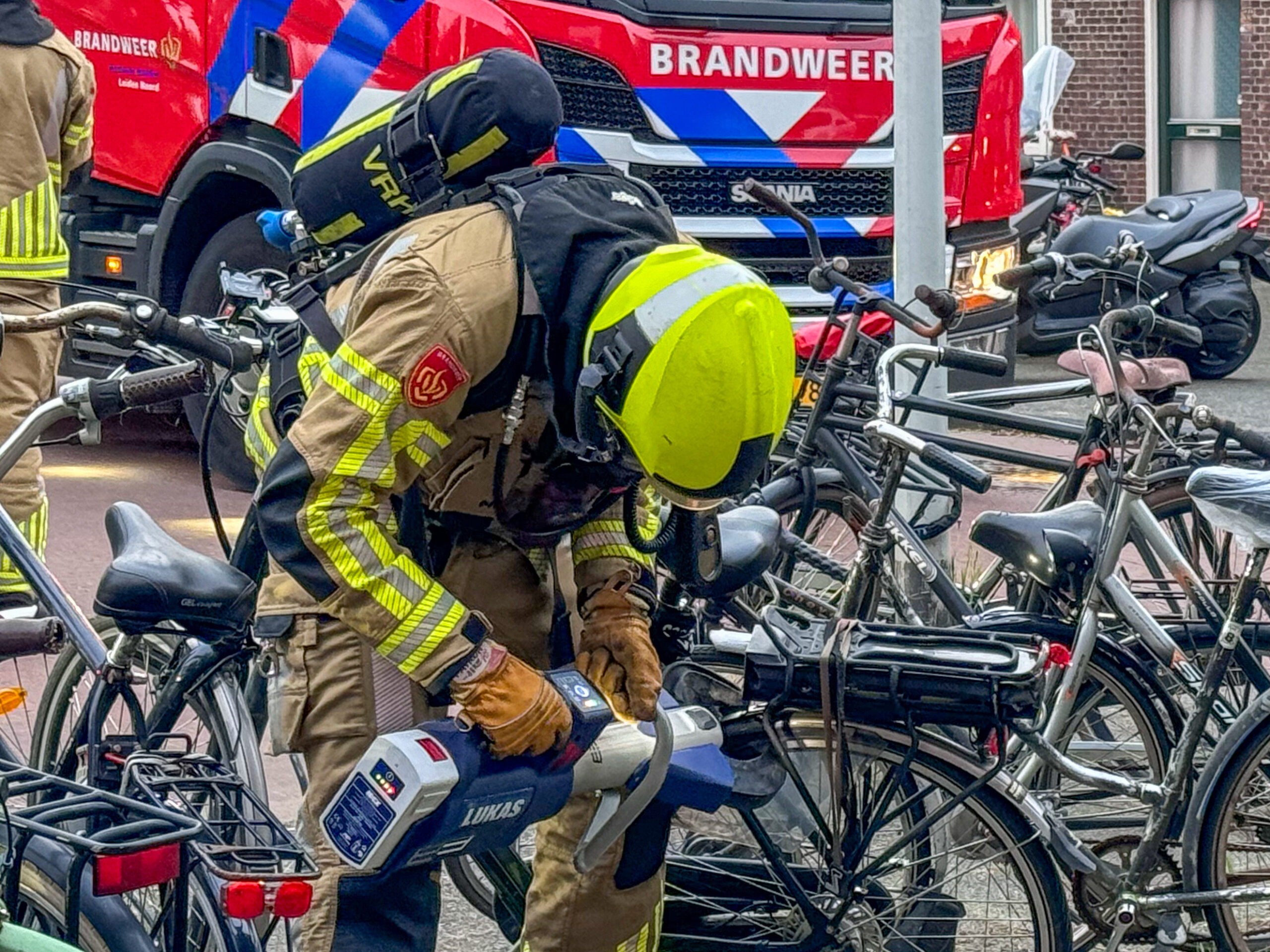 Een fietsaccu kwam maandagavond tot ontbranding op de hoek van de Formosastraat en de Driftstraat in Leiden. De fiets stond gestald in een fietsenrek toen de accu plots begon te roken.